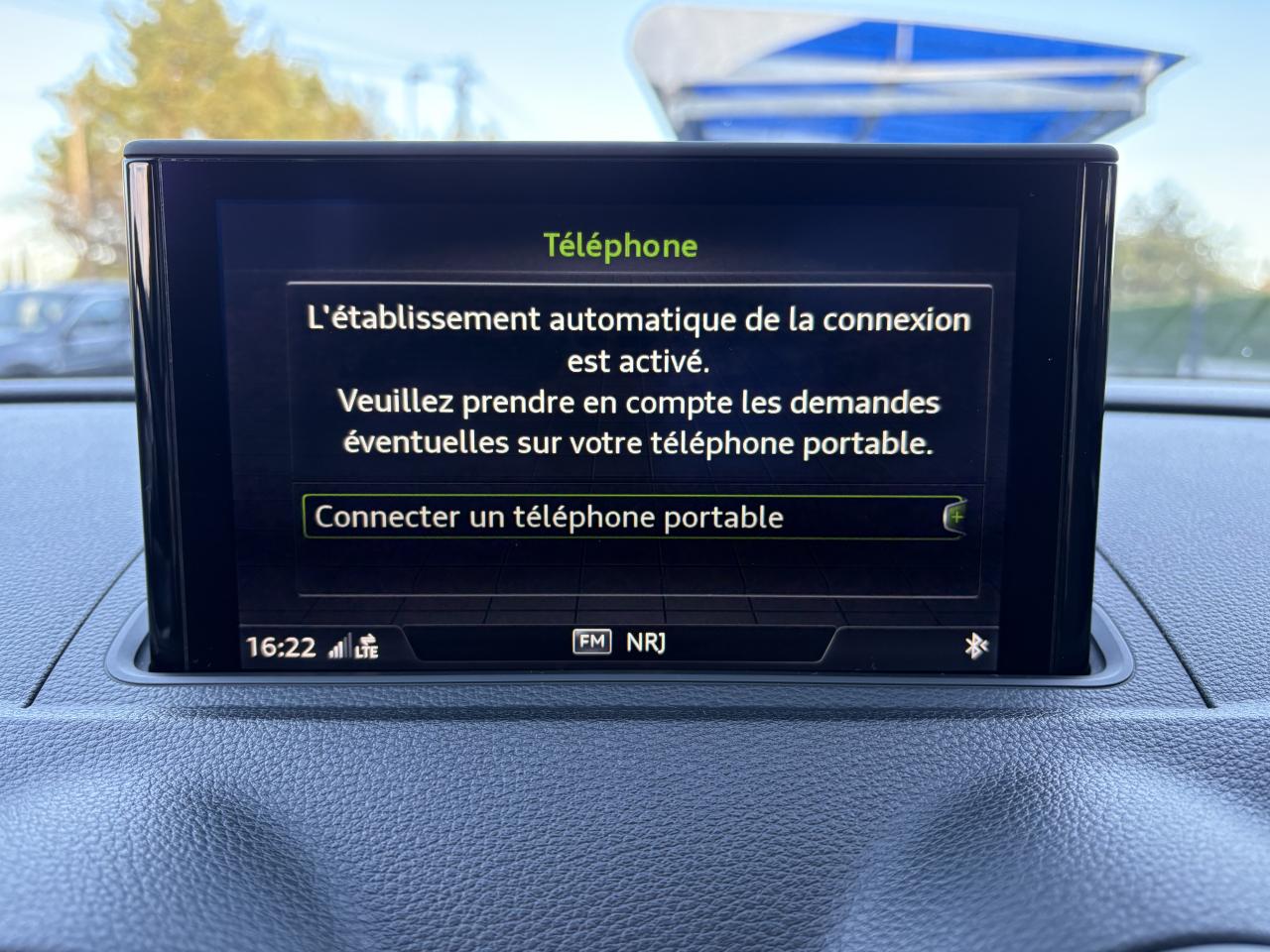 Applications décoratives Argent micrométallique"ATTENTION" - Equipements en cours de saisieABS + EBV + ESPAccoudoir central AVAirbags frontaux côté conducteur et passager avec airbag de genoux et désactivation de l'airbag passagerAirbags latéraux (airbag thorax et bassin à l'AV)Applications décoratives Argent micrométalliqueAppuis-tête AV et AR intégrauxASR (antipatinage) pour une motricité et une rigidité transversale optimale. Réduit le patinage des roues motrices.Assistant de freinage d'urgenceAudi Connect avec une carte SIM de données intégrée (valable pour 36 mois)Audi Connect avec une carte SIM de données intégrée (valable pour 36 mois)Audi Drive SelectAudi Parking System : Radars AR d'aide au stationnement AR avec signal acoustiqueBuses de lave-glace degivrantesChâssis normalCiel de pavillon en tissu Gris rocheClimatisation automatique bi-zoneClimatisation automatique Confort bi-zoneContrôle électronique de stabilisation (ESC): comprend les fonctions ABS, EBV, ASR et EDSContrôle de pression des pneumatiquesCric et outillage de bordDétecteur de pluie et de luminositéDétection de barres de toitDirection assistée servotronicEcrous de roues antivolFeux AR halogènesFilet de rangement au dos des sièges AVFixations ISOFIX pour sièges enfant pour le siège du passager AV + aux places extérieures AR avec sytème d'ancrage ""Top Tether""Frein de stationnement électromécaniqueFreins à disques sur les essieux AV et ARInterface BluetoothJantes en aluminium coulé style 10 branches avec pneus 205/55 R16Jantes en aluminium coulé style 10 branches avec pneus 205/55 R16Jauge de niveau de liquide lave-glaceMMI NavigationPack Rangement et CoffrePare-brise acoustique avec isolation acoustiquePeinture uniePoint de fixation multiples + Filet dans la garnitures latérales + araignée de coffrePrise 12 V dans la console centrale ARPrise 12V dans le coffreProjecteurs AV Xénon Plus avec feux de jour à LEDProjecteurs AV Xénon Plus avec feux de jour à LED et feux tout-tempsRécupération d'énergie, générée lors des phases de freinage ou de décélération et système Start/Stop permettant une économie de carburantRégulateur de vitesseRétroviseur intérieur jour/nuit automatiqueRétroviseur intérieur jour/nuit automatiqueRétroviseurs extérieurs avec clignotants à LED intégrésRétroviseurs extérieurs couleur carrosserieRétroviseurs extérieurs réglables, dégivrants et rabattables électriquement avec position automatique pour manoeuvre de stationnementRoue de secours compacteRoue de secours temporaire gonflableRoues avec écrous antivolSécurité enfants activable électriquementSellerie Tissu MarathonSellerie Tissu MarathonSystème d'airbags de têteSystème d'information du conducteur avec écran couleurSystème d'information du conducteur avec écran couleurTapis de sol AV/ARTriangle de présignalisation + trousse de secoursVide-poches au niveau des pieds côté passager à l'AVVide-poches sous la banquette AR (incluant 2 vestes de sécurité)Vitres latérales et AR athermiqueVolant multifonctions en cuirVolant réglable manuellement en hauteur et en profondeur