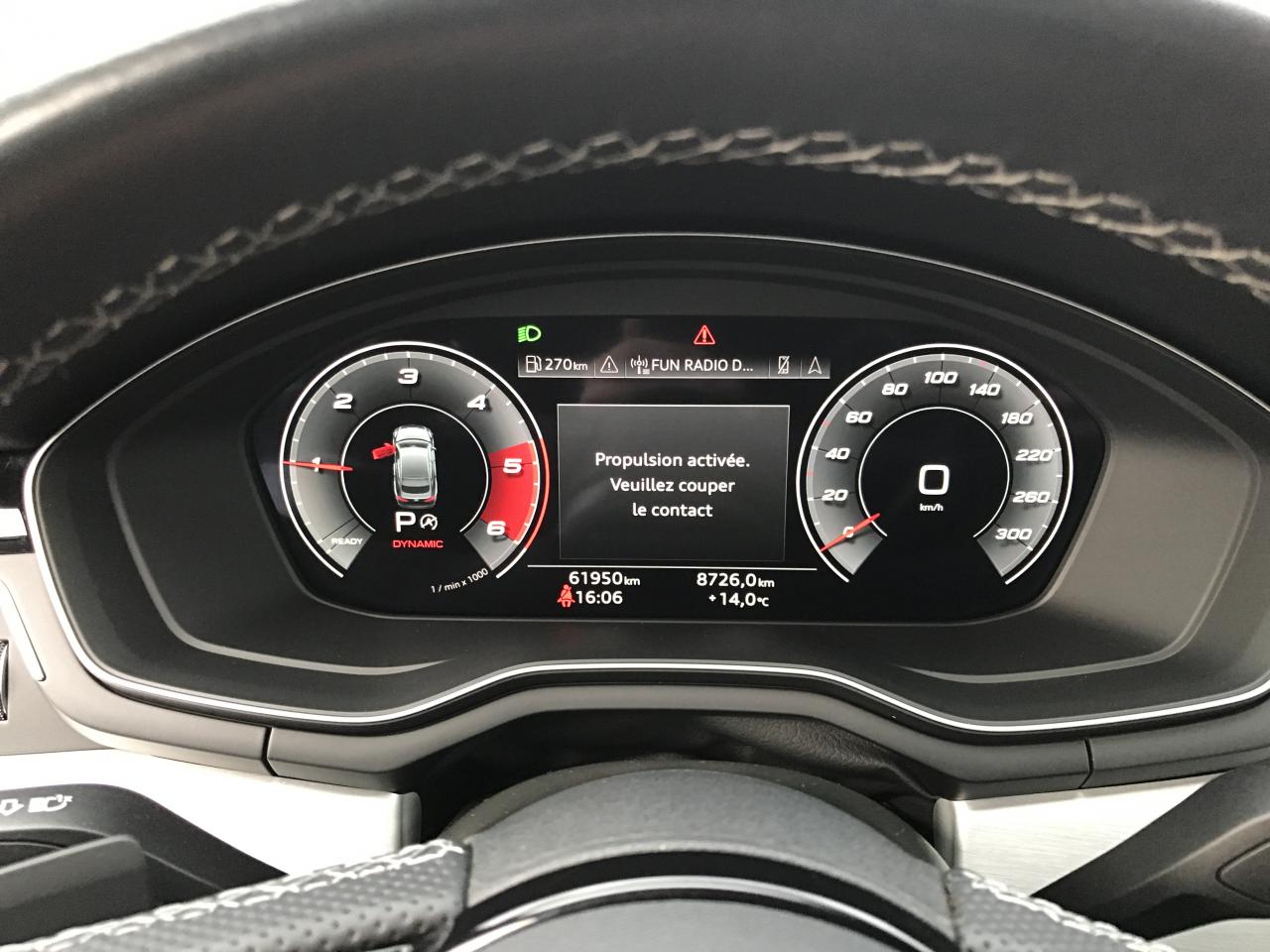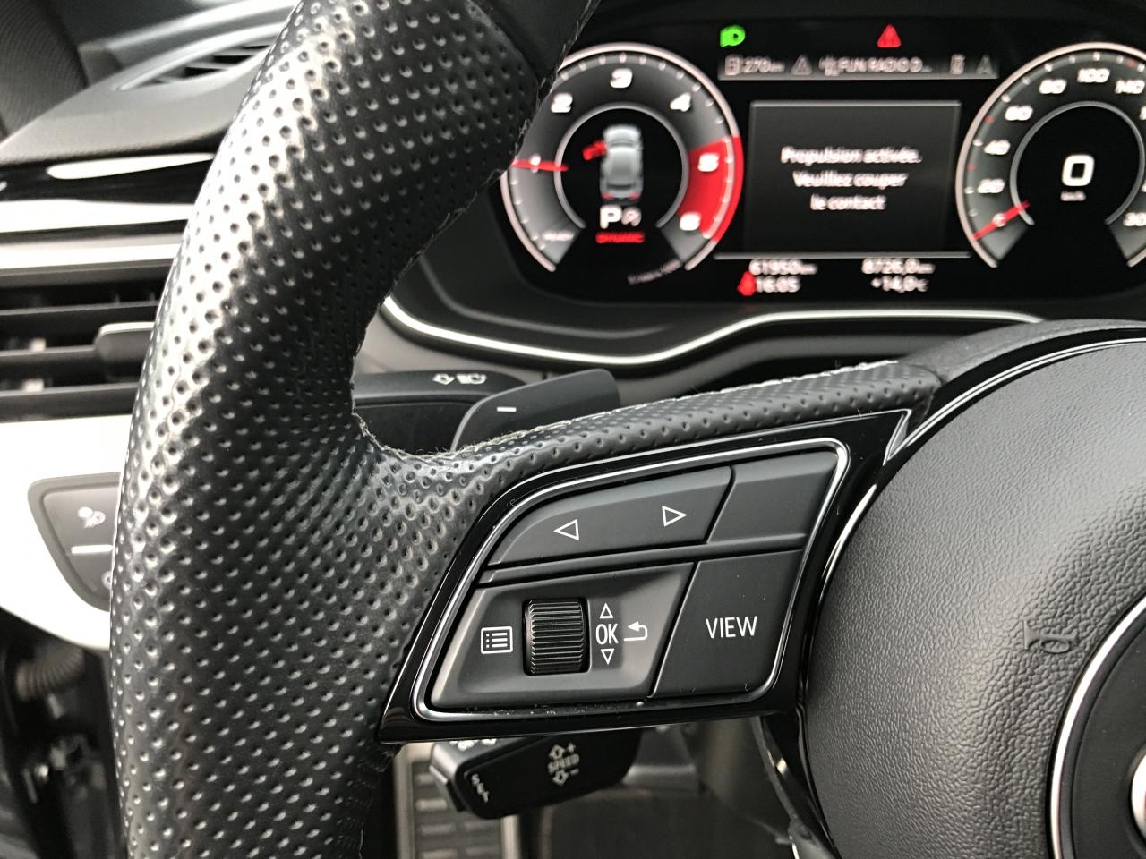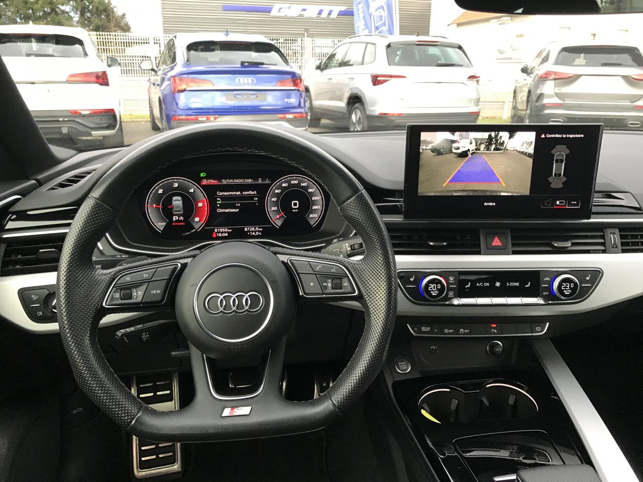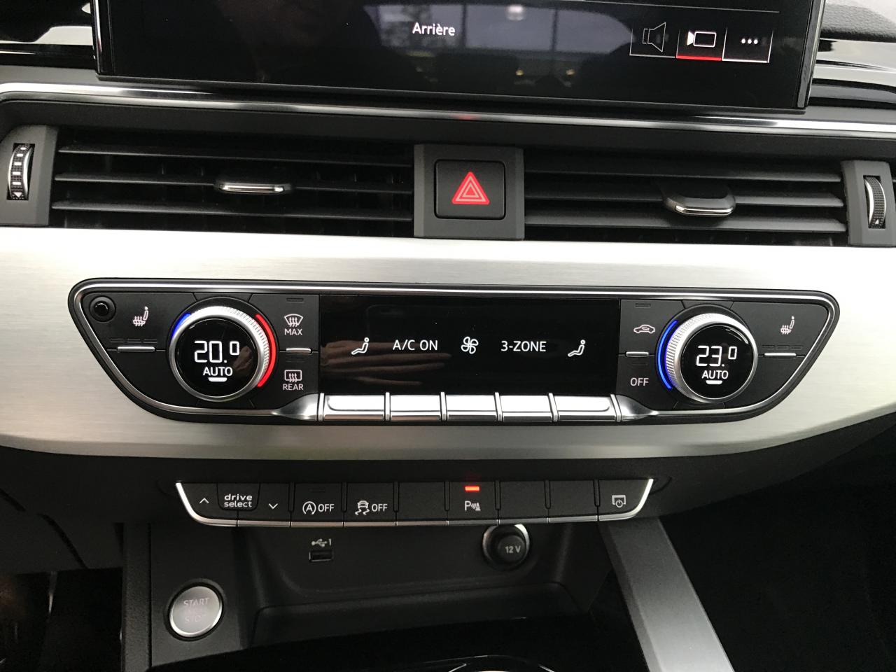 Technologie hybride léger - Mild-HybridAccoudoir central AV confort avec inclinaison réglable et coulissant en longueurAffichage du contrôle de la pression des pneusAirbags latéraux à l'AV et système d'airbags de têteAppel d'urgence et service Audi connect avec commande du véhiculeApplications décoratives en Aluminium brossé matAppui lombaire à 4 axes pour les sièges AV: réglages électrique, horizontal et verticalAppuie-têtes variables pour les sièges AV avec réglage manuel de la hauteur et de la distance de l'appuie-têteAudi Connect avec carte SIM intégrée (e-SIM) et licence d'utilisation pour 3 ansAudi Drive Select Permet de sélectionner différents modes de conduite: Efficiency, Confort, Dynamic, Individual. Les systèmes et équipements du véhicules s'adaptent suivant le mode sélectionnéAudi Hold AssistAudi Hold AssistAudi Parking System PlusAudi Parking System PlusAudi phone box lightAudi phone box lightAudi Pre Sense cityAudi smartphone interface (Apple CarPlay ou Google Android Auto)Audi smartphone interface (Apple CarPlay ou Google Android Auto)Audi Sound SystemAudi Virtual Cockpit PlusAugmentation de la capacité du réservoir à carburant à 54 litresBaguette enjoliveuse AR en argent aluminium matBande élastique à gauche et à droite dans le coffreBanquette AR 3 places avec appuie-tête en L réglables en hauteurBoîte à gants verrouillableCalandre spécifique S line laquée en noir titaneCaméra de reculCaméra de reculCaméra multifonctionCeintures de sécurité, automatiques à 3 points pour tous les sièges, contrôle de port de ceinture AVChâssis SportCiel de pavillon en tissu noirCoffre à ouverture et fermeture électriquesColonne de direction de sécuritéCommande de désactivation de l'airbag passager AVCommande intérieure des portières AV/ARDiffuseur avec finition symétrique des sorties d’échappement de style en chrome à gauche et à droiteDiffuseur spécifique "S line" en Noir Titane matDirection assistée électromécaniqueDispositif anti-erreur de carburantEclairage d'ambiance de la console centrale AVEclairage d'ambiance des portières AV/AREclairage dans la zone des pieds AVEclairage dans la zone des pieds AV/AREclairage des seuils de portières AVEclairage du porte-boissons AVEclairage intérieur Module de pavillon avant et arrière incluant spots de lecture, commande capacitive à l’avant, éclairage d’ambiance de la console centrale, boîte à gants éclairée, éclairage passif des portières, &eacEclairage périphérique dans les poignées de portières extérieuresEcrous de roues antivolEmblème S-Line sur les ailes AVExtensions de bas de caisse couleur carrosserieExtentions de bas de caisse couleur carrosserieFilet de rangement au dos des sièges AVFixation pour sièges enfants ISOFIX et Top Tether pour les places AR extérieuresGrilles d’entrée d’air latérales en noir mat grainé avec insert en argent aluminium matIdentification du modèle selon le nouveau marquage de puissanceInterfaces de charge USB pour les passagers ARInterfaces de charge USB pour les passagers ARJantes en aluminium coulé 18" style 5 branches doubles 8.5Jx18", avec pneus 245/40 R18Keyless Go: démarrage et arrêt du moteur par touche moteur Start/Stop sur la console centraleLimitation de la vitesse maximale à 210 km/hMiroirs de courtoisie éclairésMoulures de seuil avec insert en aluminium AV, éclairées, avec inscription SNavigation MMI plus avec MMI touchPédalier et repose-pieds en acier inoxydablePack Brillance ExtérieurPack Navigation MMI plus avec MMI touchPare-chocs spécifique S à l’AV et à l’ARPare-soleil côtés conducteur et passager AVPneus à roulage optimisé (faible résistance au roulement), 245/40 R 18 - Vmax = 210 km/hPorte-gobelets dans l'accoudoir central ARPréparation pour crochet d'attelageProjecteurs Matrix LED et feux AR à LED avec clignotants dynamiquesProtection antidémarrage électroniqueRéception radio numérique (DAB) ajoute à l'offre de radios analogiques la réception de stations numériques selon le standard DAB, incluant DAB+ et DMB AudioRégulateur/Limiteur de vitesseRéservoir AdBlue à capacité étendue (24 litres)Rétroviseur intérieur sans encadrement jour/nuit automatiqueRétroviseurs extérieurs avec feux clignotants à LED intégrés et dans la teinte du véhiculeRétroviseurs extérieurs réglables et escamotables électriquement, jour/nuit automatique, dégivrants des deux côtés et buses de lave-glaces dégivrantesSécurité enfantsSièges AV SportSurfaces d’accentuation façon verre en noir pour le tableau de bord, les caches des rebords de portière et l’insert de la console centraleSystème Start & StopTapis complémentaires AV/ARTire Mobility System Compresseur et produit de colmatage en cas de crevaisonVide-poches côté conducteurVitres athermiquesVolant Sport contour en cuir style 3 branches, aplati en bas, avec multifonction plus avec palettes de changement de vitesse et avec logo S line et poignées de volant en cuir perforé