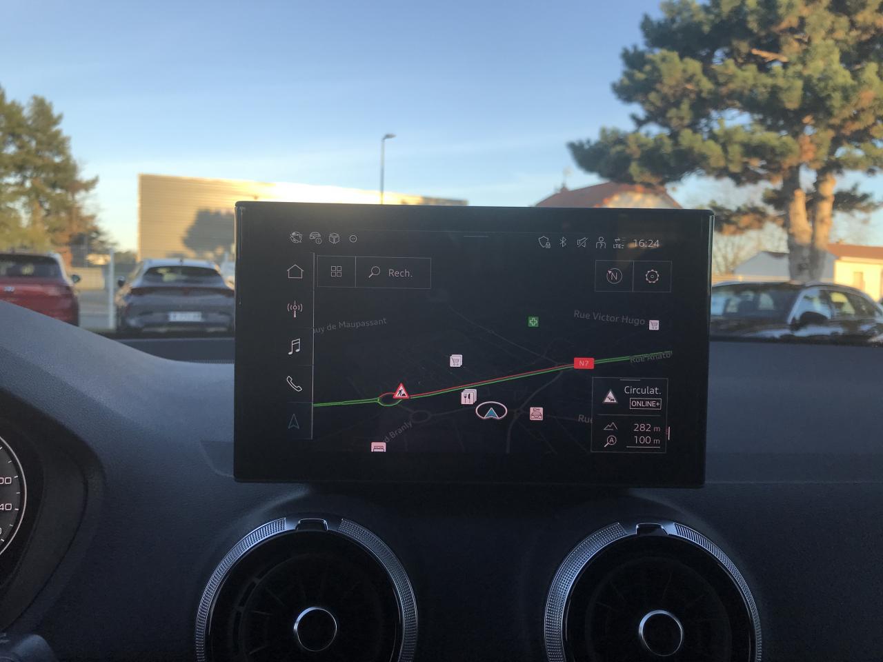 Direction progressiveAccoudoir central AVAffichage de perte de pression des pneusAirbags latéraux AV avec système d'airbags de têteApplications décoratives en Aluminium brossé matAppuis lombaires à 4 axes pour les sièges AVAssistant de feux de routeAudi connect navigation et divertissementAudi connect sécurité et assistance en ligneAudi Drive SelectAudi Hold AssistAudi Music InterfaceAudi Parking System PlusAudi Phone Box avec charge du téléphone par induction (standard Qi)Audi pre sense frontAudi pre sense frontAudi Smartphone InterfaceAudi Sound System avec 10 HPAudi Virtual CockpitAvertissement de sortie de voieBlade Argent MagnesiumBoîtiers de rétroviseurs extérieurs laqués dans la teinte carrosserieCâbles de recharge pour téléphone portable, compatibles iPhone et AndroidCaméra de reculCiel de pavillon en tissu Gris TitaneClé à fréquence radioClé Confort (Keyless entry)Climatisation automatique confort 2 zonesCoques de rétroviseurs extérieurs couleur carrosserieDésactivation de l’airbag passager AVDétecteur d’occupation de siègesDétecteur de pluie et de luminositéDirection progressiveDossier de banquette AR rabattable en deux parties 40 : 60 ou entièrementEclairage AREclairage au niveau des pieds à l'AVEclairage du coffreEclairage intérieur Module de pavillon à l’AV et à l’AR (à ampoules) incluant spots de lectureFeux AR à LEDFeux AR rouges, avec feux de recul blancs et feu de brouillard AR intégré à ampoules ; feux de plaque AR à LEDHabillage des panneaux de portes à l'AVInscription S line sur les ailes AVJantes en aluminium, style 5 branches en Y, 7J x 18" avec pneus 215/50 R18Lève-vitres électriques AV et ARLimiteur de vitesseMiroirs de courtoisie éclairésMMI Radio PlusMMI radio plus avec MMI touch Ecran tactile de 8,8", 2 interfaces USB de type A pour le chargement d’appareils externes, Interface Bluetooth (système mains libres et streaming audio), Commande vocale pour la téléphonie et les médias. Diversité de phases MMI radio plus avec MMI touch Ecran tactile de 8,8", 2 interfaces USB de type A pour le chargement d’appareils externes, Interface Bluetooth (système mains libres et streaming audio), Commande vocale pour la téléphonie et les médias. Diversité de phases Module de pavillon à l’AV incluant spots de lectureMoulures de seuil de portes éclairées avec insert en aluminium et inscription "S"Moulures de seuils de portes en aluminium éclairéesPack Aluminium Intérieur Éléments sur les diffuseurs d’air, les boutons de réglage des rétroviseurs, l’encadrement de la commande intérieure de verrouillage des portières, les lève-vitres, les touches de commande du frein de stationPack assistance stationnementPack assistance stationnement Audi Parking System Plus, Caméra de reculPack confortPack confort Appui lombaires à 4 axes pour les sièges AV. Rétroviseur intérieur jour/nuit automatique. Rétroviseurs extérieurs réglables et escamotables électriquement, jour/nuit automatique, dégivrants des deux côtés et busPack connectivityPack Eclairage d'ambiancePack Eclairage d'ambiance Module de pavillon à l'AV incluant spots de lecture, éclairage AR, miroirs de courtoisie éclairés, éclairage du coffre, éclairage au niveau des pieds à l'AVPack intérieur SportPack intérieur Sport Sellerie Sport à l'AV Pack éclairage d'ambiance Moulures de seuil de portes en aluminium et éclairées Pack aluminium intérieur Habillage des panneaux de portes à l'AVPare-brise avec bandeau pare-soleil grisPeinture contrastée en Gris ManhattanPeinture intégralePhares Matrix LED avec clignotants dynamiques à l'ARPréparation à la navigation avec MMI touchRéception radio numérique DABRégulateur de vitesse incluant limiteur de vitesseRétroviseur intérieur jour/nuit automatiqueRétroviseurs extérieurs réglables et escamotables électriquement, jour/nuit automatique, dégivrants des deux côtés et buses de lave-glaces dégivrantesSécurité enfants électrique sur les portières ARSécurité enfants électrique sur les portières ARSellerie tissu IndexSet de réparation pour pneusSiège conducteur et passager AV réglable en hauteurSièges AV SportSystème d'information du conducteur avec écran couleurSystème de lecture des panneaux de signalisation par caméraTapis AV et ARTapis de sol à l'AV et à l'ARTrousse de secours et triangle de présignalisationVitres athermiquesVolant en cuir style 3 branches avec multifonctions