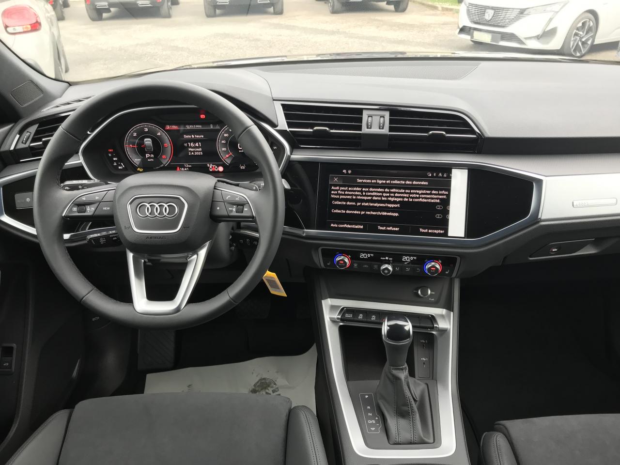 Accoudoir central AV avec vide-poches relevable et inclinaison réglable et coulissant en longueurAccoudoir central coulissant en longueur, avec inclinaison réglable et vide-poches relevableAccoudoirs des contre-portes en matériaux synthétiques monopur 550Affichage de contrôle de pression des pneusAppel d'urgence Audi connectApplications décoratives en aluminium mat Brossé FoncéAppui lombaire à 4 axes pour les sièges AV: réglages électrique, horizontal et verticalAssise et dossier de banquette AR, divisée, rabattable 40/20/40Audi connectAudi Connect Navigation et Divertissement PlusAudi Drive SelectAudi Hold AssistAudi Parking System PlusAudi Pre Sense Basic Déploie automatiquement, lorsque nécessaire, des mesures préventives pour votre sécurité et celle de vos passagers, parmi lesquelles: Resserrement des ceintures de sécurité à l'avant afin de limiter tout déplacAudi Pre Sense frontAudi Smartphone InterfaceAudi virtual cockpitAvertisseur de franchissement de ligne et avertisseur de changement de voieBanquette AR avec porte-gobelet dans l'accoudoir de la place centraleBarrette du diffuseur noir titane matBecquet AV en peinture intégrale (couleur de la carrosserie) avec lame Gris Platine matBoîtiers de rétroviseurs extérieurs couleur carrosserieCalandre en noir titane, lames intérieures grisesCaméra de reculChâssis SportCiel de pavillon en tissu NoirClé à fréquence radioClimatisation automatique confort 2 zonesCombiné d'instruments entièrement numérique 10,25"Détecteur de pluie et de luminositéDétection de signalisation routière par caméraDiffuseur en Noir Titane matDirection assistée électromécanique, asservie à la vitesseDirection progressiveEclairage intérieurEmblème S line sur les ailes extérieuresEncadrement des prises d'air latérales AV en Gris Platine matEnjoliveurs de passage de roue et extensions de bas de caisse en peinture contrastéeFixation pour sièges enfants ISOFIX et Top Tether pour les sièges extérieurs ARGrille de diffuseur Noir mat grenueHayon de coffre à ouverture et fermeture électriqueInterface BluetoothInterface USB pour chargement d'appareils externesLamelles en Argent Aluminium matMMI Navigation plus avec MMI touchMoulures de seuil avec insert en aluminium à l'AV, éclairées, avec inscription SOutillage de bordPack Aluminium IntérieurPack Brillance ExtérieurPack ExtérieurPack S line extérieurPare-brise en verre acoustique avec verre feuilleté athermiquePare-chocs S line dans une peinture contrastée (Gris Manhattan)Phares à LED avec clignotants dynamiques ARProtection du seuil de chargement en acier inoxydableRéception radio numérique (DAB)Régulateur de vitesseRétroviseur intérieur jour/nuit automatique sans encadrementRétroviseurs extérieurs couleur carrosserieRétroviseurs extérieurs réglables électriquement et dégivrantsSièges AV réglables manuellement Hauteur et positionnement en longueur, Inclinaison de dossier, Hauteur des appuie-tête et des ceinturesSièges AV sportSuspensions SportVolant 3 branches multifonction en cuir