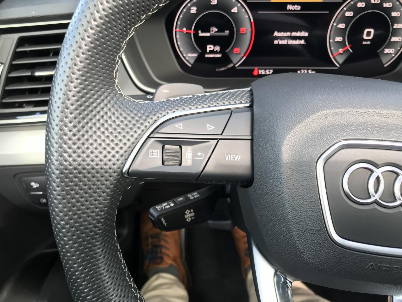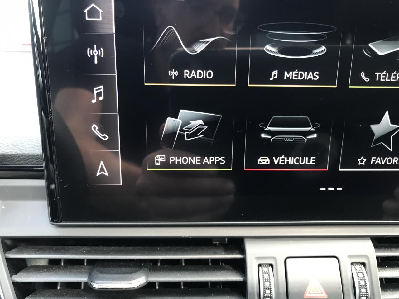 2 interfaces de charge USB pour les passagers AR sur la console centrale ARAccoudoir central AVAffichage de perte de pression des pneusAirbags latéraux AV avec système d'airbags de têteAppel d'urgence avec service Audi connect + commande de véhiculeApplications décoratives en Aluminium brossé matAppui lombaire à 4 axes pour les sièges AV: réglage électrique, horizontal et verticalAudi connect avec carte SIM intégrée (e-SIM) et licence d'utilisation pour 3 ansAudi drive selectAudi Hold AssistAudi Parking System Plus: Système accoustique et visuel d'aide au stationnement AV et ARAudi Phone Box lightAudi Pre-Sense CityAudi Smartphone Interface (Apple CarPlay / Google Android Auto)Audi Sound System : amplificateurs 6 canaux, 10 HP dont 1 central dans le tableau de bord et 1 subwoofer, puissance totale 180 WAudi Virtual Cockpit PlusAugmentation de la capacité du réservoir à carburant à 70 litresBanquette AR plusBoîte à gants verrouillableCâbles de recharge pour téléphone portable, compatibles iPhone et AndroidCeintures de sécurité automatiques à 3 points pour tous les sièges, contrôle de port de ceinture AVChâssis Sport SCiel de pavillon en Tissu NoirClé Confort (Keyless entry) + Keyless goClimatisation automatique Confort 3 zonesColonne de direction de sécuritéCommande de désactivation de l'airbag passager AVContrôle électronique de stabilisation ESCDétecteur de pluie et de luminositéDirection assistée électromécaniqueDispositif anti-erreur de carburantEcrous de roues antivolFilet dans le logement gauche du coffreFilet de coffreFilet de rangement au dos des sièges AVFinition extérieure S lineFixation pour sièges enfants ISOFIX et Top Tether pour les sièges extérieurs ARHayon de coffre assisté électriquement pour l'ouverture et la fermetureIdentification du modèle selon le nouveau marquage de puissanceInterface BluetoothLave-phares haute pressionMoulures de seuil avec insert en aluminium AV, éclairées, avec inscription SNavigation MMI plus avec MMI touchOutillage de bord (sans cric)Pédalier et repose-pied en acier inoxydablePack EclairagePack Extérieur BrillancePack Rangement et Coffre - Filet de rangement au dos des sièges AV - Porte-gobelets dans l’accoudoir central à l AR - Vide-poches côté conducteur - Boîte à gants verrouillablePare-soleil côtés conducteur et passager AVPhares Matrix LED avec clignotants dynamiques à l'ARPorte-boissons dans l’accoudoir central ARPréparation pour crochet d'attelageProtection antidémarrage électroniqueProtection antidémarrage électroniqueQuattro transmission intégrale permanenteRéception radio numérique (DAB) ajoute à l'offre de radios analogiques la réception des stations numériques avec une meilleurs qualité sonore, incluant DAB+ et DMB AudioRécupération d'énergie, permet de réaliser des économies de carburant en récupérant l'énergie de décélération et de freinage ; convertit l’énergie cinétique en énergie électrique Régulateur de vitesse incluant limiteur de vitesseRéservoir d'AdBlue à 24 litresRétroviseur intérieur jour/nuit automatique sans encadrement (Frameless)Rétroviseurs extérieurs avec clignotants à LED intégrés couleur carrosserieRétroviseurs extérieurs réglables et escamotables électriquement, jour/nuit automatique, dégivrants des deux côtés et buses de lave-glaces dégivrantesRecommandation de reposS tronic : boîte séquentielle 7 vitesses à double embrayage avec commande électrohydrauliqueSécurité enfants manuelleSangle de serrage à gauche et à droite dans le coffreSellerie mixte Cuir/Tissu Séquence S lineSièges AV réglables manuellement en hauteur et en profondeur ; réglage manuel des appuie-tête en hauteurSièges Sport à l'AVSuppression des rampes de pavillonSurfaces d'accentuation façon verre en NoirSurfaces d'accentuation façon verre en NoirSystème Start/StopTapis complémentaires AV/ARTapis de coffre à bagagesTechnologie Mild HybridTire Mobility SystemTrousse de secours et triangle de présignalisationVide-poches côté conducteurVide-poches dans les contre-portes AV/ARVitrage acoustique pour les vitres de portières AVVitres AR surteintées (Vitrage Privacy)Vitres athermiquesVolant Sport contour en Cuir style 3 branches aplati en bas avec multifonction plus avec palettes de changement de vitesses