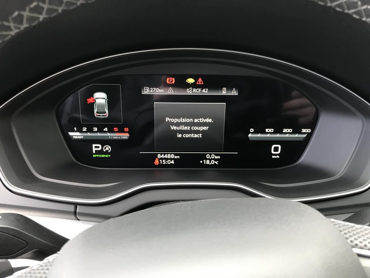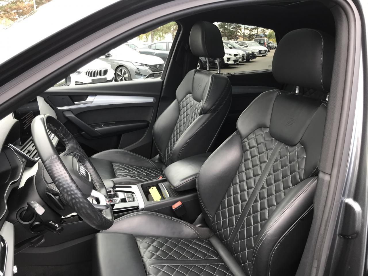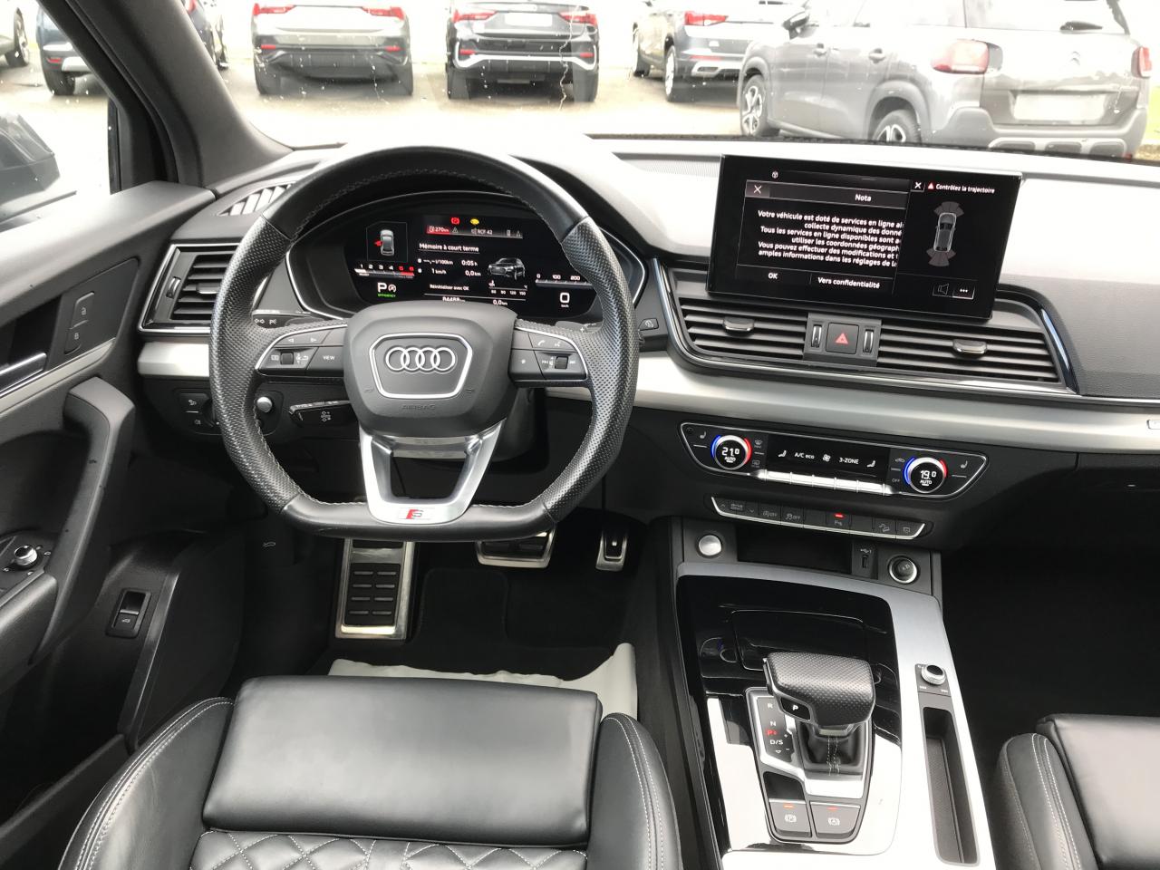 Technologie Mild HybridAccoudoir central AVAffichage de perte de pression des pneusAirbags latéraux AV avec système d'airbags de têteAppel d'urgence avec service Audi connect + commande de véhiculeApplications décoratives en Aluminium brossé matAudi connect avec carte SIM intégrée (e-SIM) et licence d'utilisation pour 3 ansAudi drive selectAudi Hold AssistAudi Parking System Plus: Système accoustique et visuel d'aide au stationnement AV et ARAudi Pre-Sense CityAudi Smartphone Interface (Apple CarPlay / Google Android Auto)Audi Sound System : amplificateurs 6 canaux, 10 HP dont 1 central dans le tableau de bord et 1 subwoofer, puissance totale 180 WAudi Virtual Cockpit PlusAugmentation de la capacité du réservoir à carburant à 70 litresBaguette le long du pavillon et sur les appuis de vitre en aluminium anodiséBanquette AR plusBoîte à gants verrouillableCaméra multifonctionCeintures de sécurité automatiques à 3 points pour tous les sièges, contrôle de port de ceinture AVCiel de pavillon en Tissu NoirClé Confort (Keyless entry) + Keyless goClimatisation automatique Confort 3 zonesColonne de direction de sécuritéCommande de désactivation de l'airbag passager AVDirection assistée électromécaniqueDispositif anti-erreur de carburantFilet dans le logement gauche du coffreFilet de coffreFilet de rangement au dos des sièges AVFinition extérieure S lineFixation pour sièges enfants ISOFIX et Top Tether pour les sièges extérieurs ARHayon de coffre assisté électriquement pour l'ouverture et la fermetureIdentification du modèle selon le nouveau marquage de puissanceInterface BluetoothLave-phares haute pressionMoulures de seuil avec insert en aluminium AV, éclairées, avec inscription SNavigation MMI plus avec MMI touchOutillage de bord (sans cric)Pédalier et repose-pied en acier inoxydablePare-soleil côtés conducteur et passager AVPorte-boissons dans l’accoudoir central ARPréparation pour crochet d'attelageProtection antidémarrage électroniqueRéception radio numérique (DAB) ajoute à l'offre de radios analogiques la réception des stations numériques avec une meilleurs qualité sonore, incluant DAB+ et DMB AudioRégulateur de vitesse incluant limiteur de vitesseRéservoir d'AdBlue à 24 litresRétroviseur intérieur jour/nuit automatique sans encadrement (Frameless)Rétroviseurs extérieurs avec clignotants à LED intégrés couleur carrosserieRétroviseurs extérieurs réglables et escamotables électriquement, jour/nuit automatique, dégivrants des deux côtés et buses de lave-glaces dégivrantesRevêtement noir brillant sur les montants de pavillon centraux et les triangles de portières ARSécurité enfants manuelleSangle de serrage à droite dans le coffreSangle de serrage à gauche et à droite dans le coffreSièges AV réglables manuellement en hauteur et en profondeur ; réglage manuel des appuie-tête en hauteurSièges Sport à l'AVSuppression des rampes de pavillonSurfaces d'accentuation façon verre en NoirSystème Start/StopTapis complémentaires AV/ARTapis de coffre à bagagesTire Mobility SystemTrousse de secours et triangle de présignalisationVide-poches côté conducteurVitres AR surteintées (Vitrage Privacy)Vitres athermiquesVolant Sport contour en Cuir style 3 branches aplati en bas avec multifonction plus avec palettes de changement de vitesses