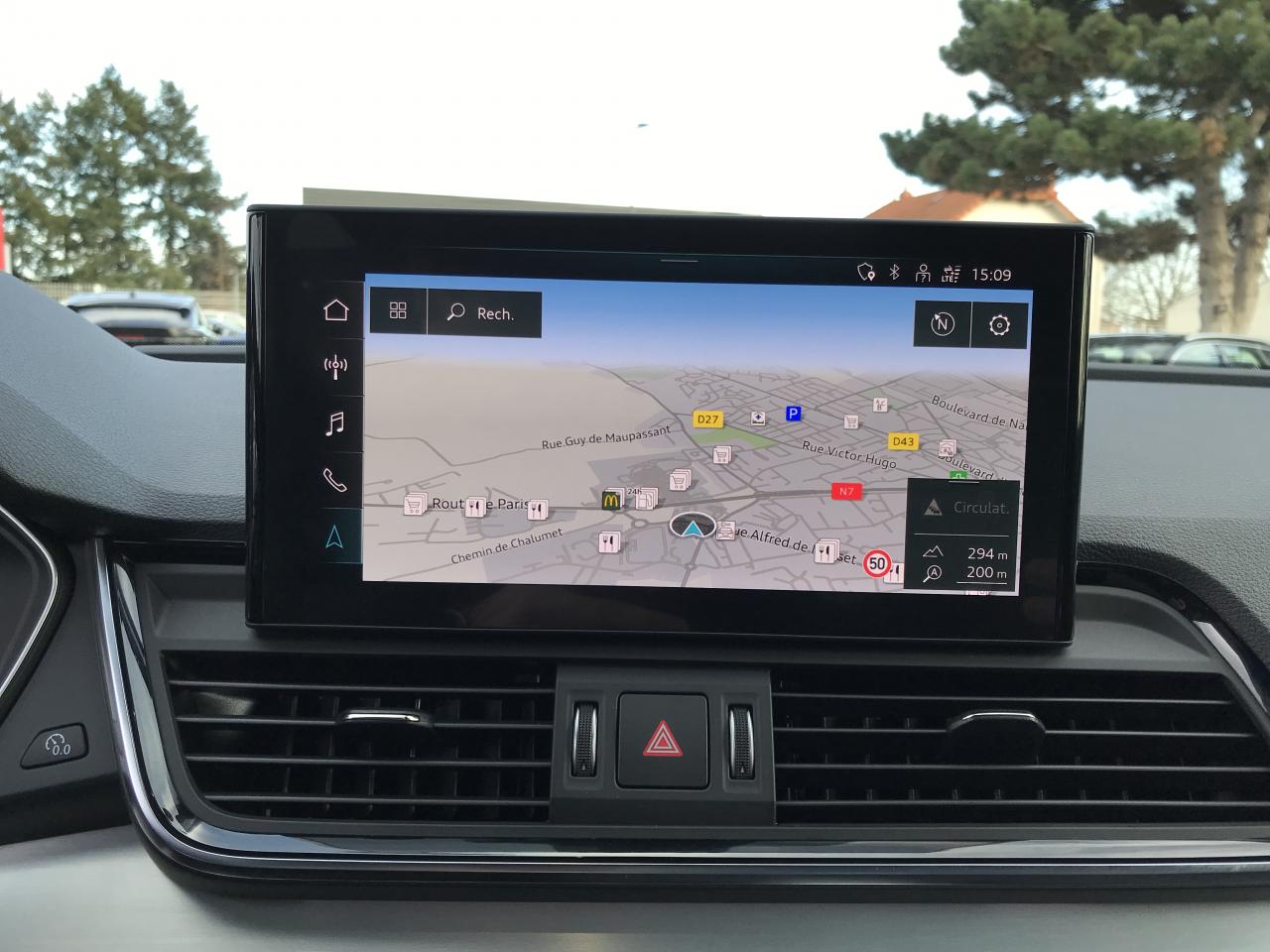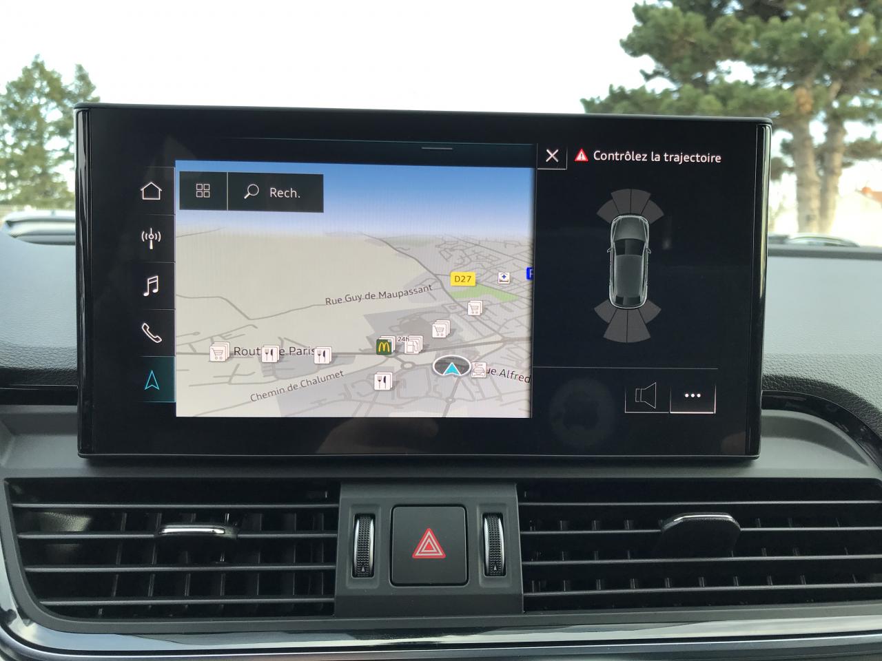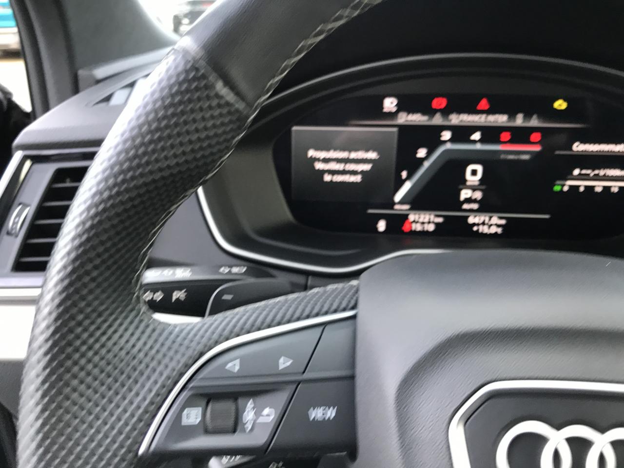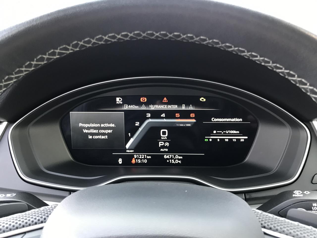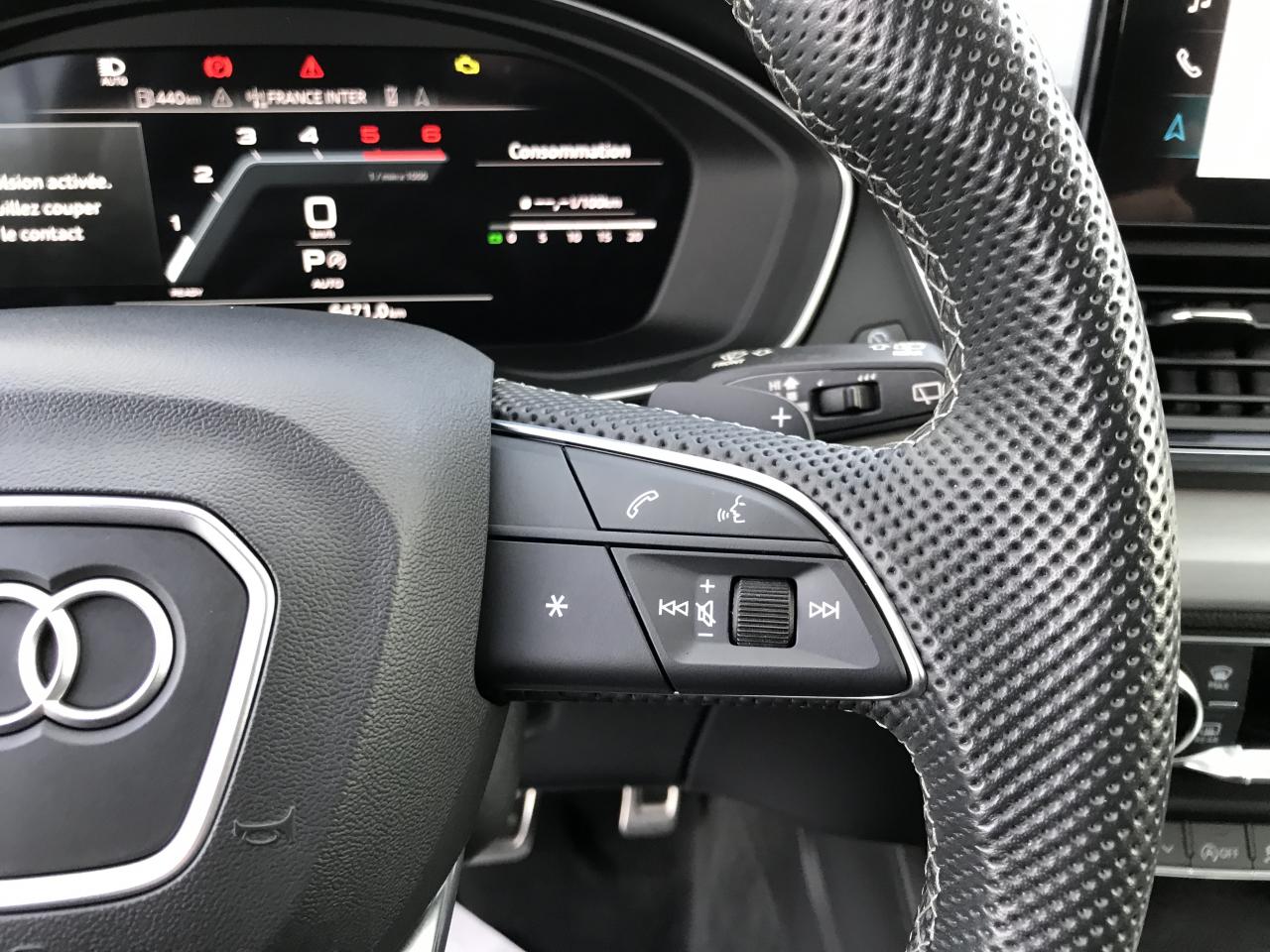 Technologie Mild HybridAccoudoir central AVAffichage de perte de pression des pneusAirbags latéraux AV avec système d'airbags de têteAppel d'urgence avec service Audi connect + commande de véhiculeApplications décoratives en Aluminium brossé matAudi connect avec carte SIM intégrée (e-SIM) et licence d'utilisation pour 3 ansAudi drive selectAudi Hold AssistAudi Parking System Plus: Système accoustique et visuel d'aide au stationnement AV et ARAudi Pre-Sense CityAudi Smartphone Interface (Apple CarPlay / Google Android Auto)Audi Sound System : amplificateurs 6 canaux, 10 HP dont 1 central dans le tableau de bord et 1 subwoofer, puissance totale 180 WAudi Virtual Cockpit PlusAugmentation de la capacité du réservoir à carburant à 70 litresBanquette AR plusBoîte à gants verrouillableCaméra multifonctionCeintures de sécurité automatiques à 3 points pour tous les sièges, contrôle de port de ceinture AVCiel de pavillon en Tissu NoirClé Confort (Keyless entry) + Keyless goClimatisation automatique Confort 3 zonesColonne de direction de sécuritéCommande de désactivation de l'airbag passager AVDirection assistée électromécaniqueDispositif anti-erreur de carburantFilet dans le logement gauche du coffreFilet de coffreFilet de rangement au dos des sièges AVFinition extérieure S lineFixation pour sièges enfants ISOFIX et Top Tether pour les sièges extérieurs ARHayon de coffre assisté électriquement pour l'ouverture et la fermetureIdentification du modèle selon le nouveau marquage de puissanceInterface BluetoothLave-phares haute pressionMoulures de seuil avec insert en aluminium AV, éclairées, avec inscription SNavigation MMI plus avec MMI touchOutillage de bord (sans cric)Pédalier et repose-pied en acier inoxydablePare-soleil côtés conducteur et passager AVPorte-boissons dans l’accoudoir central ARPréparation pour crochet d'attelageProtection antidémarrage électroniqueRéception radio numérique (DAB) ajoute à l'offre de radios analogiques la réception des stations numériques avec une meilleurs qualité sonore, incluant DAB+ et DMB AudioRégulateur de vitesse incluant limiteur de vitesseRéservoir d'AdBlue à 24 litresRétroviseur intérieur jour/nuit automatique sans encadrement (Frameless)Rétroviseurs extérieurs avec clignotants à LED intégrés couleur carrosserieRétroviseurs extérieurs réglables et escamotables électriquement, jour/nuit automatique, dégivrants des deux côtés et buses de lave-glaces dégivrantesSécurité enfants manuelleSangle de serrage à droite dans le coffreSangle de serrage à gauche et à droite dans le coffreSièges AV réglables manuellement en hauteur et en profondeur ; réglage manuel des appuie-tête en hauteurSièges Sport à l'AVSuppression des rampes de pavillonSurfaces d'accentuation façon verre en NoirSystème Start/StopTapis complémentaires AV/ARTapis de coffre à bagagesTire Mobility SystemTrousse de secours et triangle de présignalisationVide-poches côté conducteurVitres AR surteintées (Vitrage Privacy)Vitres athermiquesVolant Sport contour en Cuir style 3 branches aplati en bas avec multifonction plus avec palettes de changement de vitesses