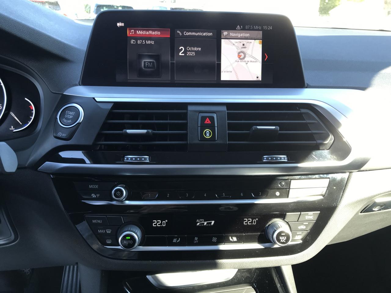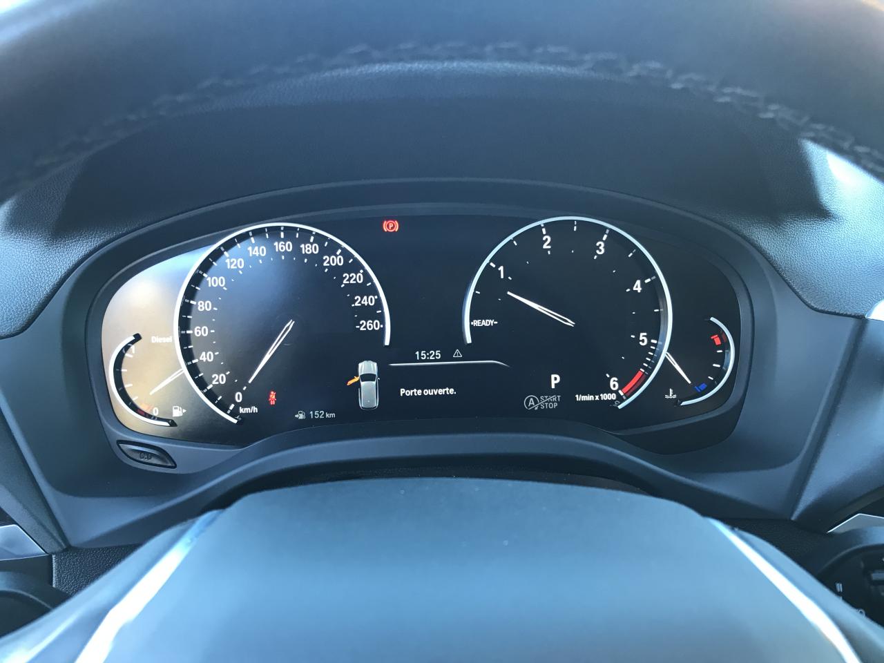 Capacité du réservoir augmentéeAirbag passager AV déconnectableAppel d'Urgence IntelligentBMW Live Cockpit Navigation PlusBoîte de vitesses automatique à 8 rapportsClimatisation automatique 3 zonesEquipements Finition Lounge / Business DesignFilet de séparation du coffreInserts décoratifs en Oxyde Silver Dark mat souligné de chrome perléJantes en alliage 18" style 618 à rayons en V, 7Jx18" / pneus 225/60 R18 (comprend Ecrous antivol de roues)Pack Connected PlusRétroviseur intérieur électrochromeRétroviseurs extérieurs électrochromes (côté conducteur) et rabattables électriquementRadars de stationnement AV/AR PDCRails de toit Aluminium Line satinéServices Après-vente connectés BMW Teleservices (durée de vie de la voiture)Services ConnectedDrive comprend la fonctionnalité BMW Apps (3 ans) et BMW Apps (durée de vie du véhicule):Tapis de sol en veloursTeinte de carrosserie métalliséeTriangle de présignalisation avec kit de premiers secours