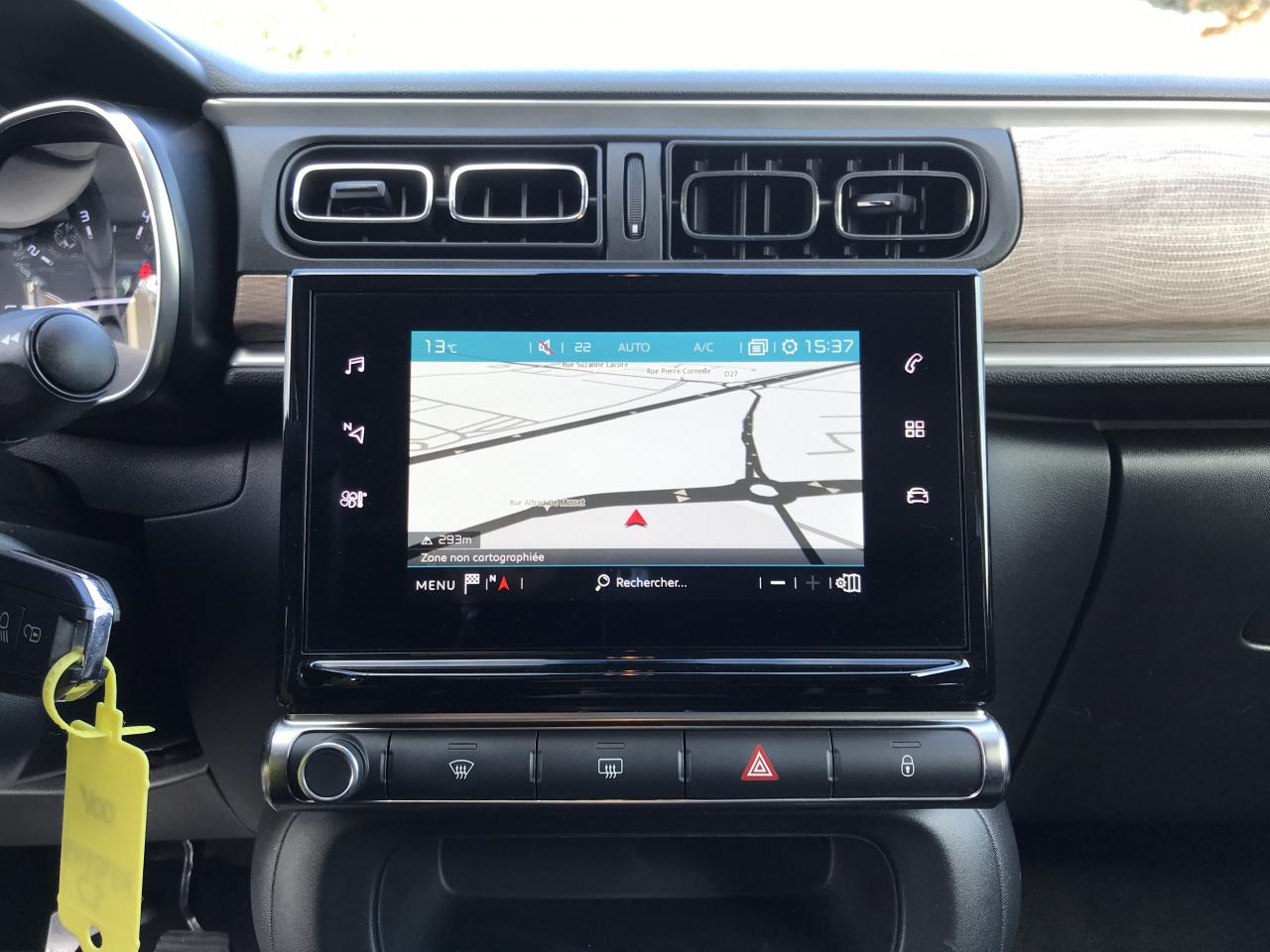 Garnissage mixte Tissu Brumeo/Tissu effet cuir Isabella Ambiance Techwood + Sièges Advanced ComfortAirbump Black avec gélule Blanc BanquiseAllumage automatique des feux de croisementDécors d’Airbump et de projecteurs antibrouillard colorésEclairage d'accueil et d'accompagnementEssuie-vitre AV automatique (capteur de pluie)Lève-vitres AR électriques et séquentielsMyCitroën Drive navigation sur tablette tactile 7'': comprend le système de navigation TomTom, la reconnaissance vocale et durant 3 ans les services MyCitroën Drive (inclut les services « Zones de danger », « Info Trafic », « Stations-service Rétroviseurs extérieurs rabattables électriquementVitres et lunette AR surteintées