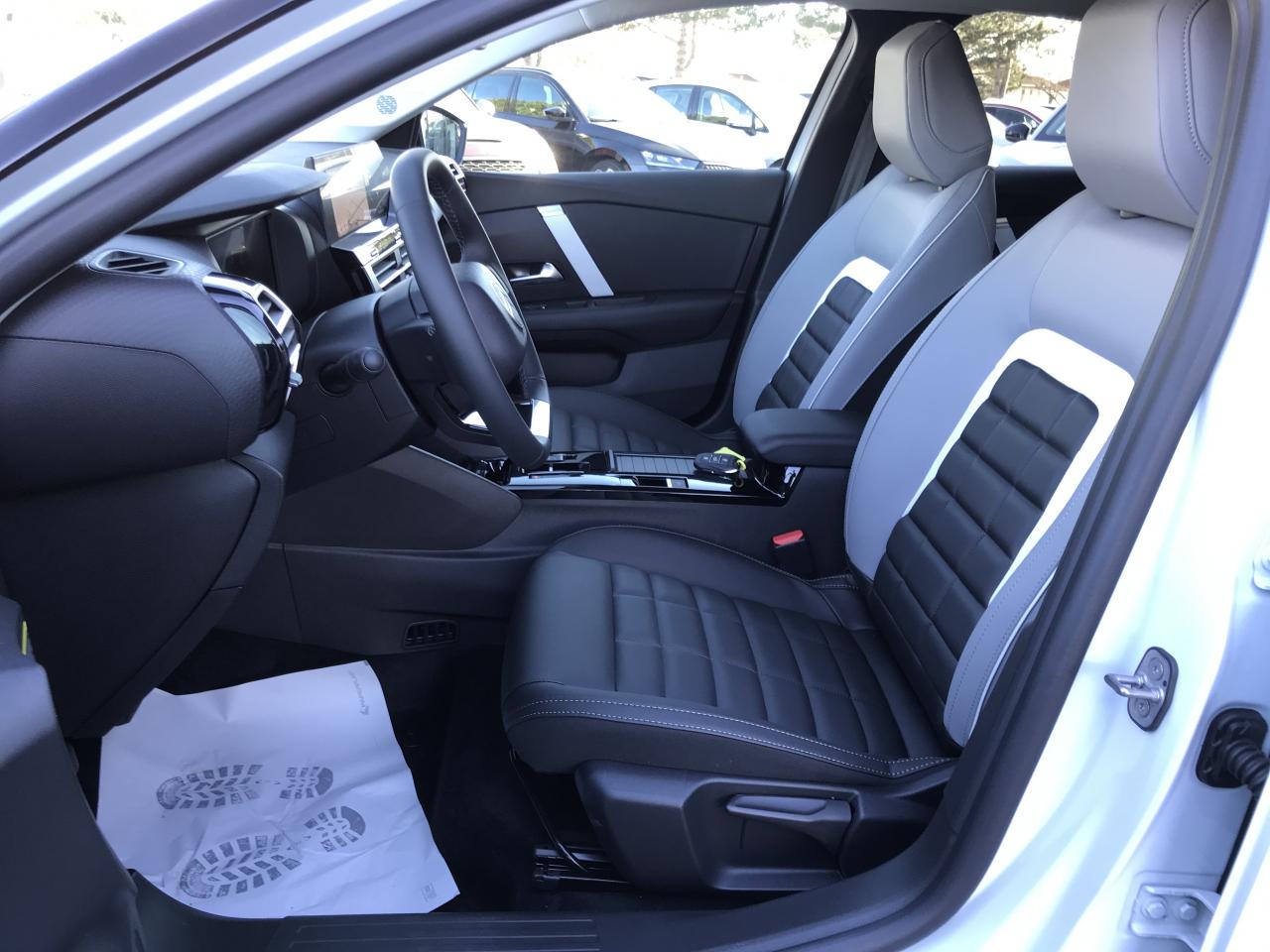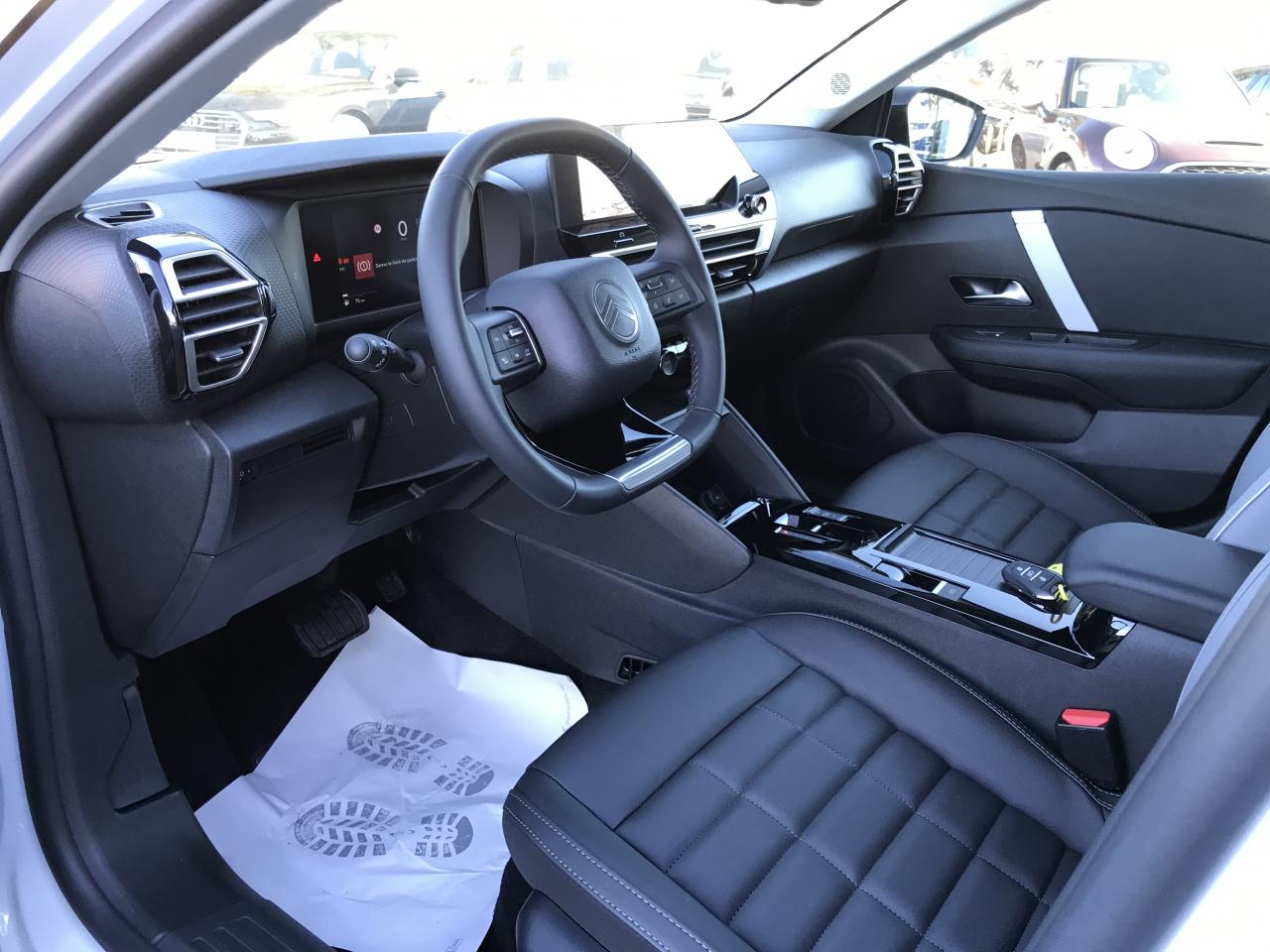 2 prises USB au rang 1 (1 type C + 1 type A) + 1 prise USB en rang 2 (type A)Aérateurs centraux en rang 2ABS + AFU + ESP + REFAccès et démarrage mains libres Proximity 2 Télécommandes 3 boutons (verrouillage, coffre et déverrouillage).Accoudoir central AR avec trappe à skisAide au démarrage en penteAide au stationnement ARAide au stationnement AV et latéralAirbags frontaux, latéraux AV et rideauxBanquette AR fractionnable 2/3 - 1/3Boîte automatique 6 rapportsCaméra de reculClimatisation automatique bi-zoneColor Clips Gold SatinCombiné numérique couleur 7" TFTCondamnation centralisée avec Plip et condamnation automatique du coffre et des portes en roulantConsole centrale haute avec rangements et accoudoirCoques de rétroviseurs extérieurs Noir BrillantDétection de sous-gonflageDirection assistéeEclairage d'accompagnement sous les rétroviseurs extérieursEcran central 10" tactile: - Système audio numérique (DAB) 6 HPs - Apple CarPlay et Android Auto sans fil - Reconnaissance vocale - Kit mains libres Bluetooth - Boîtier télématique : Appel d'urgence et Citroën AssistanceElargisseurs d'aile et bas de caisse Noir MatEssuie-vitre AV automatiqueFeux AR à LED avec signature lumineuseFeux diurnes à LED avec signature lumineuseFrein de stationnement électrique automatiqueGarnissage Toile enduite Noir/Toile enduite Gris Clair Ambiance Metropolitan Grey + Sièges Advanced ComfortInterface personnalisable avec WidgetsJantes alliage 18" AMBER DiamantéesKit de dépannage provisoire de pneumatiquesLécheurs de vitres latérales NoirLève-vitres AV et AR électriques et séquentielsNavigation 3D Connectée sur écran central 10'' tactile - Système de navigation TomTom - Reconnaissance vocale avec langage naturel - Interface personnalisable avec Widgets - Services Connect PLUS additionnels pour une période d'essai de 12 moisPack Drive Assist - Active Safety Brake 2.0 (fonctionne à l'aide d'un radar de 7 à 140 km/h, y compris de nuit, et détecte les cyclistes) - Commutation automatique des feux de route - Reconnaissance étendue des panneaux et recommandation de vitesse - RéguPack Navigation Connectée - Navigation 3D Connectée sur écran central 10'' tactile (comprend Interface personnalisable avec Widgets et Reconnaissance vocale avec langage naturel) - Combiné numérique couleur 7'' TFT - Fonction Top Rear Vision de Pack Safety - Active Safety Brake (fonctionne de 30 à 80 km/h et détecte les piétons et les cyclistes) - Alerte active de Franchissement Involontaire de Ligne - Alerte Attention Conducteur - Alerte Risque Collision - Allumage automatique des feux de croisement - Coffee Break AlePlancher de coffre à 2 positionsPoche aumônière au dos des sièges AVPoignées de portes extérieures couleur caisseProjecteurs LEDRétroviseur intérieur électrochromeRétroviseurs extérieurs électriques et dégivrantsRétroviseurs extérieurs rabattables électriquementSabot AV Silver Chrome SatinServices Connect PLUS Gratuit pendant une période d'essai de 12 moisSiège conducteur avec réglage lombaireSièges conducteur et passager réglables en hauteurSurtapis AV et ARSuspension Citroën Advanced ComfortTCS (Contrôle de la traction)Top Rear Vision de la caméra de reculVitres AR et lunette AR surteintéesVolant cuir pleine fleurVolant réglable en hauteur et en profondeur