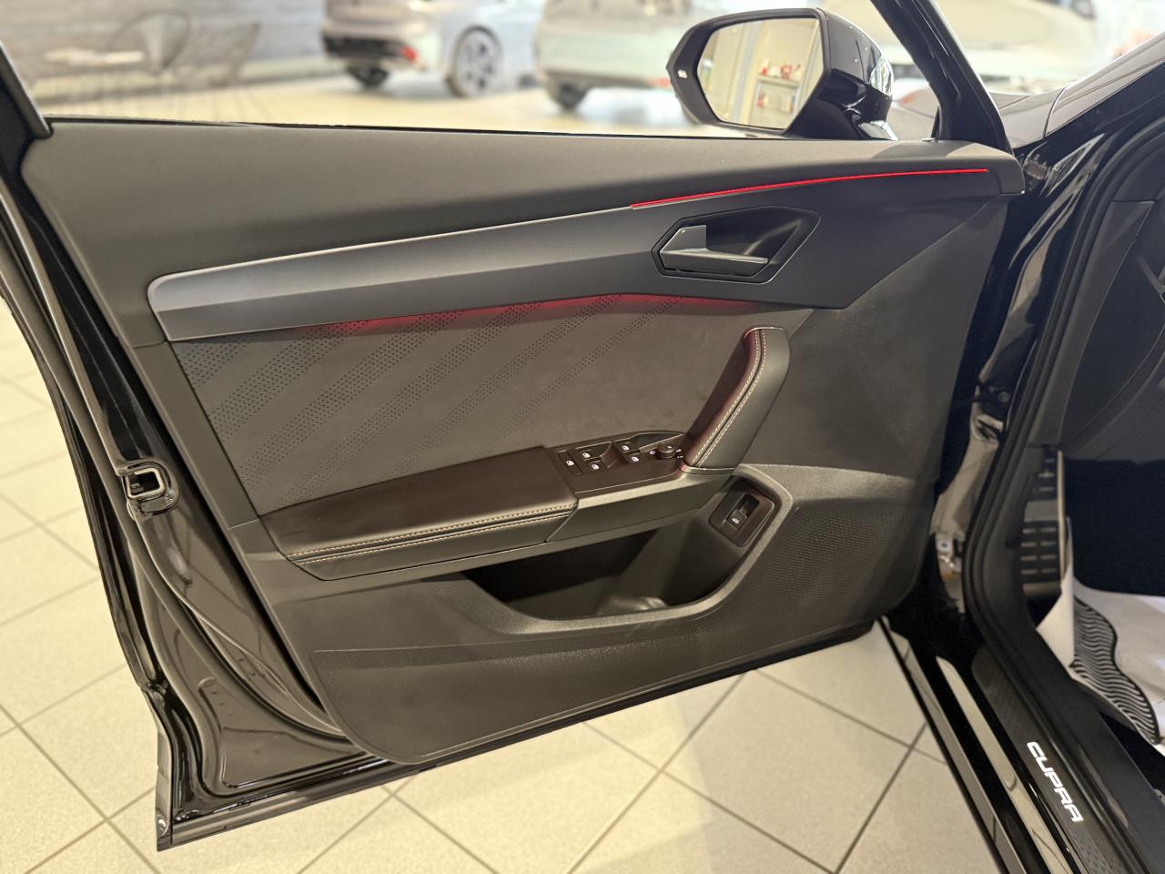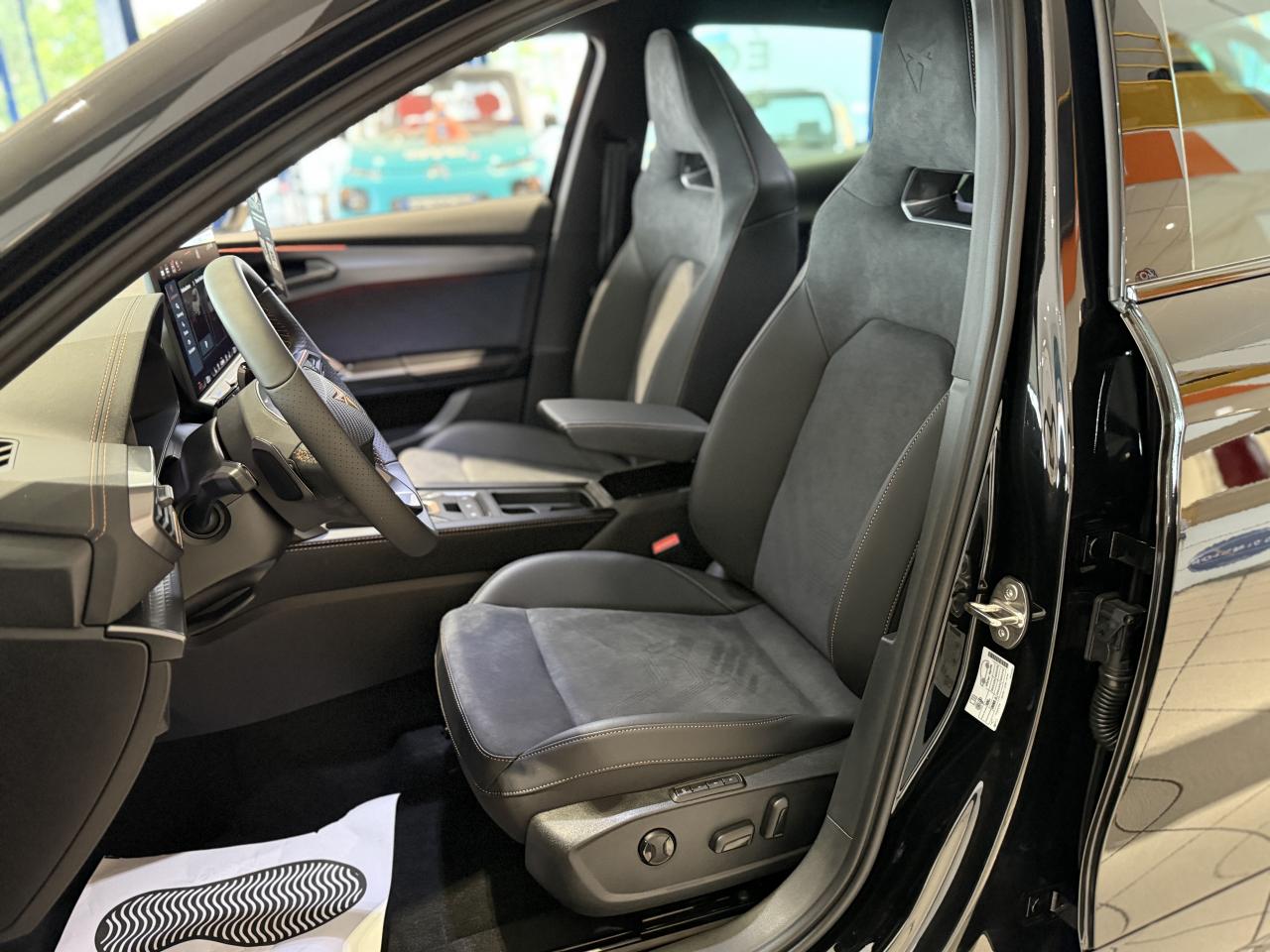 6 haut-parleursAccès et démarrage mains-libresAccoudoir central avantAide au stationnement avant/arrièreAirbag central avantAirbags latéraux et rideauxAppel d'urgence - ecallBandeau arrière 'infinite light' intégrant le logo cupra lumineux avec signature lumineuse tri-led et cérémonie de bienvenueBas de caisses couleur contrastante noir obsidienBluetoothCaméra de reculCiel de pavillon noirClimatisation automatique climatronic tri-zoneConnectivité 4x usb-cConnectivity box avec chargeur à inductionContrôle vocalCoque de rétroviseurs peinte dans le ton contrasté noir obsidienneCupra boxCupra connectDétecteur de pluie et allumage automatique des projecteursDesign intérieur pure contre-portes en tep noir surpiqués<br>planche de bord noire surpiquée avec inserts dark alu<br>siège conducteur à réglage manuels en hauteur et lombaire<br>sièges sports bimatière textile et tep noir aspDiffuseur couleur contrastante noir obsidienDigital cockpit : combiné d?instruments digital haute résolution couleur de 10 25'Direction dynamiqueDossiers de banquette ar rabattables 2/3 1/3Double-sortie d'échappement noire styliséeEclairage d'ambiance intérieur intelligentEclairage de bienvenue avec projection du logo cupra au solElargisseurs d'ailes couleur contrastante noir obsidienEntrées d'air av couleur contrastante noir obsidienFixations isofix et toptether aux sièges arrièreFront assist avec détection des piétons et des cyclistesFull link sans fil (android auto apple carplay)Hayon électrique fonction virtual pedalJantes alliage 18'' tempestKit de sécurité cupraLampe de lecture avant et arrière à ledLane assistant : assistant de maintien dans la voieLight assist : activation ou désactivation automatique des feux de routePack intérieur dark alu avec inserts cuivrésPalettes de changement de rapportsPare-soleil avant avec miroirs de courtoisie éclairésProjecteurs anti-brouillard triangulaires avec éclairage d'intersection et éclairage d'accompagnementProjecteurs full led avec signature tri-ledRégulateur de vitesse adaptatifRétroviseur intérieur électrochromeRadio numérique dabRails de toit et entourage de vitres noir pianoSeuils de porte cupra rétro-éclairésSign assist (reconnaissance des panneaux de signalisation)Système d'info-divertissement avec écran tactile hd 12 9' et touches de commandes tactiles rétro-éclairéesSystème de détection de la somnolence du conducteurVitres arrière surteintéesVolant supersports cupra avec boutons satellitesVolant supersports cupra chauffant en cuir
