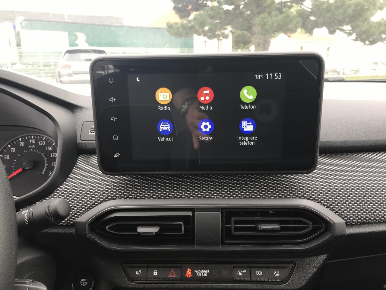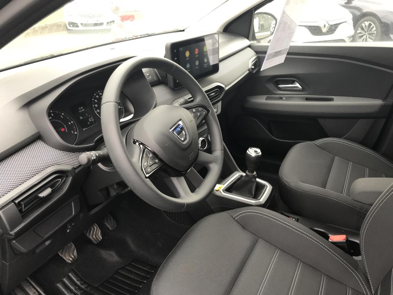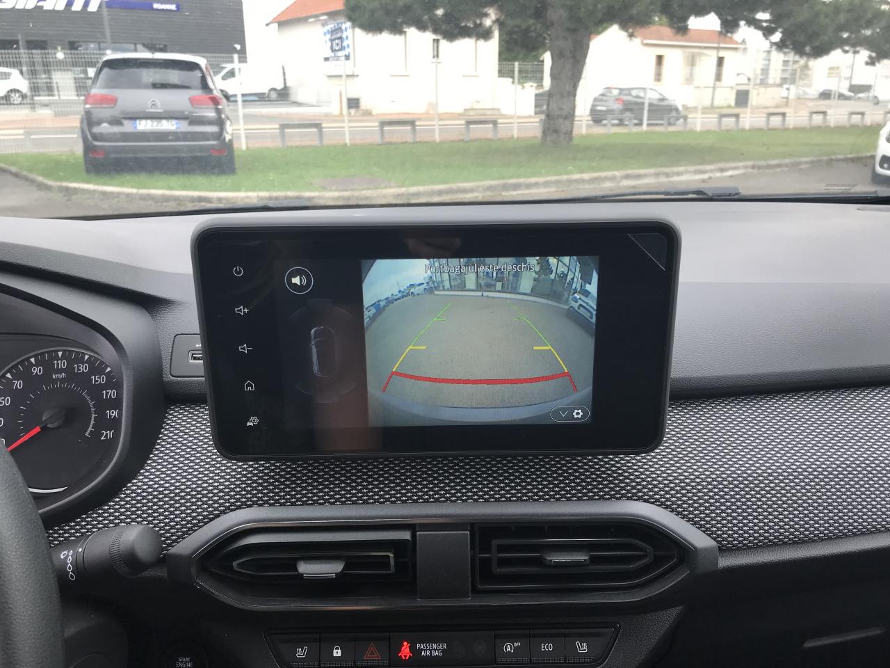 Climatisation manuelle3 appuis-têtes ARAirbag frontal conducteur et passagerAirbag latéral AV : thorax + rideauAllumage des feux et essuie-glace automatiquesAlternateur renforcéAssistance au freinage d'urgence + allumage des warningsBanquette AR rabattable 1/3-2/3Bouton appel d'urgence E-callCluster TFTCondamnation centralisée des portes à distanceCondamnation des ouvrants en roulantDétection de pression des pneusEvolution de gammeFeux AR avec signature lumineuse YFeux de jour à LEDFonction éco-modeHarmonie intérieureLève-vitres AV électriques, conducteur impulsionnelMedia display (écran 8'', réplication smartphone, 4 haut-parleurs, 1 port USB)Ordinateur de bordProjecteurs antibrouillardRégulateur et limiteur de vitesseRétroviseur intérieur jour/nuitRétroviseurs extérieurs électriques et dégivrantsRétroviseurs extérieurs ton carrosserieRappel de bouclage de ceinturesSellerie Confort avec surpiquresSignature lumineuse DACIA en Y à LEDSystème anti-blocage des roues (ABS)Système de fixation IsofixSystème de freinage d'urgence autonome à des vitesses interurbaines 7-170km/hVitres teintéesVolant réglable en hauteur et en profondeur