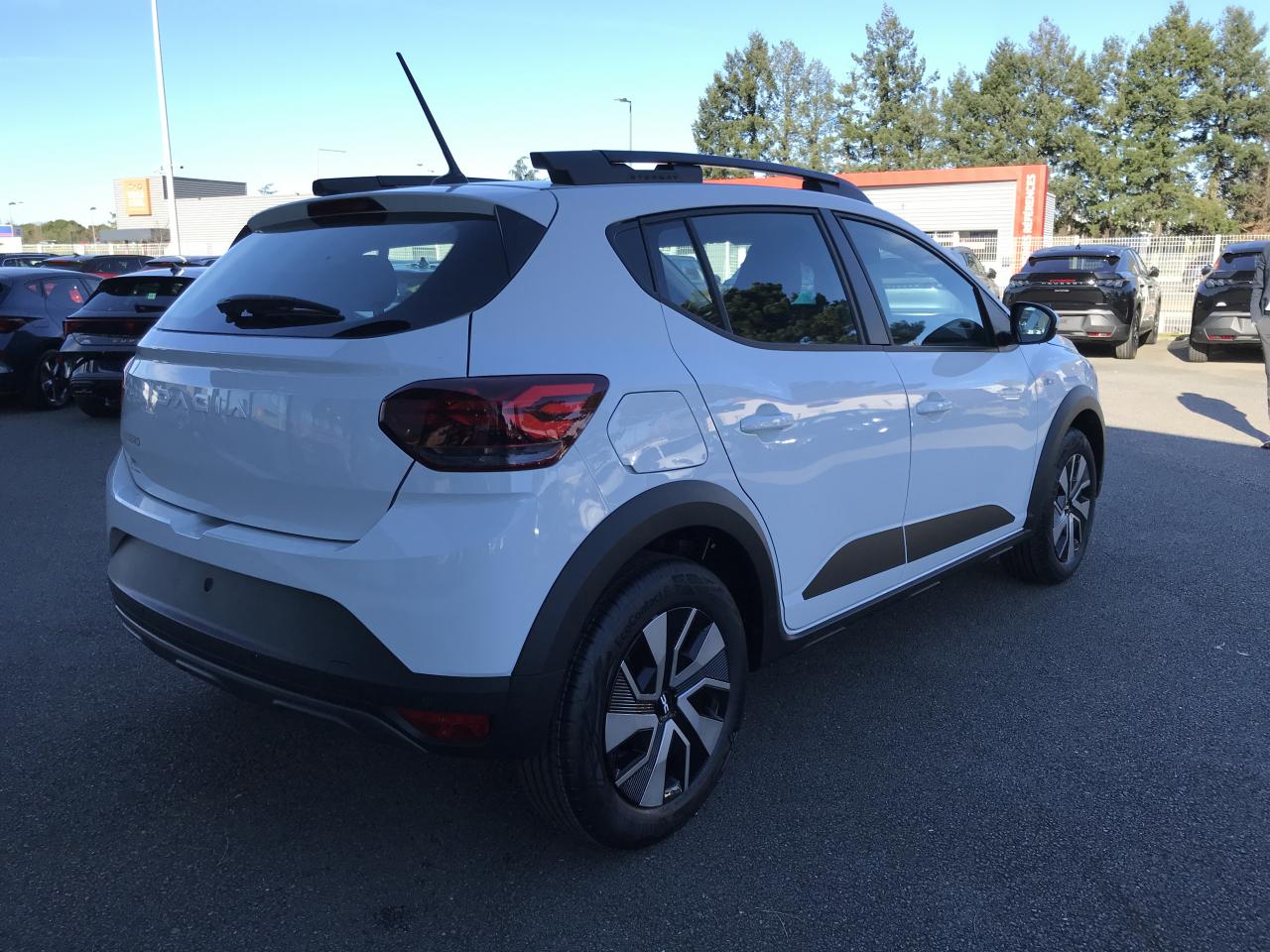 Feux AR avec signature lumineuse Y3 appuis-têtes ARAide au parking ARAirbag frontal conducteur et passagerAirbag latéral AV : thorax + rideauAlerte franchissement de ligne et assistant maintien dans la voieAllumage des feux et essuie-glace automatiquesAssistance au freinage d'urgence + allumage des warningsBanquette AR rabattable 1/3-2/3Barres de toit modulablesBouton appel d'urgence E-callClé 3 boutonsClimatisation manuelleCondamnation centralisée des portesCondamnation des ouvrants en roulantConsole basse + rangement ouvertDétection de pression des pneusEclairage du coffreFeux de jour à LEDFonction éco-modeLève-vitres AR électriquesLève-vitres AV électriques, conducteur impulsionnelMedia Display (écran tactile 8'' sans navigation, radio, réplication smartphone USB, 4 haut-parleurs audiostreaming Bluetooth, satellite de commandes au volant, 1 prise USB-A et 1 prise USB-C)Peinture opaquePrédisposition EthylotestProjecteurs antibrouillardRégulateur et limiteur de vitesseRétroviseur intérieur jour/nuitRétroviseurs extérieurs électriques et dégivrantsRétroviseurs extérieurs ton carrosserieRappel de bouclage de ceinturesReconnaissance des panneaux de signalisation avec alerte de survitesseSellerie Stepway avec surpiquresSiège conducteur réglable en hauteur + accoudoir AVSignature lumineuse DACIA en Y à LEDSystème anti-blocage des roues (ABS)Système de fixation IsofixSystème de freinage d'urgence avancé (pieton, deux-rorues et intersection)Système de surveillance de l'attention du conducteurTableau de bord avec écran numérique 3,5'' et compteurs analogiquesVolant réglable en hauteur et en profondeurVolant Soft Feel TEP
