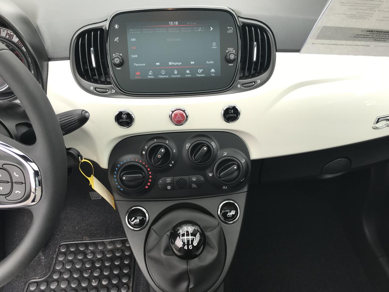 ABS – antiblocage des roues avec répartiteur de freinage EBDAide au freinage d'urgence (BAS)Air conditionné manuelAide au démarrage en côte Préparation IsofixBanquette arrière rabattable avec appui-têteCondamnation automatique des ouvrants en roulantCoques de rétroviseurs extérieurs couleur carrosserieESP - contrôle électronique de stabilité avec “Hill Holder"Jantes alliage 15” New Lounge2 prises USBPoignées de porte chroméesLimiteur et régulateur de vitesseRétroviseurs extérieurs à réglage électrique et sonde de température extérieureSiège conducteur réglable en hauteurSystème Link : intégration Apple CarPlay et compatibilité Android AutoSystème Uconnect 7” HD (Dual Tuner / USB / Bluetooth)Toit vitré panoramique fixe avec pare-soleilVitres avant électriquesVolant réglable en hauteurVolant simili-cuirCombiné de bord analogiqueDétails chromés sur calandre AV