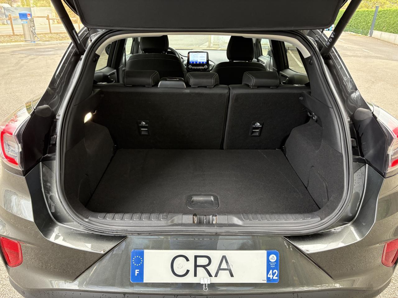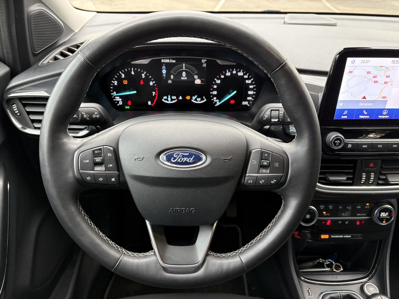 2 Fixations Isofix à l'arrière3 appuie-tête arrière5 ceintures de sécurité 3 points5 Modes de conduite sélectionnables (normal, eco, sport, faible adhérence, trail)Aide au démarrage en côteAide au maintien dans la voie avec détection des bas-côtésAide au stationnement arrièreAirbags frontaux, latéraux (thorax) et rideauxAlerte d'oubli de ceintures avant/arrièreAlerte de franchissement Involontaire de ligneAllumage automatique des projecteursBanquette arrière rabattable 40/60Becquet arrière couleur carrosserieClimatisation manuelleCombiné d'instrumentation TFT couleur 4,2" avec EcomodeConsole centrale avant avec deux porte-gobelets rétroéclairésConsole centrale avec accoudoir et rangementsContour des vitres latérales en noir finition brillanteCorrecteur électronique de trajectoire ESPDésactivation de l'airbag du passager avantDirection assistée électriqueEclairage d'ambiance intérieurFeux arrière à LEDFeux de jour à LEDFeux de route intelligents (passage feux de croisement/route automatique)FordPass Connect avec modem embarqué et fonction eCallFrein à disques à l'avantGrille de calandre avec barres horizontales et contour façon chromeJantes alliage 17" 10 branches finition Absolute BlackKit de réparation pneumatiqueLevier de frein à main gainé de SensicoLevier de vitesses gainé de SensicoLimiteur de vitesse intelligentLogo MHEV sur HayonPare-brise acoustiquePare-chocs couleur carrosseriePartie inférieure du pare-chocs avant noirPédalier designPeinture non-métallisée Bleu AbyssePhares avant antibrouillard avec fonction d'éclairage d'anglePlancher de coffre ajustablePlaques de seuil de porte avant TitaniumPrise 12 V sur console centrale avantReconnaissance des panneaux de signalisationRégulateur de vitesseRétroviseurs extérieurs électriques couleur carrosserie, dégivrant et rabattables avec rappels de clignotantsSellerie tissu noir AlhambraSièges avant massantsSièges avant réglables en hauteur avec soutien lombaireSuspension standardSystème audio Ford SYNC 3 avec écran tactile 8", commandes vocales, 2 ports USB, alerte contresens, compatible AppLink, Apple CarPlay et Android auto, 7 hauts-parleursSystème de chargement du smartphone par inductionSystème de Navigation Europe et points d'intérêt MichelinSystème de prévention de collision avec freinage post-collision et détection piétonsSystème de surveillance de pression des pneusSystème MyKey (seconde clé programmable)Tapis de sol avant et arrière avec surpiquresTrappe à carburant Ford EasyFuelVerrouillage centralisé à distanceVitres électriques avant et arrière avec descente et remontée à impulsionVolant 3 branches en cuir