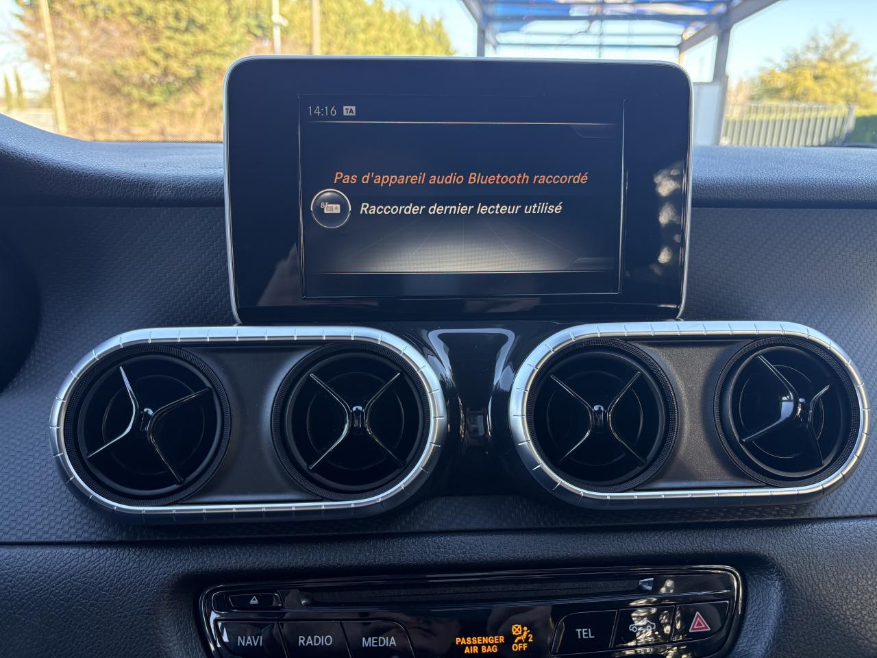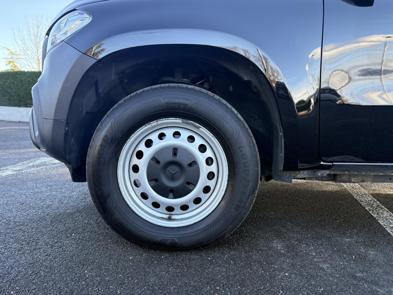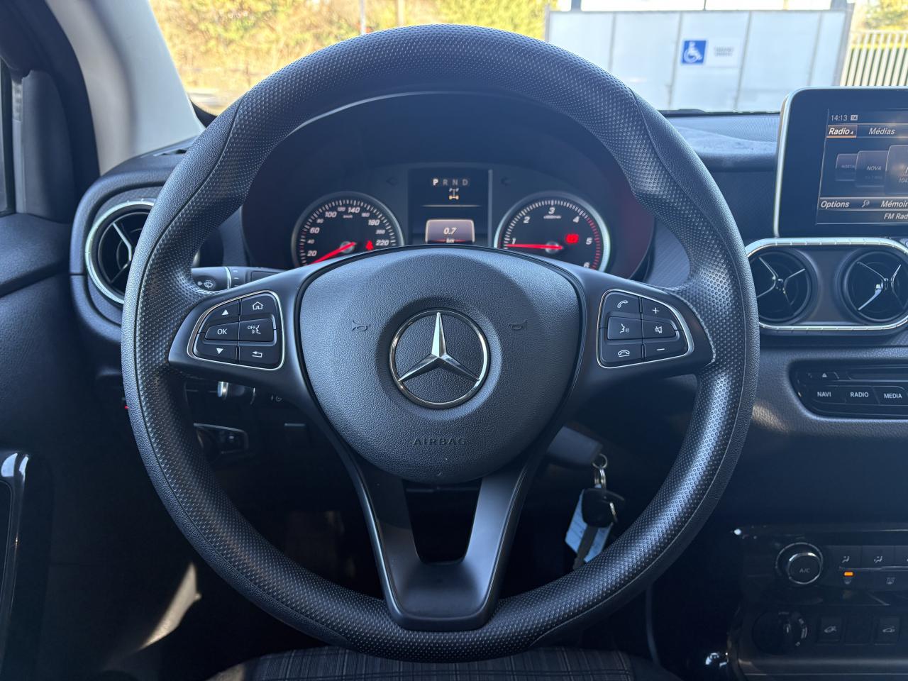 ADAPTIVE BRAKE avec aide au démarrage en côteAirbags ARAirbags avantAlerte de franchissement de ligne involontaire et reconnaissance des panneaux de signalisation routièreAntiblocage ABSAntidémarrageASR (Anti-patinage)Audio 20 USBAvertisseur de perte de pression des pneumatiques (témoin uniquement)BAS (freinage d'urgence assisté)Boîte à gants verrouillableBoite automatique 7 vitessesBuses d’aération avec cerclage chromé argenté et croix centrale noir brillantCiel de pavillon beige macchiatoClimatiseur manuelCricCrochet de dépannageESP (régulation de comportement dynamique)ESP avec stabilisation de la remorqueFixations de siège enfant i-Size à l'arrièreHaut-parleurs à deux voies AV et ARJantes en acier 17"Lève-vitres électriques arrièreLève-vitres électriques avantLimiteur de vitesse en descenteLunette arrière chauffanteModule de communication LTE pour l'utilisation des services Mercedes me connectModule de pavillon confortPare-chocs arrière , peint en noir, avec marchepied intégréPare-chocs avant noir à grainsPeinture Blanc chisanaPhares avant halogènesPneus étéProjecteurs antibrouillard halogènesQuatre oeillets d’arrimage sur les côtés de la benneRétroviseurs extérieurs à réglage électriqueRevêtement de sol en matière synthètiqueRoue de secoursSièges avant réglables manuellementSpots d'éclairage intérieur dans l'espace arrièreSystème d'Appel d'Urgence Mercedes-BenzTableau de bord noir à grainsTempomat (Régulateur de vitesse)Tissu Tunja noirTrain de roulement confortTransmission intégrale débrayableTransmission intégrale enclenchable avec réductionTriangle de présignalisation CEE dans porte conducteurTrousse de secours dans la porte passagerVerrouillage centralisé à télécommandeVitres teintées