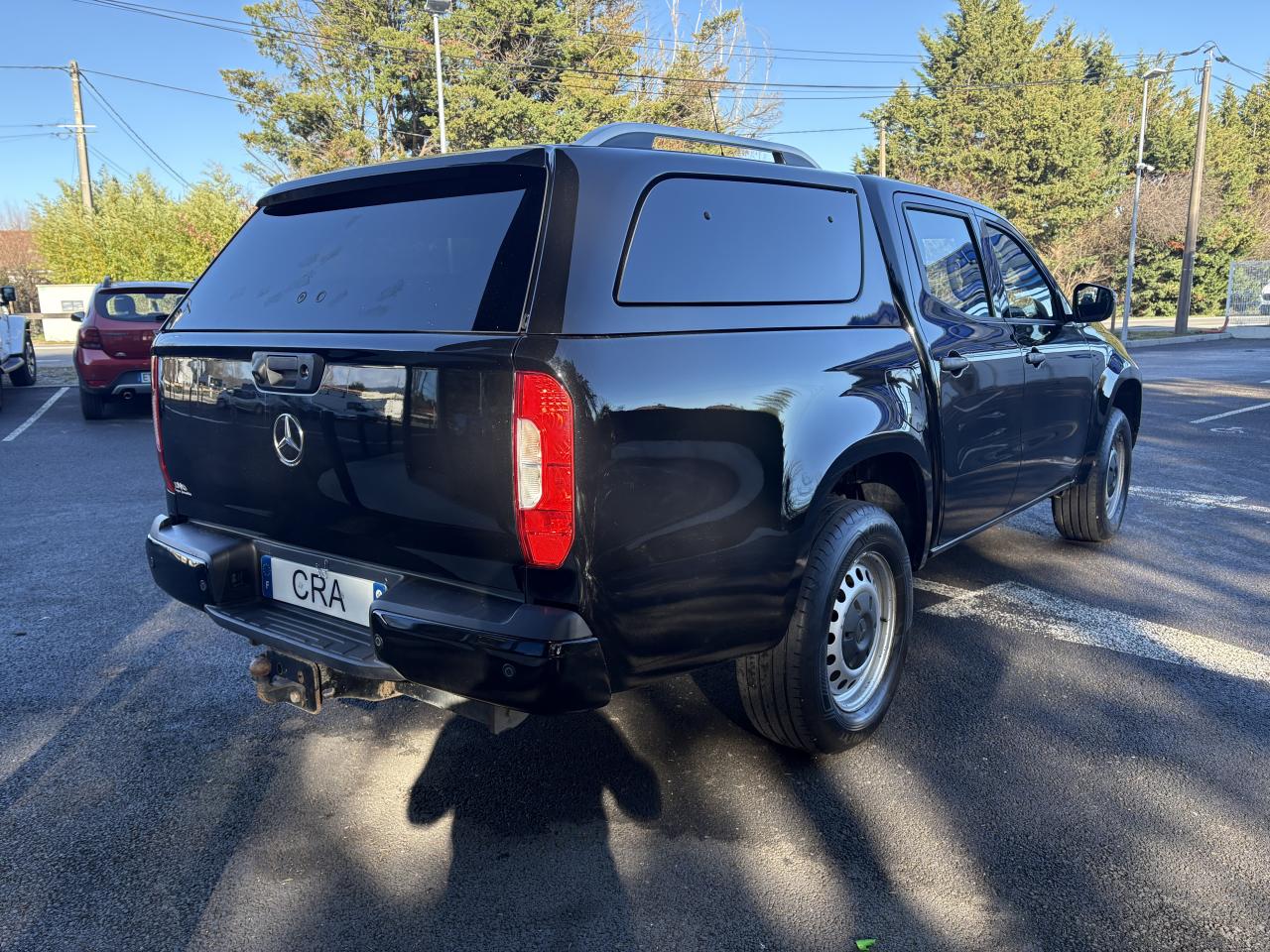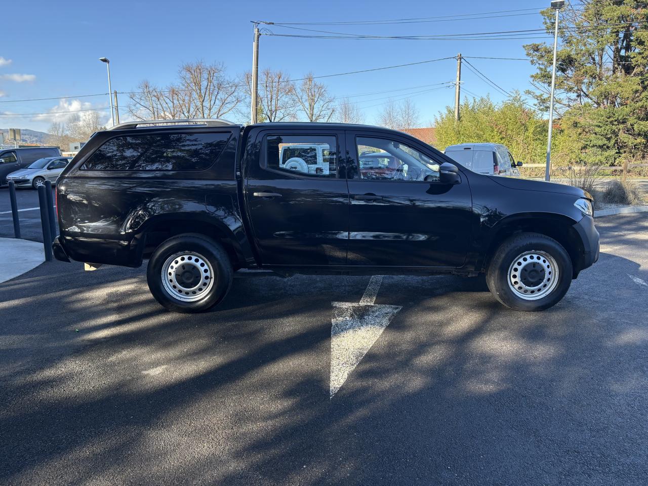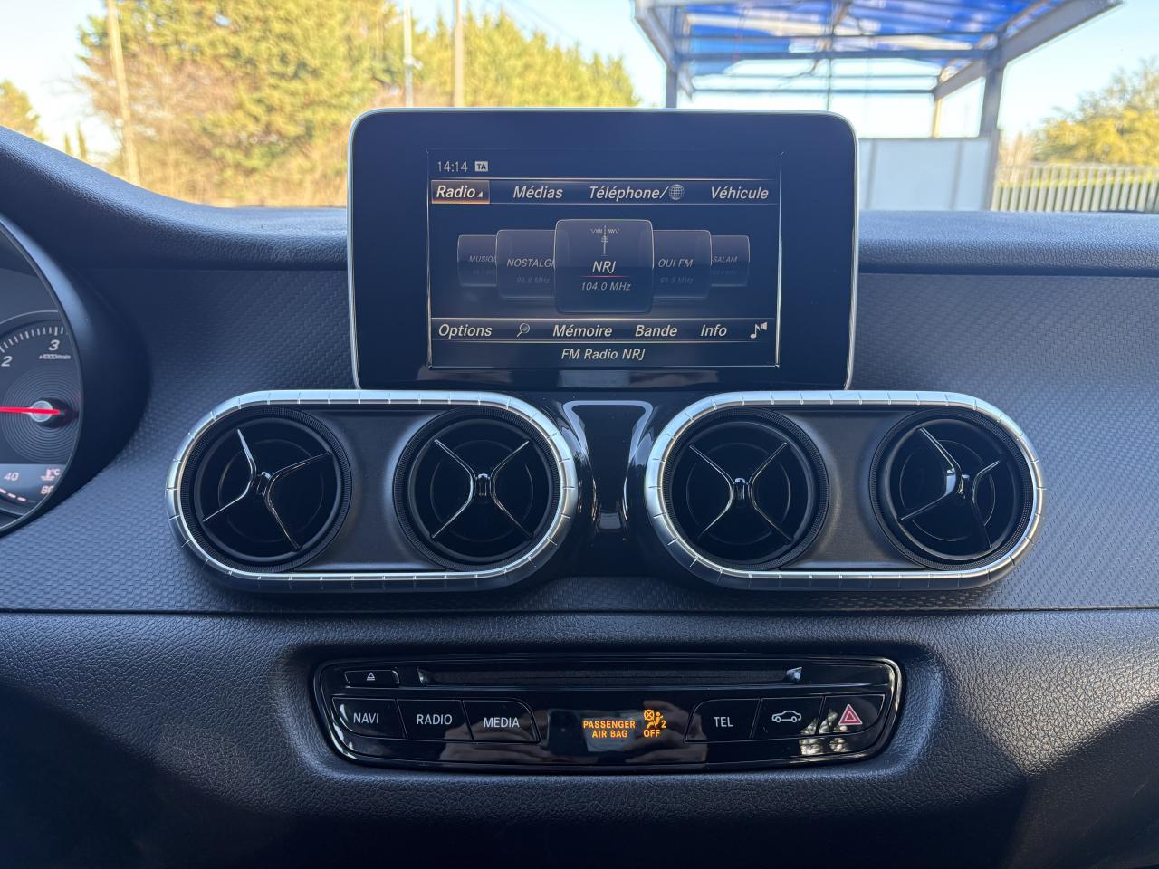 ADAPTIVE BRAKE avec aide au démarrage en côteAirbags ARAirbags avantAlerte de franchissement de ligne involontaire et reconnaissance des panneaux de signalisation routièreAntiblocage ABSAntidémarrageASR (Anti-patinage)Audio 20 USBAvertisseur de perte de pression des pneumatiques (témoin uniquement)BAS (freinage d'urgence assisté)Boîte à gants verrouillableBoite automatique 7 vitessesBuses d’aération avec cerclage chromé argenté et croix centrale noir brillantCiel de pavillon beige macchiatoClimatiseur manuelCricCrochet de dépannageESP (régulation de comportement dynamique)ESP avec stabilisation de la remorqueFixations de siège enfant i-Size à l'arrièreHaut-parleurs à deux voies AV et ARJantes en acier 17"Lève-vitres électriques arrièreLève-vitres électriques avantLimiteur de vitesse en descenteLunette arrière chauffanteModule de communication LTE pour l'utilisation des services Mercedes me connectModule de pavillon confortPare-chocs arrière , peint en noir, avec marchepied intégréPare-chocs avant noir à grainsPeinture Blanc chisanaPhares avant halogènesPneus étéProjecteurs antibrouillard halogènesQuatre oeillets d’arrimage sur les côtés de la benneRétroviseurs extérieurs à réglage électriqueRevêtement de sol en matière synthètiqueRoue de secoursSièges avant réglables manuellementSpots d'éclairage intérieur dans l'espace arrièreSystème d'Appel d'Urgence Mercedes-BenzTableau de bord noir à grainsTempomat (Régulateur de vitesse)Tissu Tunja noirTrain de roulement confortTransmission intégrale débrayableTransmission intégrale enclenchable avec réductionTriangle de présignalisation CEE dans porte conducteurTrousse de secours dans la porte passagerVerrouillage centralisé à télécommandeVitres teintées