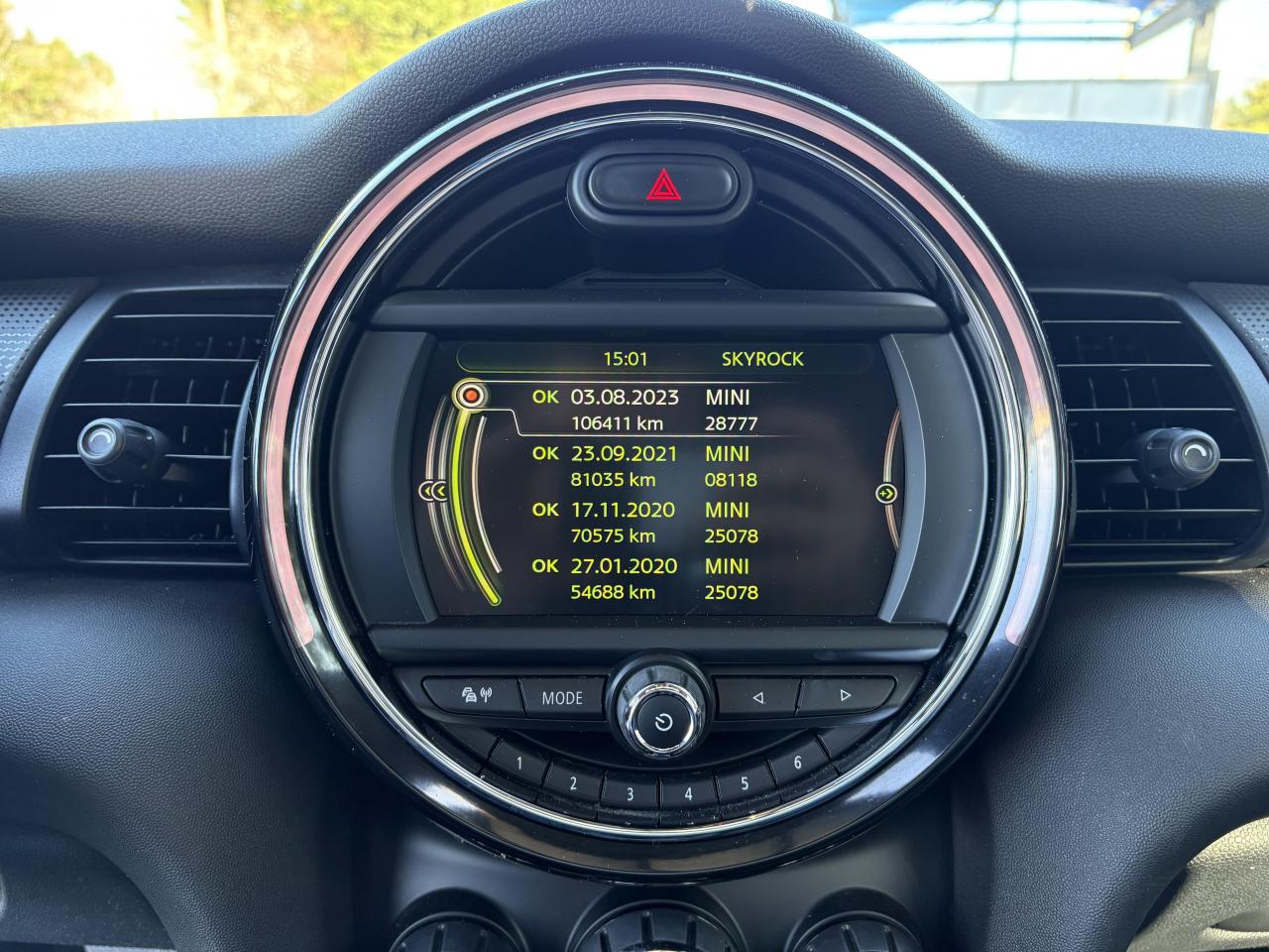 Touches multifonctions sur le volant avec régulateur de vitesse2 HP et 2 woofers2ème clé radiocommandée3ème feu de stopABS et assistance au freinage d'urgenceAirbags de têteAirbags frontaux pour conducteur et passager AVAirbags latéraux AVAllumage automatique des feux de détresseAnti-démarrage électroniqueAppuis-têtes AV et AR réglables en hauteurAutoradio MINI Boost AM/FM avec prises Aux-in et Port USB écran 4 lignes, 4HP et 2 woofersBadge Blackfriars sur l'insert passagerBadge Blackfriars sur les répétiteurs de clignotantsBadges Blackfriars sur les pilliers BBandes décoratives Blackfriars spécifiques sur les pilliers CBanquette AR 2 places rabattable 60/40Barres de calandre Piano BlackBecquet AR de toitBoîte de vitesses manuelle à 6 rapportsBuses d'aération cerclées de chromeBuses de lave-glace et rétroviseurs extérieurs dégivrantsCiel de pavillon Satellite GreyClignotants blancsClignotants blancsClimatisation automatique bi-zoneClimatisation automatique bi-zoneColour Line Carbon BlackColour Line Carbon BlackContour de calandre chroméContrôle du freinage en courbe CBCCoques de rétroviseurs extérieurs couleur carrosserieCrash Sensor activation automatique en cas d'accident: déverrouillage des portes, éclairage intérieur, feux de détresse, coupure batterie et pompe à carburantDétecteur de pluie et allumage automatique des projecteursDétecteur de pluie et allumage automatique des projecteursDSC (Contrôle Dynamique de stabilité)DTC Dynamic Traction Control avec fonction EDLCEcrous de roues antivolEcrous de roues antivolEdition BlackfriarsFeux de stop dynamiquesFiltre à particulesFonction "Follow me home", éclairage d'accompagnementFonction profile: import/export des données et réglages véhiculeFonction sécurité piéton avec capot actifFonction Start&Stop et démarrage sans cléFreins à disques AV et AR ventilés à l'AVIndicateur de perte de pression des pneumatiques RPAISOFIX : Ancrages normalisés pour sièges enfants sur les 2 sièges ARJantes alliage 7Jx17" (205/45 R17) design "Cosmos Spoke" noiresJantes alliage 7Jx17" (205/45 R17) design "Cosmos Spoke" noiresKit de réparation de pneusKit de réparation de pneusLève-vitres électriques AV avec commande à impulsion et protection anti-pincementMINI ConnectedMINI Mobility SystemOrdinateur de bord multifonctionsOrdinateur de bord multifonctionsOuïes latérales noires avec répétiteurs de clignotants orange intégrésOuverture et fermeture à distance des vitresPack ConnectedPare-chocs AV/AR dans la couleur de la carrosseriePoignée d'ouverture du hayon Piano BlackPoignées de portes chroméesPoignées intérieures de portes chroméesPorte-boissons AV (x2)Prétentionneurs de ceintures AVPrise 12V sous la console centraleProjecteurs AV et feux AR au contour chroméProjecteurs Full LED avec feux de jour "Omega"Projecteurs Full LED avec feux de jour "Omega"Réglage électrique de la portée des projecteursRégulateur de vitesse avec fonction freinageRégulateur de vitesse avec fonction freinageRétroviseurs extérieurs à réglage électriqueRétroviseurs extérieurs rabattables électriquementRétroviseurs extérieurs rabattables électriquementRadars de stationnement ARRadars de stationnement ARSeuils de portes chromésSiège conducteur réglable en hauteurSièges AV Sport avec Sellerie Tissu/Cuir "Diamond"Sièges AV Sport avec Sellerie Tissu/Similicuir "Black Pearl"Sortie d'echappement simpleSurveillance de l'éclairage extérieurSurveillance de la pression des pneumatiquesSurveillance de la pression des pneumatiquesSystème d'accès aux places AR Easy-EntrySystème de maintenance intelligent Condition Based Service (CBS)Système mains-libres Bluetooth niveau 1Teinte d'habitacle Carbon BlackToit et rétroviseurs noirsToit ouvrant panoramique en verreToit ouvrant panoramique en verreTouches multifonctions sur le volant avec régulateur de vitesseTrappe à carburant côté droitTriangle de présignalisation avec kit de premiers secoursVerrouillage automatique des portes dès 16 Km/hVerrouillage centralisé des portes, du coffre et de la trappe à carburantVitre AR chauffante avec essuie-glaceVolant réglable en hauteur et en profondeurVolant Sport gainé CuirVolant Sport gainé Cuir
