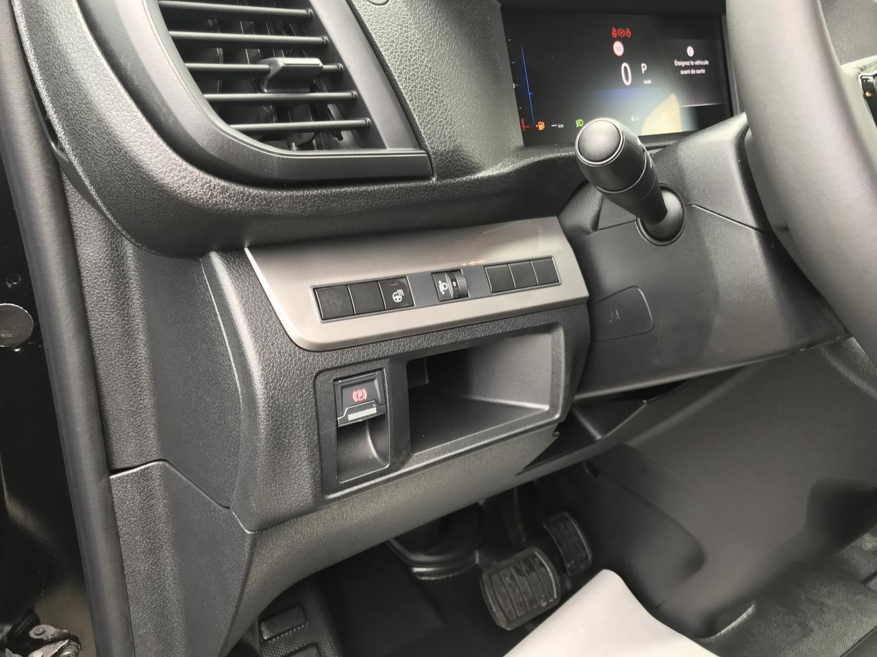 Anneau arrimageABS, AFU, ASR et ESP avec aide au démarrage en penteAide au stationnement ARAirbag frontal conducteur et passagerAirbags latéraux AV pour thorax en rang 1 et airbags rideau pour têteAllumage automatique des phares et essuie-glacesAnneaux d'arrimage (4 en Taille M et 6 en Taille XL répartis uniformément sur la zone de chargement)Banquette fixe 3 places en rang 2 avec appui-tête réglables et 2 accoudoirs, position unique conforme aux réglementations fiscales pays, avec coffre de rangement amovible sous assises gauche et centrale (accessible depuis habitacle) et avec zone pour charge longue sous assise droBanquette passager 2 places avec appuis-têtes réglables en hauteur avec rangement sous assiseBoucliers AV/AR teintés masseClimatisation manuelle régulée en températureCloison complète tôléeCloison pleine PVC avec vitre plexiglassCombiné numérique LCD noir et blancCommande e-Toggle + palettes intégrées au volant sur EAT8Commandes de radio au volantConnectivité via BTA appel d'urgence et d'assistance localisées + offres services connectésDétection de sous-gonflage indirecteGarnitures pavillon habitacle en rang 2Jeu de clefs : 2 plips HF 3 boutons avec fonction selectivitéKit de regonflage pneumatiques (Compresseur 12 V + Cartouche de produit de colmatage)Lève-vitres AV électriques impulsionnelsPack Sécurité Freinage automatique d'urgence avec alerte risque de collision, Assistance au maintien dans la voie, Commutation automatique des feux de route, Détection inattention conducteur et Reconnaissance des panneaux de vitesse et recommandationPack Visibilité Allumage automatique des feux de croisement et des essuie-vitres avantPanneaux de garniture de type Isorel en rang 2 et 3Pare-brise feuilleté acoustique thermiquePorte latérale coulissante droitePortes AR battantes 50/50 tôlées à ouverture à 180° avec verrou sur porte gauche uniquementPrise 12V (1 200 W max) dans la boîte à gantsPrises 12V (x2) en rang 2 et dans l'espace de chargementProjecteurs H15 avec feux diurnes à lampesRégulateur et limiteur de vitesseRétroviseur intérieur prismatiqueRétroviseurs extérieurs électriques et chauffantsRadio RCE (DAB), écran 5'' monochrome tactile (2HP + 2 tweeters) + Bluetooth® + 1 prise USBRevêtement de sol TPO en rangs 1 et 2Roues tôles peintes grises 16" avec cabochon noirSécurité enfants manuelleSellerie Tissu bi-ton noir/grisSiège conducteur individuel avec appui-tête réglable en hauteur et avec accoudoir Réglage : longueur, inclinaison, réhausse et rabattable (si 1 PLC) ou lombaire (si 2 PLC)Vitres fixes rang 2Vitres latérales surteintées en rang 2Volant réglable en hauteur et en profondeur