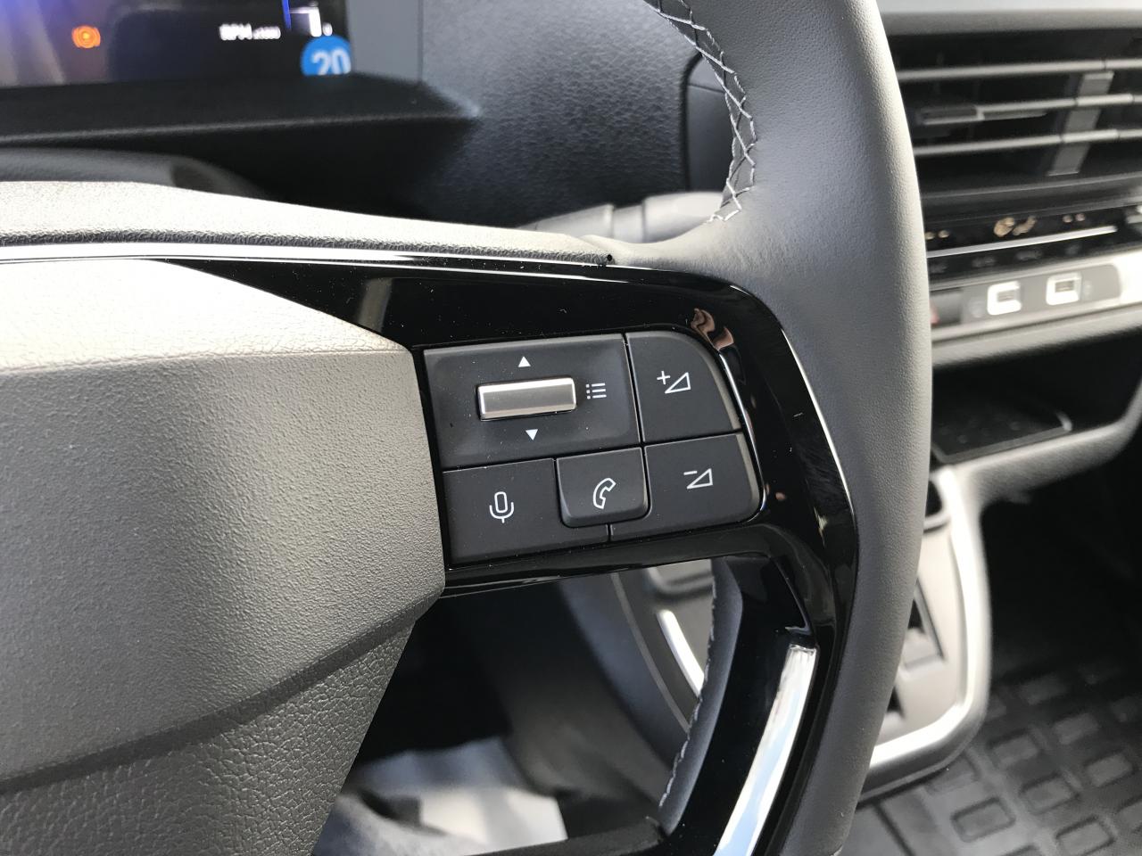 Anneau arrimageABS, AFU, ASR et ESP avec aide au démarrage en penteAide au stationnement ARAirbag frontal conducteur et passagerAirbags latéraux AV pour thorax en rang 1 et airbags rideau pour têteAllumage automatique des phares et essuie-glacesAnneaux d'arrimage (4 en Taille M et 6 en Taille XL répartis uniformément sur la zone de chargement)Banquette fixe 3 places en rang 2 avec appui-tête réglables et 2 accoudoirs, position unique conforme aux réglementations fiscales pays, avec coffre de rangement amovible sous assises gauche et centrale (accessible depuis habitacle) et avec zone pour charge longue sous assise droBanquette passager 2 places avec appuis-têtes réglables en hauteur avec rangement sous assiseBoucliers AV/AR teintés masseClimatisation manuelle régulée en températureCloison complète tôléeCloison pleine PVC avec vitre plexiglassCombiné numérique LCD noir et blancCommande e-Toggle + palettes intégrées au volant sur EAT8Commandes de radio au volantConnectivité via BTA appel d'urgence et d'assistance localisées + offres services connectésDétection de sous-gonflage indirecteGarnitures pavillon habitacle en rang 2Jeu de clefs : 2 plips HF 3 boutons avec fonction selectivitéKit de regonflage pneumatiques (Compresseur 12 V + Cartouche de produit de colmatage)Lève-vitres AV électriques impulsionnelsPack Sécurité Freinage automatique d'urgence avec alerte risque de collision, Assistance au maintien dans la voie, Commutation automatique des feux de route, Détection inattention conducteur et Reconnaissance des panneaux de vitesse et recommandationPack Visibilité Allumage automatique des feux de croisement et des essuie-vitres avantPanneaux de garniture de type Isorel en rang 2 et 3Pare-brise feuilleté acoustique thermiquePorte latérale coulissante droitePortes AR battantes 50/50 tôlées à ouverture à 180° avec verrou sur porte gauche uniquementPrise 12V (1 200 W max) dans la boîte à gantsPrises 12V (x2) en rang 2 et dans l'espace de chargementProjecteurs H15 avec feux diurnes à lampesRégulateur et limiteur de vitesseRétroviseur intérieur prismatiqueRétroviseurs extérieurs électriques et chauffantsRadio RCE (DAB), écran 5'' monochrome tactile (2HP + 2 tweeters) + Bluetooth® + 1 prise USBRevêtement de sol TPO en rangs 1 et 2Roues tôles peintes grises 16" avec cabochon noirSécurité enfants manuelleSellerie Tissu bi-ton noir/grisSiège conducteur individuel avec appui-tête réglable en hauteur et avec accoudoir Réglage : longueur, inclinaison, réhausse et rabattable (si 1 PLC) ou lombaire (si 2 PLC)Vitres fixes rang 2Vitres latérales surteintées en rang 2Volant réglable en hauteur et en profondeur