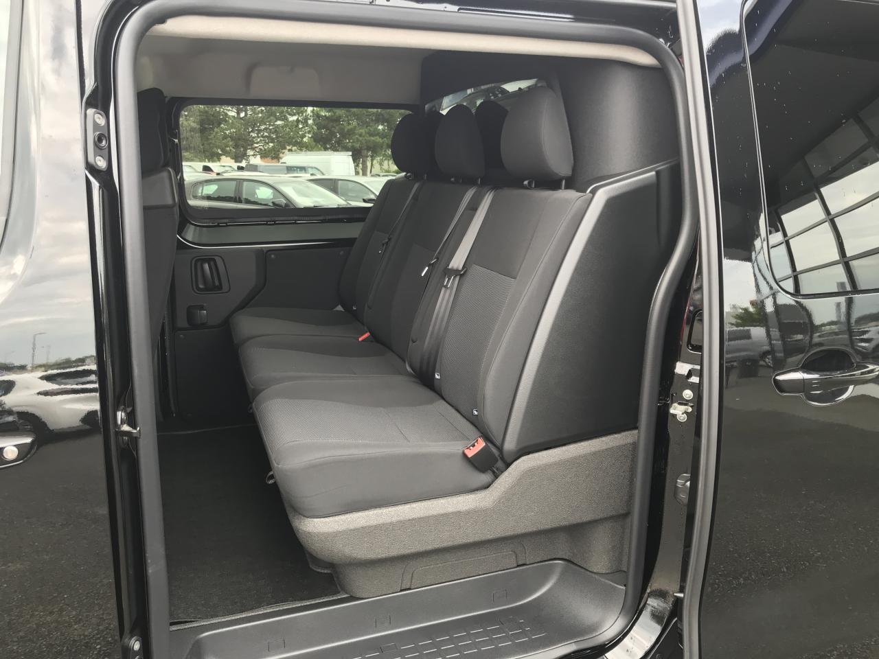 Anneau arrimageABS, AFU, ASR et ESP avec aide au démarrage en penteAide au stationnement ARAirbag frontal conducteur et passagerAirbags latéraux AV pour thorax en rang 1 et airbags rideau pour têteAllumage automatique des phares et essuie-glacesAnneaux d'arrimage (4 en Taille M et 6 en Taille XL répartis uniformément sur la zone de chargement)Banquette fixe 3 places en rang 2 avec appui-tête réglables et 2 accoudoirs, position unique conforme aux réglementations fiscales pays, avec coffre de rangement amovible sous assises gauche et centrale (accessible depuis habitacle) et avec zone pour charge longue sous assise droBanquette passager 2 places avec appuis-têtes réglables en hauteur avec rangement sous assiseBoucliers AV/AR teintés masseClimatisation manuelle régulée en températureCloison complète tôléeCloison pleine PVC avec vitre plexiglassCombiné numérique LCD noir et blancCommande e-Toggle + palettes intégrées au volant sur EAT8Commandes de radio au volantConnectivité via BTA appel d'urgence et d'assistance localisées + offres services connectésDétection de sous-gonflage indirecteGarnitures pavillon habitacle en rang 2Jeu de clefs : 2 plips HF 3 boutons avec fonction selectivitéKit de regonflage pneumatiques (Compresseur 12 V + Cartouche de produit de colmatage)Lève-vitres AV électriques impulsionnelsPack Sécurité Freinage automatique d'urgence avec alerte risque de collision, Assistance au maintien dans la voie, Commutation automatique des feux de route, Détection inattention conducteur et Reconnaissance des panneaux de vitesse et recommandationPack Visibilité Allumage automatique des feux de croisement et des essuie-vitres avantPanneaux de garniture de type Isorel en rang 2 et 3Pare-brise feuilleté acoustique thermiquePorte latérale coulissante droitePortes AR battantes 50/50 tôlées à ouverture à 180° avec verrou sur porte gauche uniquementPrise 12V (1 200 W max) dans la boîte à gantsPrises 12V (x2) en rang 2 et dans l'espace de chargementProjecteurs H15 avec feux diurnes à lampesRégulateur et limiteur de vitesseRétroviseur intérieur prismatiqueRétroviseurs extérieurs électriques et chauffantsRadio RCE (DAB), écran 5'' monochrome tactile (2HP + 2 tweeters) + Bluetooth® + 1 prise USBRevêtement de sol TPO en rangs 1 et 2Roues tôles peintes grises 16" avec cabochon noirSécurité enfants manuelleSellerie Tissu bi-ton noir/grisSiège conducteur individuel avec appui-tête réglable en hauteur et avec accoudoir Réglage : longueur, inclinaison, réhausse et rabattable (si 1 PLC) ou lombaire (si 2 PLC)Vitres fixes rang 2Vitres latérales surteintées en rang 2Volant réglable en hauteur et en profondeur