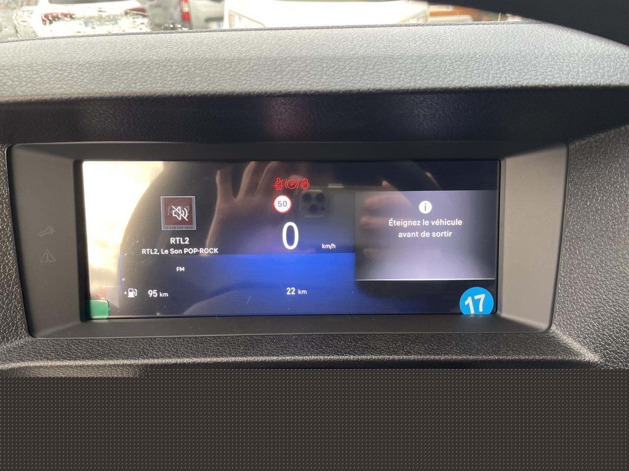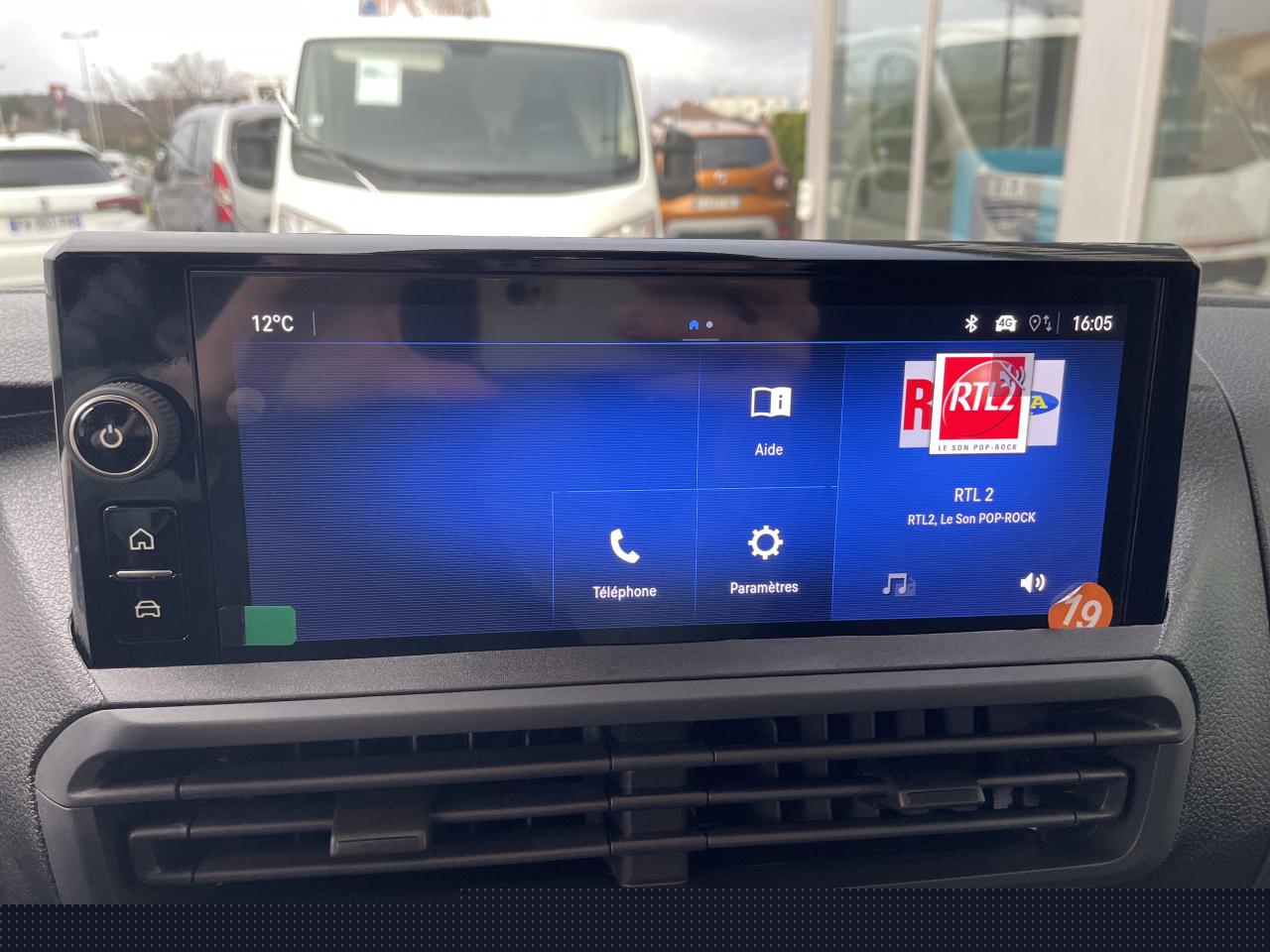 Abs afu asr et esp avec aide au démarrage en penteAide au stationnement arAirbag frontal conducteur et passagerAllumage automatique des phares et essuie-glacesAnneau arrimageBanquette passager 2 places avec appuis-têtes réglables en hauteur avec rangement sous assiseBoucliers av/ar teintés masseClimatisation manuelle régulée en températureCloison complète tôléeCombiné numérique lcd noir et blancCommandes de radio au volantConnectivité via bta appel d'urgence et d'assistance localisées offres services connectésDétection de sous-gonflage indirecteJeu de clefs : 2 plips hf 3 boutons avec fonction selectivitéKit de regonflage pneumatiques (compresseur 12 v cartouche de produit de colmatage)Lève-vitres av électriques impulsionnelsPack sécurité freinage automatique d'urgence avec alerte risque de collision assistance au maintien dans la voie commutation automatique des feux de route détection inattention conducteur et reconnaissance des panneaux de vitesse et recommandationPack visibilité allumage automatique des feux de croisement et des essuie-vitres avantPanneaux de garniture de type isorel en rang 2 et 3Pare-brise feuilleté acoustique thermiquePeinture opaquePorte latérale coulissante droitePortes ar battantes 50/50 tôlées à ouverture à 180° avec verrou sur porte gauche uniquementPrise 12v (1 200 w max) dans la boîte à gantsPrises 12v (x2) en rang 2 et dans l'espace de chargementProjecteurs h15 avec feux diurnes à lampesRégulateur et limiteur de vitesseRétroviseurs extérieurs électriques et chauffantsRadio rce (dab) écran 5'' monochrome tactile (2hp 2 tweeters) bluetooth® 1 prise usbRevêtement de sol en tpo dans l'habitacleRoues tôles peintes grises 16' avec cabochon noirSellerie tissu bi-ton noir/grisSiège conducteur individuel avec appui-tête réglable en hauteur et avec accoudoir réglage : longueur inclinaison réhausse et lombaireVolant réglable en hauteur et en profondeur