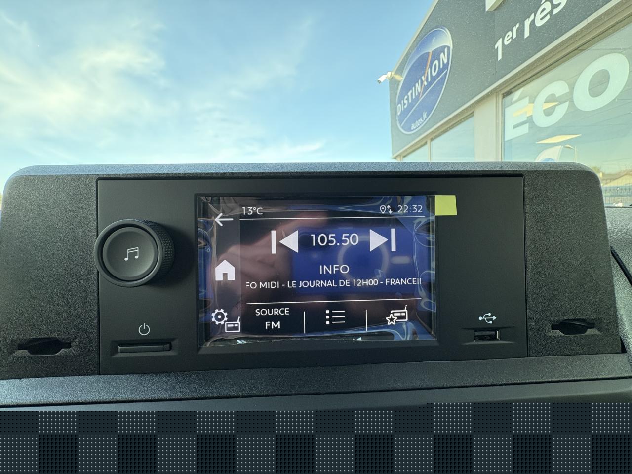 Abs afu asr et esp avec aide au démarrage en penteAide au stationnement arAllumage automatique des phares et essuie-glacesCloison complète tôléeCommandes de radio au volantDétection de sous-gonflage indirecteJeu de clefs : 2 plips hf 3 boutons avec fonction selectivitéKit de regonflage pneumatiques (compresseur 12 v cartouche de produit de colmatage)Lève-vitres av électriques impulsionnelsPack sécurité freinage automatique d'urgence avec alerte risque de collision assistance au maintien dans la voie commutation automatique des feux de route détection inattention conducteur et reconnaissance des panneaux de vitesse et recommandationPack visibilité allumage automatique des feux de croisement et des essuie-vitres avantPeinture opaquePorte latérale coulissante droitePortes ar battantes 50/50 tôlées à ouverture à 180° avec verrou sur porte gauche uniquementPrises 12v (x2) en rang 2 et dans l'espace de chargementRégulateur et limiteur de vitesseRadio rce (dab) écran 5'' monochrome tactile (2hp 2 tweeters) bluetooth® 1 prise usbSellerie tissu bi-ton noir/grisSiège conducteur individuel avec appui-tête réglable en hauteur et avec accoudoir réglage : longueur inclinaison réhausse et lombaireVolant réglable en hauteur et en profondeur