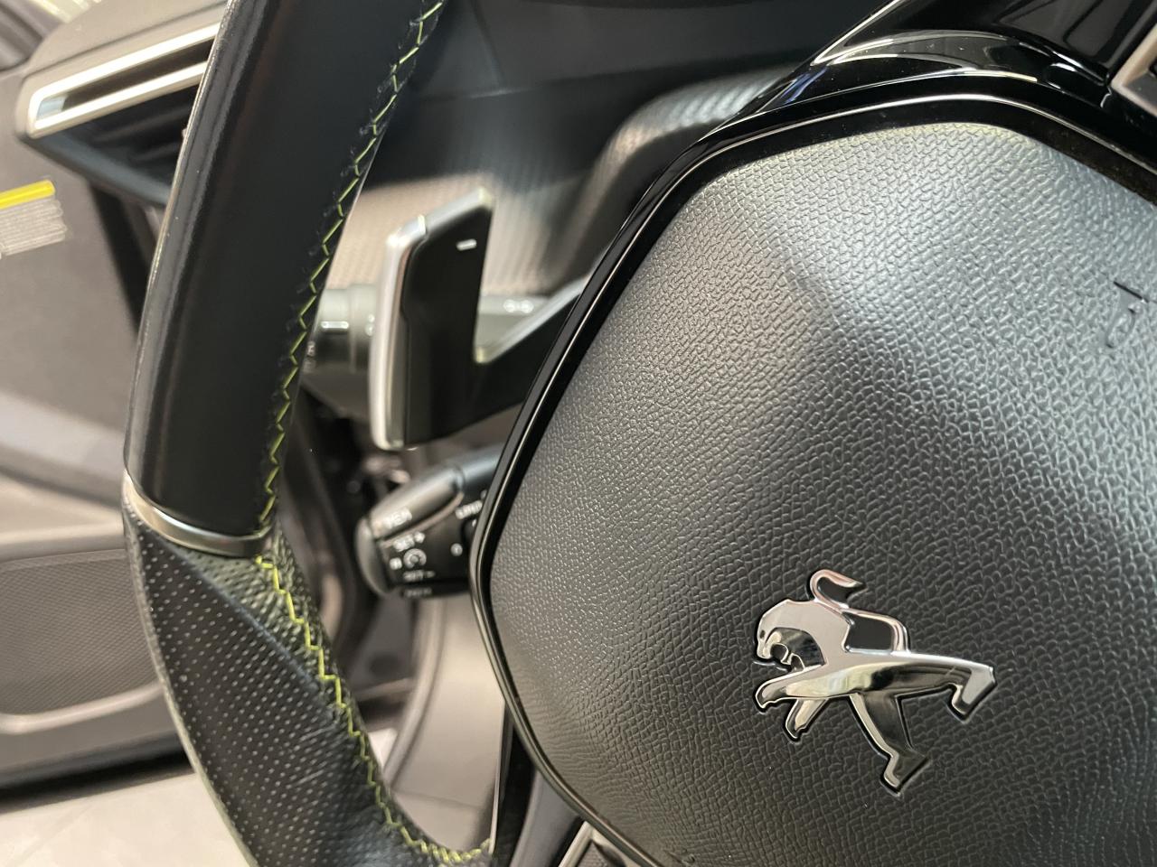 4 poignées de maintien (2 à l'avant et 2 à l'arrière)6 haut-parleurs (2 tweeters et 2 woofers à l'avant et 2 haut-parleurs à l'arrière)Accès et démarrage mains libres proximityAccoudoirs de porte avant et arrière tissu/tep isabella avec surpiqûre adamiteAide au démarrage en côteAir conditionné automatique mono-zoneAirbags frontaux auto-adaptatifs latéraux avant (thorax et abdominaux) rideaux avant et arrièreAppuie-tête avant et arrière (aux 3 places) réglables en hauteurBanquette arrière rabattable 1/3-2/3Barres de toit longitudinales noires brillantesBecquet arrière noir perla neraBoitiers de rétroviseurs extérieurs noir brillantCalandre haut de gamme noir avec marquage vertical couleur caisse larmes dark chromeCanule d'échappement chroméeChargeur à induction pour smartphone 15wCommandes d'ouverture extérieure de portes couleur caisseConsole basse avec frein de stationnement mécaniqueConsole haute avec accoudoir & frein de stationnement électriqueDécor de grille inférieure gris météorDétection de sous-gonflage indirecteEclairage polyambiant 8 couleurs (liés aux modes de conduite)Enjoliveur de seuil de coffre gris météorEnjoliveur supérieur couleur caisseEnjoliveurs de custode avec sérigraphieEsp entièrement déconnectableFeux arrière 3 griffes à ledFixations isofix top tether pour les places latérales arrièreHabitacle et ciel de pavillon noirJantes alliage 17'' diamantées karakoy bi-ton noir orbital vernis brillantKatana noir mat avec insert noir brillant et monogramme gtKit de dépannage pneumatiqueLécheurs de vitres latérales noir brillantLève-vitres électriques avant et arrière séquentiels et antipincementPédalier sport en aluminiumPack eclairage intérieurPack i-connectPack safety plusPack visibilitéPanneaux de portes arrière avec grain karsten avec baguette noir brillantPanneaux de portes avant avec décor carbone et baguette noir brillante et jonc lumineux (8 couleurs) et crosse de tirage tep isabella mistralPare-brise teinté acoustique sérigraphié bi-couchesPeugeot i-cockpit 3d avec combiné tête haute 10' numériquePlanche de bord moussée avec double surpiqûres adamite/tramontane et baguette noir brillante avec jonc chromé et jonc lumineuxPlancher de coffre modulable 2 positionsProjecteurs peugeot upper full led technology avec feux diurnes à led 3 griffesProtections latérales de porte noir grainé avec inserts gris météorRétroviseur intérieur photosensible framelessRétroviseurs extérieurs dégivrants à réglage et rabattement électriques éclairage de seuilSélecteur de mode de conduiteSellerie tissu belomka accompagnement tep isabella tri-matière uni capy et surpiqûres vert adamiteSeuils de porte aluminium avec lettrage peugeot noirSiège conducteur avec réglage mécanique de hauteurSiège passager avant réglable en hauteur manuellementSurtapis aux places avant et arrièreSystème de commutation automatique feux de route/feux de croisementTélécommande 3 boutons clé standardToit black diamondVisio park 1Vitres latérales arrière et lunette arrière chauffante temporisée surteintéesVolant compact cuir fleur commandes multimédia intégrées