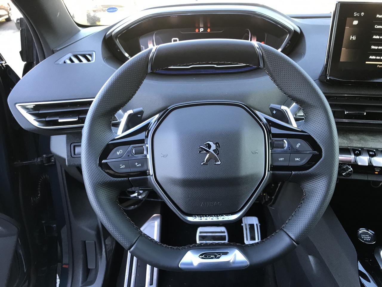 Air conditionné automatique bi-zone avec aérateurs aux places arrièreAirbags frontaux conducteur et passager adaptatifs (airbag passager déconnectable)Airbags latéraux conducteur et passager avantAirbags rideaux de tête aux places avant et arrièreAppuis-tête à sécurité optimisée réglables en hauteur sur les sièges conducteur et passager avant ainsi que sur les places latérales arrièresAvertisseur de temps de conduiteBandeau de pare-choc arrière chroméBanquette rabattable 1/3 - 2/3 (modularité 'Magic Flat' et commandes dans le coffre) avec accoudoir et trappe à skisBarres de toit longitudinales profilées en aluminiumBoîte à gants floquée et éclairéeCalandre GT avec design évolutif chroméCanules d'échappement de style chroméesAccès et démarrage mains libresCommande de verrouillage à distance (deux plips)Contrôle dynamique de stabilité CDS avec antipatinage électronique ASRCoques de rétroviseurs extérieurs Noir Perla NeraDécors de planche de bord et panneaux de portes en Alcantara Gris GrevalDécors de planche de bord et panneaux de portes en bois Tilleul foncéDécors intérieurs (baguettes de planche de bord et panneaux de portes, enjoliveur de console) chromésDétection de sous-gonflage indirecteDirection assistée électrique, avec colonne de direction réglable en hauteur et profondeur (mécanique)Drive Mode : Choix de 2 modes de conduite (Eco ou Sport)Driver Sport PackEnjoliveurs d'arc de pavillon en inoxEnjoliveurs en inox sur les protecteurs de bas de portesEssuie-vitre arrière à activation automatique au passage en marche arrièreEssuie-vitre avant avec système de lavage 'Magic Wash'Fixations pour trois sièges enfants suivant norme ISOFIX aux places passager avant et latérales arrièreFonction 'Mirror Screen' (Apple Carplay / Android Auto)Frein de stationnement électrique avec aide au démarrage en penteHabitacle et ciel de pavillon Noir MistralIndicateur de rapport engagéInserts d'ailes avant chromésJantes alliage 18" 'Detroit' bi-ton diamantées Noir OnyxJoncs de vitres latérales en inoxKit de dépannage pneumatiqueLève-vitres électriques avant /arrière séquentiels et antipincementAccoudoir central AV à ouverture papillon, avec compartiment de rangement éclairé et réfrigérableLunette arrière chauffante avec antennes sérigraphiéesMiroirs de courtoisie éclairésNavigation 3D connectée avec reconnaissance vocale, écran tactile capacitif 10" HDPédalier et repose-pied conducteur en aluminiumPack Drive Assist PlusPack Eclairage d'ambiancePack Safety PlusPack VisibilitéPassages de roues rapportés noirsPEUGEOT Connect SOS & Assistance et TeleservicesPeugeot i-Cockpit : combiné tête haute numérique haute qualité d'affichage, écran tactile capacitif 10" HD et volant compact multi-fonctionsPlafonnier avec spots de lecture avant (x2) et arrière (x2)Planche de bord surpiquéePlancher de coffre deux positionsPoches aumônières au dos des sièges avantPrise USB (dans la zone connectique)Prises 12V (x3 : zone connectique, arrière de console et coffre)Prises USB de charge (x2) au 2nd rangProjecteurs 'Peugeot Full LED Technology' avec correction automatique de site, fonction Eclairage Virage Statique,'Foggy Mode' et feux diurnes à LED prolongés dans les projecteursRégulateur et limiteur de vitesseRétroviseur intérieur à position nuit automatique, sans encadrementRétroviseurs extérieurs électriques et dégivrants, rabattables électriquement avec éclairage d'accueil à LEDRadio avec fonction DAB (Radio Numérique Terrestre), bi-tuner compatible MP3 et connectivité Bluetooth (audio streaming, kit mains libres), avec commandes au volant, 6 HP, écran tactile capacitif 10" HDReconnaissance étendue des panneaux de signalisation et préconisation de vitesseSécurité enfant électrique des vitres arrièreSabot de pare-choc avant gris métaliséSeuils de portes avant en inoxSiège conducteur avec réglage lombaireSiège conducteur et passager réglables en hauteurSiège passager avant avec mise en tabletteSurtapis avant/arrièreToggle Switches' chromés (touches 'piano' d'activation des fonctions de l'écran tactile)Toit 'Black Diamond' (toit Noir Perla Nera)Verrouillage automatique de tous les ouvrants en roulantVitres latérales arrière et lunette arrière surteintéesVolant cuir fleur perforé avec bagues chrome acier et badge GT