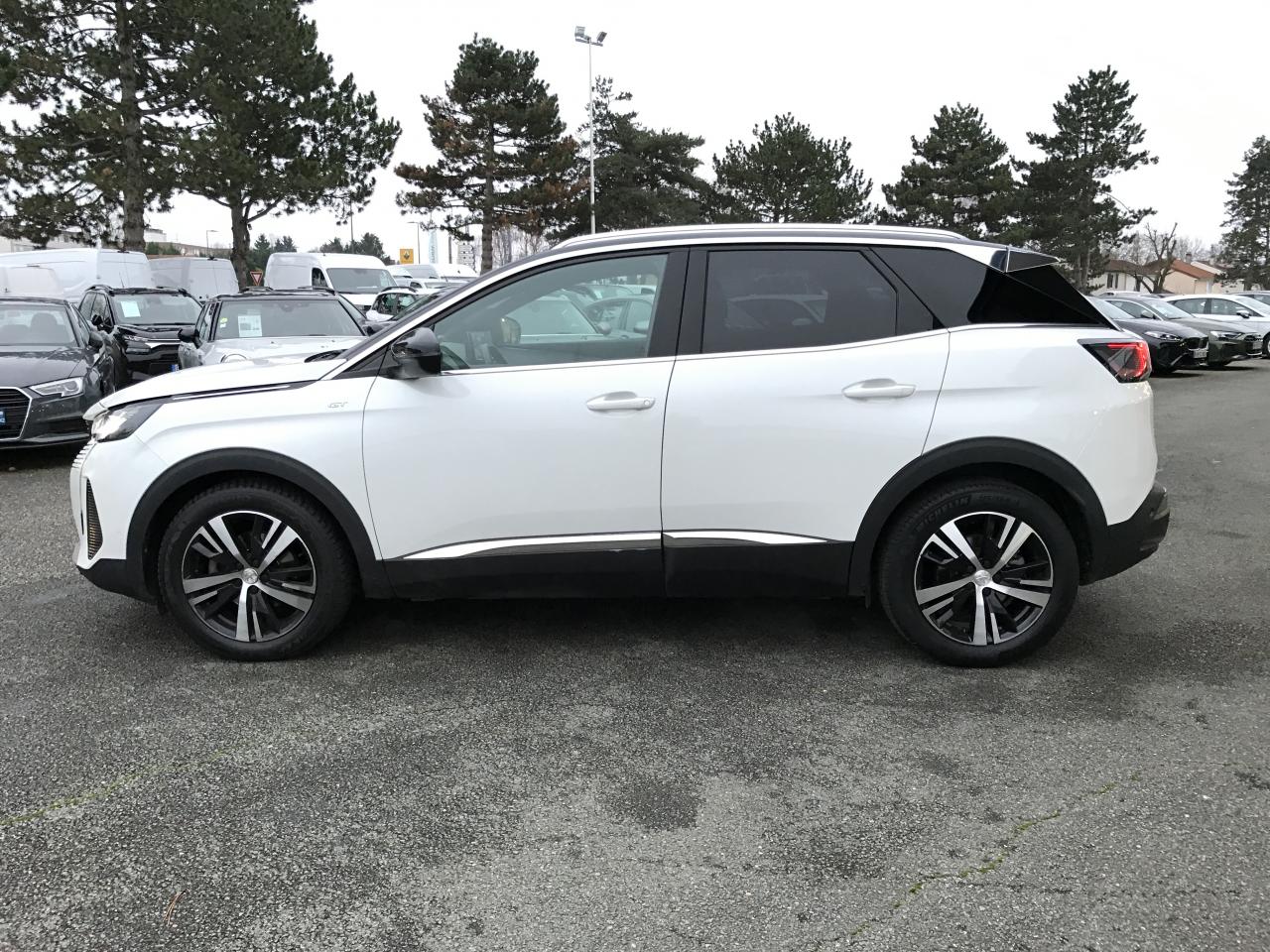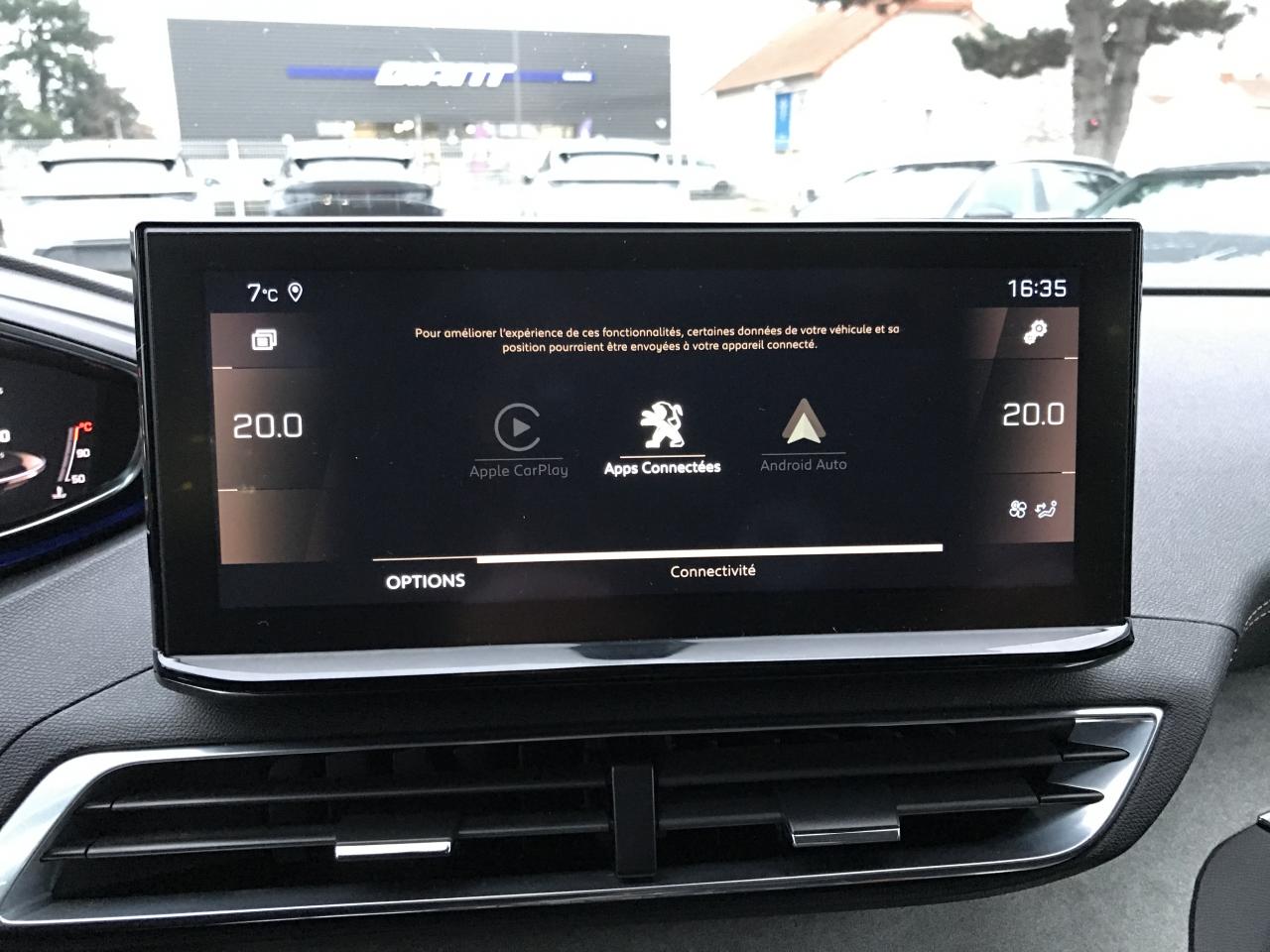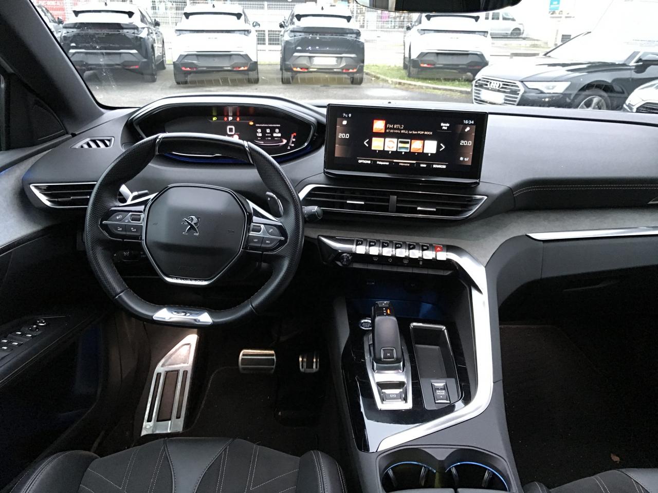 ABS avec répartiteur électronique de freinage (REF) et aide au freinage d'urgence (AFU)Accès et démarrage mains-libresAccoudoir central avant à ouverture papillon, avec compartiment de rangement éclairé et réfrigérableAide graphique et sonore au stationnement arrièreAir conditionné automatique bi-zone avec aérateurs aux places arrièreAirbags frontaux conducteur et passager adaptatifs (airbag passager déconnectable)Airbags latéraux conducteur et passager avantAirbags rideaux de tête aux places avant et arrièreAppuis-tête à sécurité optimisée réglables en hauteur sur les sièges conducteur et passager avant ainsi que sur les places latérales arrièresAvertisseur de temps de conduiteBandeau de pare-choc arrière chroméBanquette rabattable 1/3 - 2/3 (modularité 'Magic Flat' et commandes dans le coffre) avec accoudoir et trappe à skisBarres de toit longitudinales profilées en aluminiumBoîte à gants floquée et éclairéeCalandre GT avec design évolutif chroméCanules d'échappement de style chroméesCeintures de sécurité arrière trois points à enrouleur (x3), avec prétensionneurs et limiteurs d'effort aux places latéralesCeintures de sécurité avant trois points à enrouleur, réglables en hauteur avec prétensionneurs et limiteurs d'effortCommande de verrouillage à distance (deux plips)Commandes de lève-vitres avec inserts chromésContrôle dynamique de stabilité CDS avec antipatinage électronique ASRCoques de rétroviseurs extérieurs Noir Perla NeraDécors de planche de bord et panneaux de portes en Alcantara Gris GrevalDécors intérieurs (baguettes de planche de bord et panneaux de portes, enjoliveur de console) chromésDétection de sous-gonflage indirecteDirection assistée électrique, avec colonne de direction réglable en hauteur et profondeur (mécanique)Drive Mode : Choix de 2 modes de conduite (Eco ou Sport)Driver Sport PackEclairage intérieur à LED : plafonniers et rangementsEnjoliveurs d'arc de pavillon en inoxEnjoliveurs en inox sur les protecteurs de bas de portesEssuie-glace arrière avec déclenchement automatique en marche arrièreEssuie-vitre avant avec système de lavage 'Magic Wash'Fixations pour trois sièges enfants suivant norme ISOFIX aux places passager avant et latérales arrièreFonction 'Mirror Screen' (Apple Carplay / Android Auto)Frein de stationnement électrique avec aide au démarrage en penteHabitacle et ciel de pavillon Noir MistralIndicateur de rapport conseilléInserts d'ailes avant chromésJantes alliage 18" 'Detroit' bi-ton diamantées Noir OnyxJoncs de vitres latérales en inoxKit de dépannage pneumatiqueLève-vitres électriques avant et arrière, séquentiels et antipincementLimiteur de vitesseLunette arrière chauffante avec antennes sérigraphiéesMiroirs de courtoisie éclairésNavigation 3D connectée avec reconnaissance vocale, écran tactile capacitif 10" HDPédalier et repose-pied conducteur en aluminiumPack City 1Pack Drive Assist PlusPack Eclairage d'ambiancePack Safety PlusPack VisibilitéPassages de roues rapportés noirsPEUGEOT Connect SOS & Assistance et TéléservicesPeugeot i-Cockpit : combiné tête haute numérique haute qualité d'affichage, écran tactile capacitif 10" HD et volant compact multi-fonctionsPlafonnier avec spots de lecture avant (x2) et arrière (x2)Planche de bord surpiquéePlancher de coffre deux positionsPoches aumônières au dos des sièges avantPrise USB (dans la zone connectique)Prises 12V (x3 : zone connectique, arrière de console et coffre)Prises USB de charge (x2) au 2nd rangProjecteurs 'Peugeot Full LED Technology' avec correction automatique de site, fonction Eclairage Virage Statique,'Foggy Mode' et feux diurnes à LED prolongés dans les projecteursRétroviseur intérieur à position nuit automatique, sans encadrementRétroviseurs extérieurs électriques et dégivrants, rabattables électriquement avec éclairage d'accueil à LEDRadio avec fonction DAB (Radio Numérique Terrestre), bi-tuner compatible MP3 et connectivité Bluetooth (audio streaming, kit mains libres), avec commandes au volant, 6 HP, écran tactile capacitif 10" HDReconnaissance étendue des panneaux de signalisation et préconisation de vitesseSécurité enfant électrique des vitres arrièreSabot de pare-choc avant gris métalliséSellerie TEP & Alcantara MistralSeuils de portes avant en inoxSiège conducteur avec réglage lombaireSiège conducteur et passager réglables en hauteurSiège passager avant avec mise en tabletteSurtapis aux places avant et arrièreToggle Switches' chromés (touches 'piano' d'activation des fonctions de l'écran tactile)Toit 'Black Diamond' (toit Noir Perla Nera)Verrouillage automatique de tous les ouvrants en roulantVitres latérales et lunette arrière surteintéesVolant cuir fleur perforé avec bagues chrome acier et badge GT