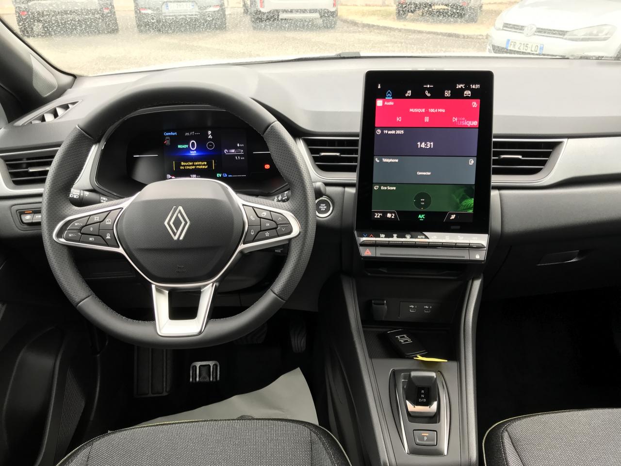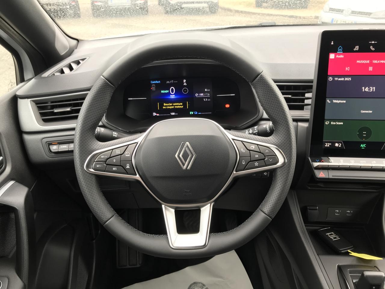 Aide au démarrage en côteAide au freinage d'urgence (A.F.U.)Aide au parking AV/AR et latéralAirbag passager déconnectableAirbags frontauxAirbags latéraux AVAlerte détection de fatigueAlerte distance de sécurité - Information dans tableau de bordAlerte oubli des ceintures de sécurité aux 5 placesAlerte sortie de voieAllumage automatique des essuie-glacesAntenne requinAntiblocage des roues ABSAppel d'Urgence RenaultAppuie-têtes ARBanquette AR coulissante et rabattable 1/3 - 2/3Boîte de vitesse hybride multimode 6 rapportsCaméra de reculCarte Renault "Mains libres"Cartographie StandardCeinture centrale AR 3 pointsCeintures de sécurité AV réglables en hauteurClimatisation automatiqueCondamnation centralisée des portes avec télécommande et condamnation des portes en roulantConsole centrale de rangement avec accoudoirContrôle de la traction (TCS)Contrôle dynamique de trajectoire ESCCoques de rétroviseurs noir/teinte caisseDirection assistéeEclairage AV et AR Full LED Pure VisionFeux AR LED avec signature en forme de ''C'' et animation 3DFeux de stop à LEDFrein de parking électrique avec fonction Auto-HoldHarmonie noireHayon AR manuelIndicateur de changement de vitesseJantes Aluminium 18'' Black HoleKit de gonflage et de réparation des pneumatiquesLève-vitres électriques et impulsionnelsLiseuses AV à LEDLunette AR chauffanteMaintenance connectée, incluse pendant 8 ansMise à jour système (via firmware over the air FOTA), inclus pendant 5 ansOpenR link 10,4"avec navigation et services Google et tableau de bord numérique 10"Pack connected driving, inclus pendant 5 ansPack contrôle à distance (via l’application My Renault), inclus pendant 5 ansPlancher de coffre mobilePoignées de portes ton caisseRégulateur de vitesse adaptatifRépétiteurs latéraux de changement de directionRétroviseur intérieur électrochromeReconnaissance des panneaux de signalisationRenault Multi-senseSellerie TechnoSièges AV réglables en hauteurSystème de détection de la pression des pneumatiquesSystème de freinage d'urgence avancéSystème ISOFIX (i-Size) aux places latérales AR et passager AVSystème multimédia openR link 10.4" avecGoogle intégréVitres AR surteintéesVolant textile enduit grainé