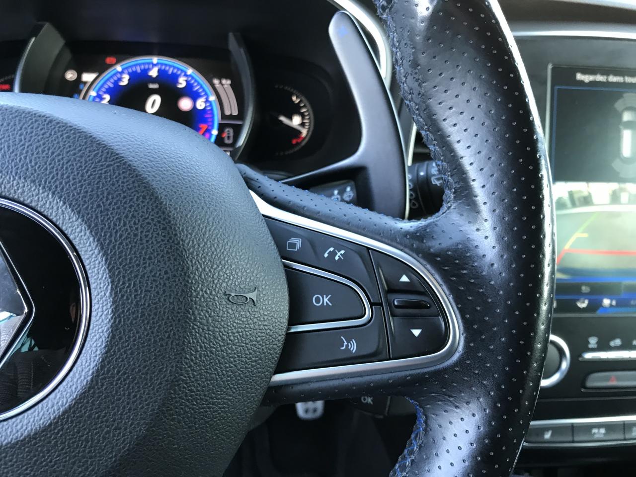 Aide au démarrage en côteAirbags frontaux conducteur et passager adaptatifAirbags latéraux bassin / thorax conducteur et passager ARAlerte de distance de sécuritéAlerte de survitesse avec reconnaissance des panneaux de signalisationAppuis-têtes intégrés GTAvertisseur de franchissement de ligneBanquette AR rabattable Easy Break avec accoudoir centralBarres de toit longitudinales aspect chromeCaméra de reculCapteur de pluie et de luminositéCarte accès et démarrage mains libres, sans fermeture à l'éloignementCartographie EuropeChâssis SportClimatisation régulée bi-zoneCompartimentage de coffreCompteurs TFT 7" avec matrice couleurConsole centrale de rangement avec accoudoirFeux de jour à guide de lumière LED et effet 3DFrein de parking assistéFreinage actif d'urgenceHarmonie Carbone foncéJantes alliage 18" Magny CoursLève-vitres électrique AR impulsionnelsLève-vitres AV électriques à impulsionPalettes au volant en aluminiumPrise 12V à l'ARProjecteurs AV full LED Pure VisionRégulateur limiteur de vitesseRétroviseur intérieur électrochromeRétroviseurs extérieurs rabattables électriquementR-Link 2 avec services connectésR-Link 2, système multimédia connecté avec écran capacitif 8,7'' vertical, Cartographie EuropeRenault Multi-Sense (choix de modes de conduite)Sellerie alcantara GT noire & surpiqûres bleuesSièges AV chauffantsSièges AV réglage lombaire et siège passager réglable hauteurSystème 4Control à 4 roues directricesSystème de fixation ISOFIX aux places ARVitres et lunette AR surteintéesVolant en cuir Nappa perforé GT