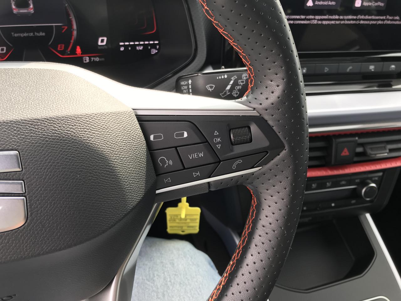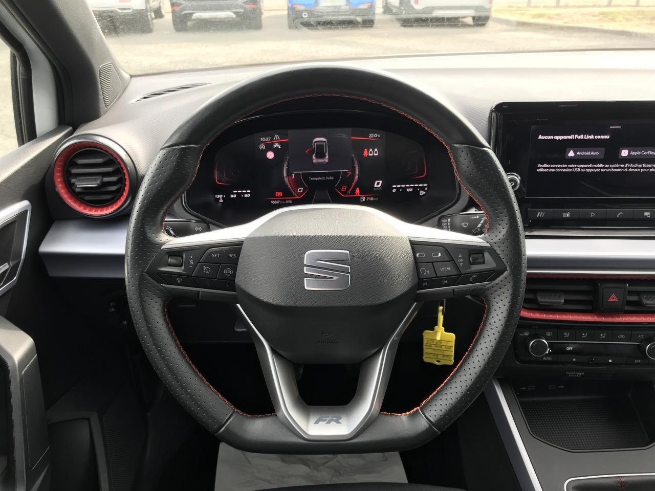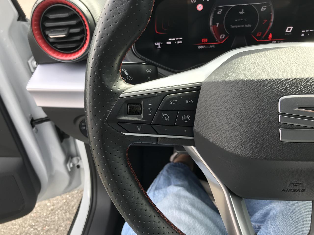 2 Fixations ISOFIX + Top tether intégrées aux sièges AR2 lampes de lecture AV3 appuie-têtes AR4 vitres électriques à impulsion avec sécurité enfantAérateurs latéraux rétro-éclairés en Rouge LaserAide au démarrage en côte (HHC)Aide au stationnement ARAirbags frontaux, latéraux et rideaux AV (passager déconnectable)Alerte de non-bouclage des ceintures AV/ARAnti-blocage des roues (ABS) et contrôle de stabilité électronique (ESC)Anti-patinage électronique (ASR)Antidémarrage électroniqueAppel d'urgence eCallBanquette AR fractionnableBanquette AR rabattable 2/3-1/3Boîte de vitesses manuelle à 5 rapportsCalandre spécifique FR avec contour Gris CosmiqueCapteur de luminositéCeintures de sécurité à 3 pointsCiel de pavillon NoirConnectivité 2x USB-C et BluetoothConsole centrale et poignées de portes AV avec applications Gris AcierCouvre-coffre rabattableDétection de fatigue et somnolenceDétection de sous-gonflage des pneumatiquesDigital Cockpit 8"Direction assistéeDouble-sortie d’échappement chromée styliséeEclairage d'ambiance intérieur LED paramétrable (rouge ou blanc)Eclairage de plaque d'immatriculation à LEDEntourages d'aérateurs centraux et latéraux gris satinés avec inserts Rouge LaserFeux AR à LED avec signature lumineuse triangulaireFront Assist avec détection des piétons et des cyclistesFull Link sans fil (Android Auto + Apple CarPlay)Garantie 2 ans, kilométrage illimitéGarnitures d’aérateurs rougesInserts de custode en "X"Inserts de planche de bord, de portières et de console centrale Gris AcierJantes alliage 17" PERFORMANCE, pneus 205/55 R17 91VKit anti-crevaisonLane Assist - aide au maintien dans la voieLevier de frein à main soft touchLimiteur de vitesseLogos "SEAT" satinés AV/AR et sur le volantOrdinateur de bordPack Design FR Avec sabot de protection AV et diffuseur AR Gris CosmiquePack Rangement Accoudoir central AV et crochets d'arrimage dans le coffrePack Rangement Accoudoir central AV, coffre de rangement sous le siège passager, porte-documents sous le siège conducteur et crochets d'arrimage dans le coffrePack Spring Feux et essuie-glaces automatiques, climatisation automatique Climatronic bizone, rétroviseurs extérieurs chauffants et rabattables électriquement, rétroviseur intérieur jour/nuit automatique et éclairage d'accompagnementPack Streamline Design Bouclier AV au style épuré sans feux antibrouillardPack Vision Plus Caméra de recul, aide au stationnement AV, Park assistPare-chocs couleur carrosseriePare-soleil avec porte-carte côté conducteurPlancher de coffre à double fondPoignées de portes couleur carrosserieProjecteurs Full LED et signature lumineuse LED AV/ARRégulateur de vitesseRétroviseurs extérieurs couleur carrosserieRétroviseurs extérieurs réglables électriquement intégrant les répétiteurs de clignotants latérauxRadio Numérique DABRails de toit longitudinauxSEAT ConnectSEAT Drive Profile avec sélection du mode de conduiteSellerie suédine Noire avec surpiqûres rougesSiège conducteur réglable en hauteurSign Assist (Reconnaissance des panneaux de signalisation)Signature "Arona" manuscrite sur le hayonStart & StopSystème audio à 6 HPSystème d'info-divertissement MediaSystem+ avec écran tactile HD 8,25''Tapis de sol textile AV/ARVerrouillage centralisé avec télecommandeVitres AV électriquesVolant sport multifonctions à méplat en cuir NAPPA perforé avec surpiqûres rouge logo FR