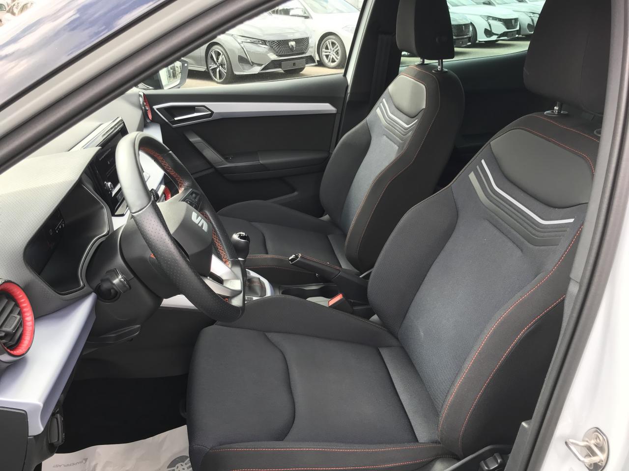 2 Fixations ISOFIX + Top tether intégrées aux sièges AR2 lampes de lecture AV3 appuie-têtes AR4 vitres électriques à impulsion avec sécurité enfantAérateurs latéraux rétro-éclairés en Rouge LaserAide au démarrage en côte (HHC)Aide au stationnement ARAirbags frontaux, latéraux et rideaux AV (passager déconnectable)Alerte de non-bouclage des ceintures AV/ARAnti-blocage des roues (ABS) et contrôle de stabilité électronique (ESC)Anti-patinage électronique (ASR)Antidémarrage électroniqueAppel d'urgence eCallBanquette AR fractionnableBanquette AR rabattable 2/3-1/3Boîte de vitesses manuelle à 5 rapportsCalandre spécifique FR avec contour Gris CosmiqueCapteur de luminositéCeintures de sécurité à 3 pointsCiel de pavillon NoirConnectivité 2x USB-C et BluetoothConsole centrale et poignées de portes AV avec applications Gris AcierCouvre-coffre rabattableDétection de fatigue et somnolenceDétection de sous-gonflage des pneumatiquesDigital Cockpit 8"Direction assistéeDouble-sortie d’échappement chromée styliséeEclairage d'ambiance intérieur LED paramétrable (rouge ou blanc)Eclairage de plaque d'immatriculation à LEDEntourages d'aérateurs centraux et latéraux gris satinés avec inserts Rouge LaserFeux AR à LED avec signature lumineuse triangulaireFront Assist avec détection des piétons et des cyclistesFull Link sans fil (Android Auto + Apple CarPlay)Garantie 2 ans, kilométrage illimitéGarnitures d’aérateurs rougesInserts de custode en "X"Inserts de planche de bord, de portières et de console centrale Gris AcierJantes alliage 17" PERFORMANCE, pneus 205/55 R17 91VKit anti-crevaisonLane Assist - aide au maintien dans la voieLevier de frein à main soft touchLimiteur de vitesseLogos "SEAT" satinés AV/AR et sur le volantOrdinateur de bordPack Design FR Avec sabot de protection AV et diffuseur AR Gris CosmiquePack Rangement Accoudoir central AV et crochets d'arrimage dans le coffrePack Rangement Accoudoir central AV, coffre de rangement sous le siège passager, porte-documents sous le siège conducteur et crochets d'arrimage dans le coffrePack Spring Feux et essuie-glaces automatiques, climatisation automatique Climatronic bizone, rétroviseurs extérieurs chauffants et rabattables électriquement, rétroviseur intérieur jour/nuit automatique et éclairage d'accompagnementPack Streamline Design Bouclier AV au style épuré sans feux antibrouillardPack Vision Plus Caméra de recul, aide au stationnement AV, Park assistPare-chocs couleur carrosseriePare-soleil avec porte-carte côté conducteurPlancher de coffre à double fondPoignées de portes couleur carrosserieProjecteurs Full LED et signature lumineuse LED AV/ARRégulateur de vitesseRétroviseurs extérieurs couleur carrosserieRétroviseurs extérieurs réglables électriquement intégrant les répétiteurs de clignotants latérauxRadio Numérique DABRails de toit longitudinauxSEAT ConnectSEAT Drive Profile avec sélection du mode de conduiteSellerie suédine Noire avec surpiqûres rougesSiège conducteur réglable en hauteurSign Assist (Reconnaissance des panneaux de signalisation)Signature "Arona" manuscrite sur le hayonStart & StopSystème audio à 6 HPSystème d'info-divertissement MediaSystem+ avec écran tactile HD 8,25''Tapis de sol textile AV/ARVerrouillage centralisé avec télecommandeVitres AV électriquesVolant sport multifonctions à méplat en cuir NAPPA perforé avec surpiqûres rouge logo FR