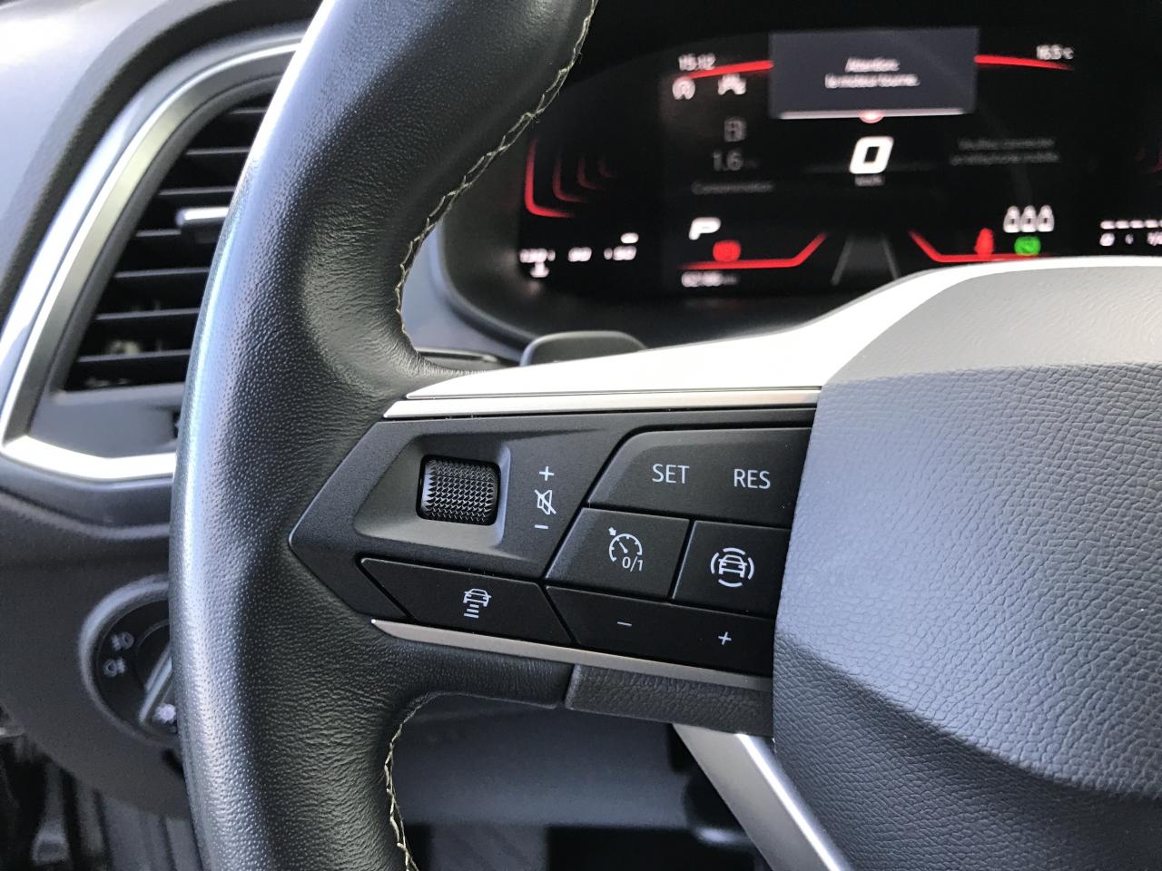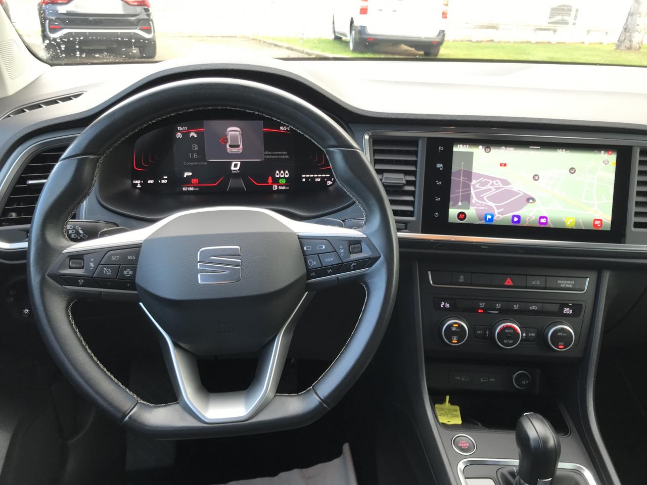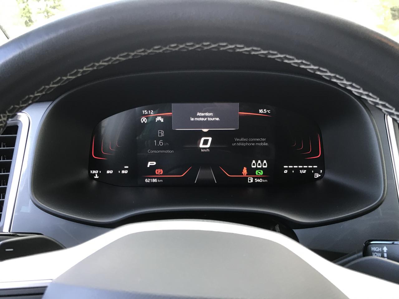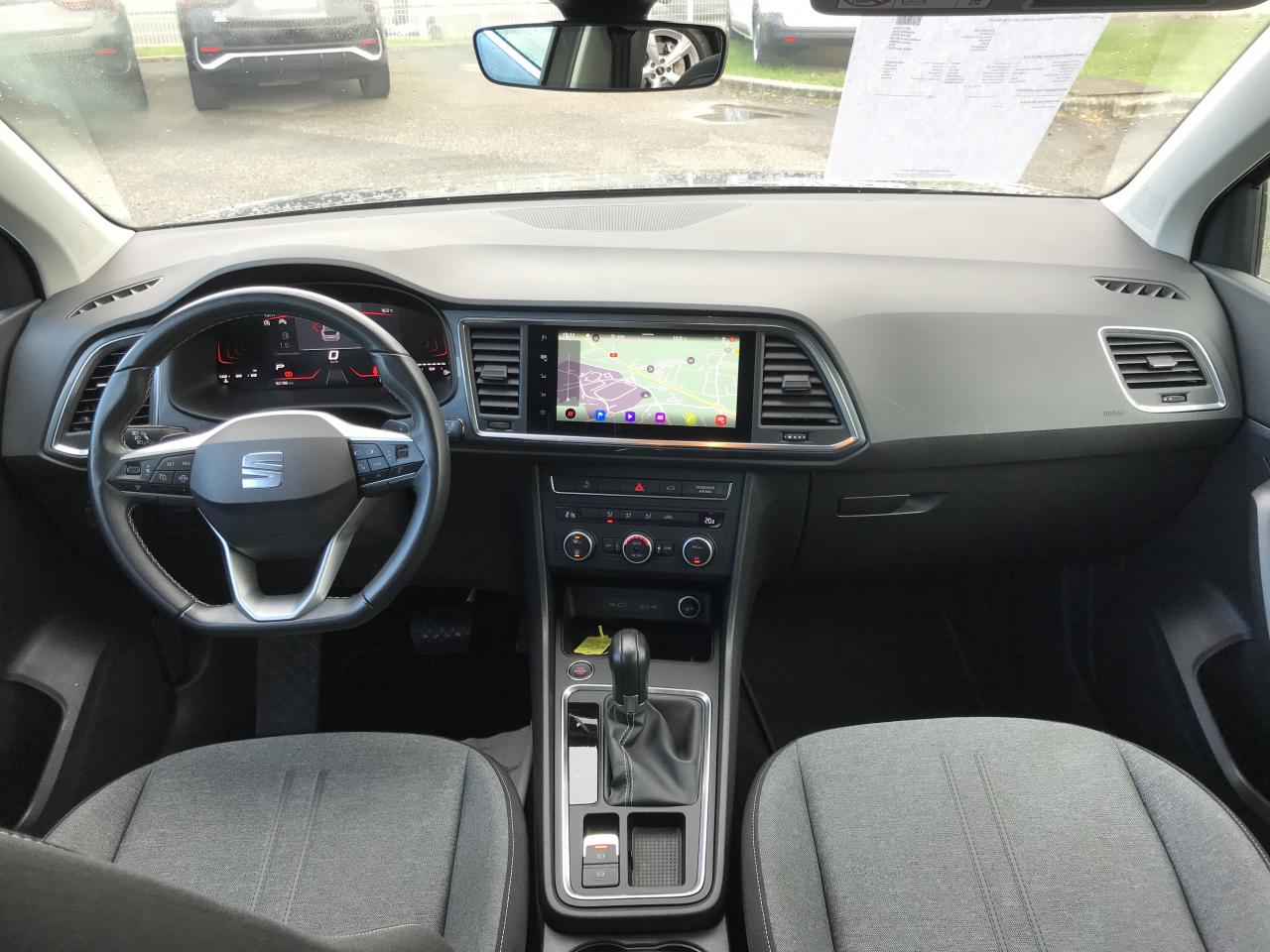 2 Fixations Isofix + Top tether intégrées aux sièges AR pour ancrage de sièges enfant2 prises USB-C éclairées2 prises USB-C éclairées AR avec filet de rangement pour téléphone mobileABS électronique (système antiblocage des roues) avec alerte de pression des pneumatiquesAccoudoir central à l'AV avec compartiment de rangementAccoudoir central AR avec porte-gobeletsAccoudoir central réglable en hauteur et profondeurActivation automatique des feux de détresse lors d'un freinage d'urgenceAide au démarrage en côte (Hill Hold Control)Airbag de genoux (côté conducteur)Airbags frontaux conducteur et passager (passager déconnectable)Airbags latéraux tête/thorax AVAnti-patinage électronique (ASR), assistance au freinage d'urgence (EBA)Aumônières de rangement au dos sièges AVBanquette AR rabattable en 2 parties asymétriquesBluetoothCaméra de recul avec aide au stationnement ARClimatisation automatique bi-zone Climatronic avec système Pure AirConnectivity Box avec chargeur à inductionContour de calandre chroméContre-portes en textile OlotCouvre-coffre rabattableDétecteur de fatigueDétecteur de pluie et luminositéDifférentiel XDSFeux AR à LEDFiltre à particules essenceFrein à main électriqueFront Assist : système de surveillance périmétrique avec fonction de freinage de secours en villeFull Link sans fil (Android Auto + Apple CarPlay)Hayon électriqueInserts de pare-chocs AV/AR chromésJantes alliage 17" Dynamic pneumatiques 215/55 R17 94VKeyless Access (accès et démarrage mains-libres) avec 2 clefs radiocommandéesLimiteur de vitessePack Drive Assist M LightPommeau de levier de vitesse cuirPrise 12V AVProjecteurs antibrouillard à LEDProjecteurs Full LEDProtection antidémarrage électroniqueRétroviseur intérieur électrochrome sans contourRétroviseur intérieur jour/nuit automatiqueRétroviseurs extérieurs dégivrants et rabattables électriquement avec abaissement automatique du rétroviseur passager en marche ARRétroviseurs extérieurs et poignées de portes couleur carrosserieRétroviseurs réglables électriquement avec rappels latéraux de clignotant intégrésRadio Numérique DABRails de toit et entourages des vitres latérales chromésRoue de secours compacte 18"SEAT Connect Media & InternetSellerie en tissu noir Dallas / tissu Olot avec inserts Noir TitanSiège conducteur réglable en hauteurSiège conducteur réglable en hauteur manuellement avec réglage lombaireSiège passager réglable en hauteur manuellement avec réglage lombaireSièges ConfortSpots de lecture AVSystème "Start-Stop" automatique et dispositif de récupération de l'énergie de freinageSystème audio à 4 haut-parleurs avec prise USB-CSystème de navigation Navi System+ 9,2"Tableau de bord noir Titane avec insert gris ATOMVitres AR surteintéesVitres AV/AR électriques à impulsion avec verrouillageVolant cuir multifonctionsVolant en cuir réglable en hauteur et en profondeurWelcome lights (Éclairage LED projetant "Hola!" au sol)