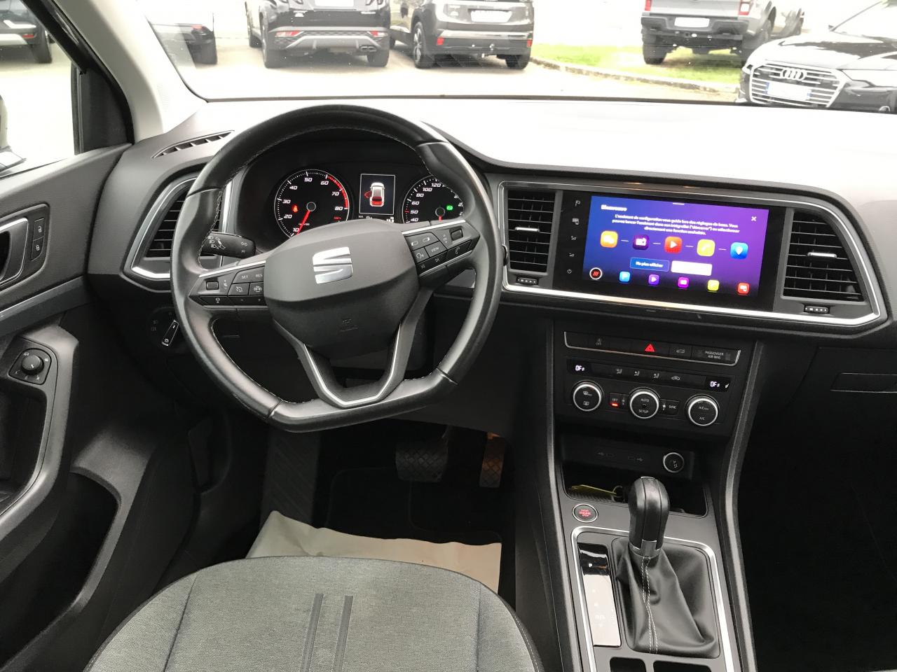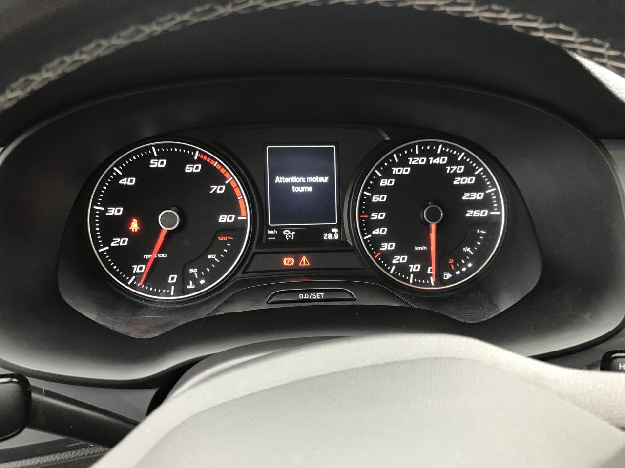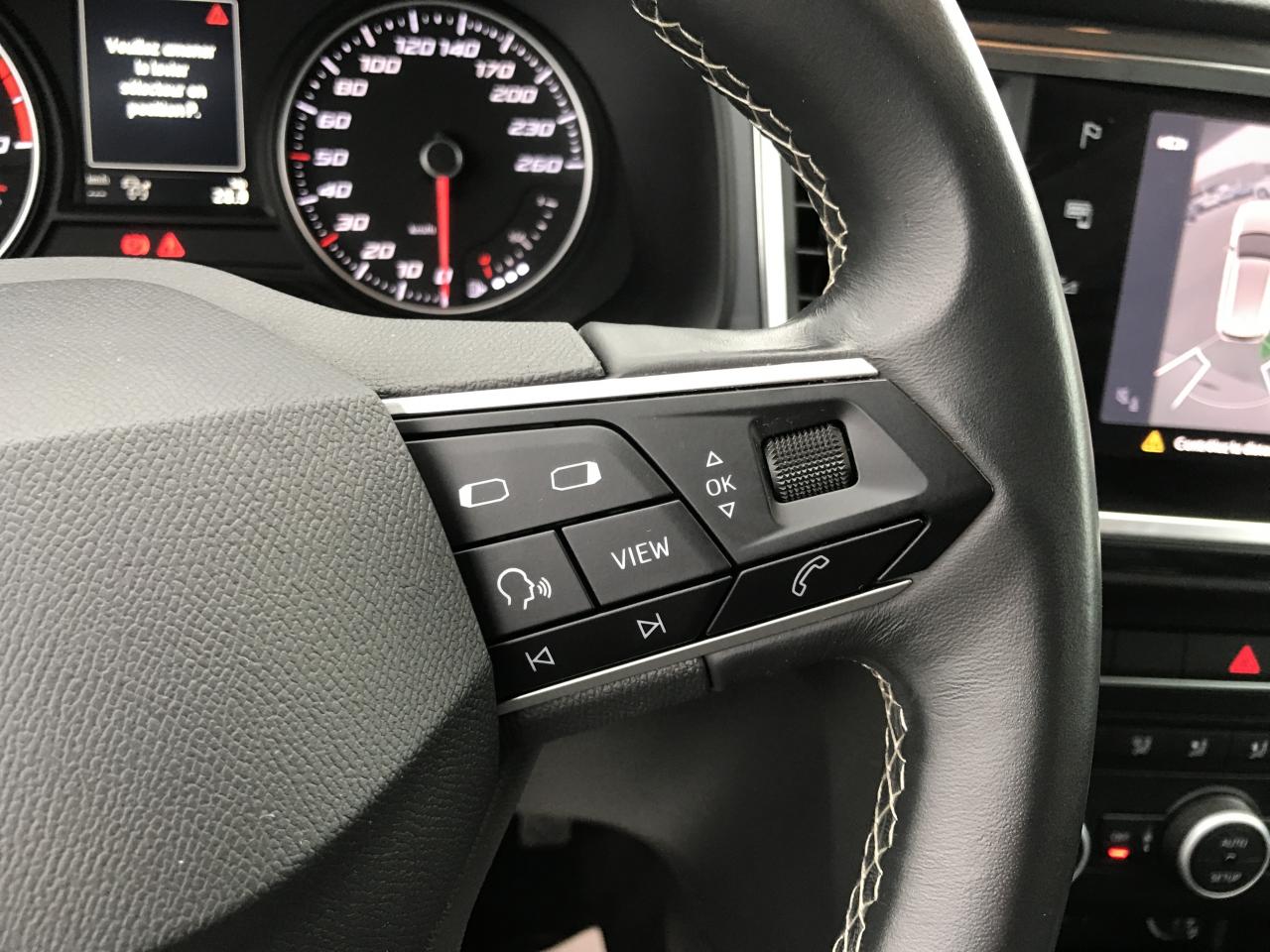 Connectivity Box avec chargeur à induction2 Fixations Isofix + Top tether intégrées aux sièges AR pour ancrage de sièges enfant2 prises USB-C éclairées2 prises USB-C éclairées AR avec filet de rangement pour téléphone mobileABS électronique (système antiblocage des roues) avec alerte de pression des pneumatiquesAccoudoir central à l'AV avec compartiment de rangementAccoudoir central AR avec porte-gobeletsAccoudoir central réglable en hauteur et profondeurActivation automatique des feux de détresse lors d'un freinage d'urgenceAffichage de la périodicité d'entretienAide au démarrage en côte (Hill Hold Control)Air conditionnéAirbag de genoux (côté conducteur)Airbags frontaux conducteur et passager (passager déconnectable)Airbags latéraux tête/thorax AVAntenne de toit type "requin"Anti-patinage électronique (ASR), assistance au freinage d'urgence (EBA)Aumônières de rangement au dos sièges AVBanquette AR rabattable en 2 parties asymétriquesBluetoothCaméra de recul avec aide au stationnement ARClimatisation automatique bi-zone Climatronic avec système Pure AirConnectivity Box avec chargeur à inductionConsole centrale, volant et aérations avec applications noires satinéesContour de calandre chroméContre-portes en textile OlotCouvre-coffre rabattableDétecteur de fatigueDétecteur de pluie et luminositéDifférentiel XDSFeux AR à LEDFiltre à particules essenceFrein à main électriqueFront Assist : système de surveillance périmétrique avec fonction de freinage de secours en villeHayon électriqueInserts de pare-chocs AV/AR chromésJantes alliage 17" Dynamic pneumatiques 215/55 R17 94VKeyless Access (accès et démarrage mains-libres) avec 2 clefs radiocommandéesKit anti-crevaisonLampes de lecture AV/ARLimiteur de vitesseOeilletons de fixation (4) dans le coffreOrdinateur de bord 3,5'' avec affichage de la température extérieureOrdinateur de bord 3,5" couleurPack Drive Assist M LightPack ReferencePalettes de changement de vitesse au volantPare-chocs couleur carrosseriePneumatiques à ultra-basse résistance au roulementPommeau de levier de vitesse cuirPrise 12V AVProjecteurs antibrouillard à LEDProjecteurs Full LEDProtection antidémarrage électroniqueRéglage en hauteur et réglage lombaire du siège conducteurRétroviseur intérieur électrochrome sans contourRétroviseur intérieur jour/nuit automatiqueRétroviseurs extérieurs dégivrants et rabattables électriquement avec abaissement automatique du rétroviseur passager en marche ARRétroviseurs extérieurs et poignées de portes couleur carrosserieRétroviseurs réglables électriquement avec rappels latéraux de clignotant intégrésRadio Numérique DABRails de toit et entourages des vitres latérales chromésRoue de secoursSEAT Connect Media & InternetSellerie en tissu noir Dallas / tissu Olot avec inserts Noir TitanSiège conducteur réglable en hauteurSiège conducteur réglable en hauteur manuellement avec réglage lombaireSiège passager réglable en hauteur manuellement avec réglage lombaireSièges ConfortSpots de lecture AVSystème "Start-Stop" automatique et dispositif de récupération de l'énergie de freinageSystème audio à 4 haut-parleurs avec prise USB-CSystème d'info-divertissement MediaSystem+ avec écran tactile 8,25''Système de navigation Navi System+ 9,2"Tableau de bord noir Titane avec insert gris ATOMTapis de sol textile AV/ARVide-poches sous siège AVVide-poches sous siège passager AVVitres AR surteintéesVitres AV/AR électriques à impulsion avec verrouillageVolant cuir multifonctionsVolant en cuir réglable en hauteur et en profondeurWelcome lights (Éclairage LED projetant "Hola!" au sol)
