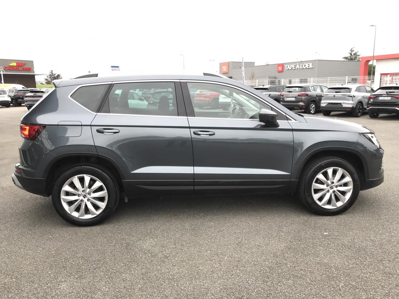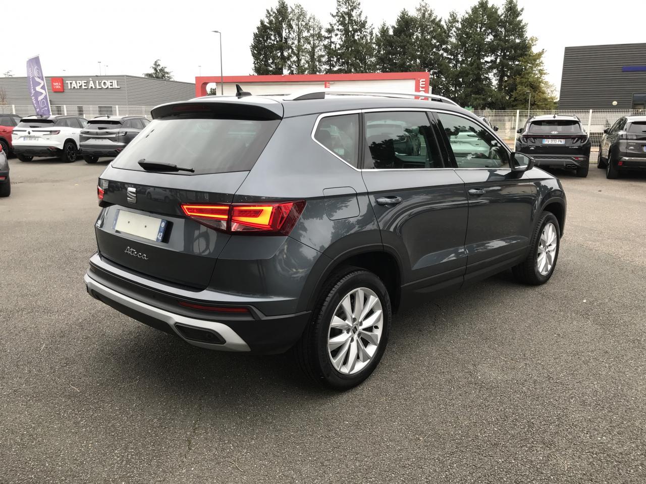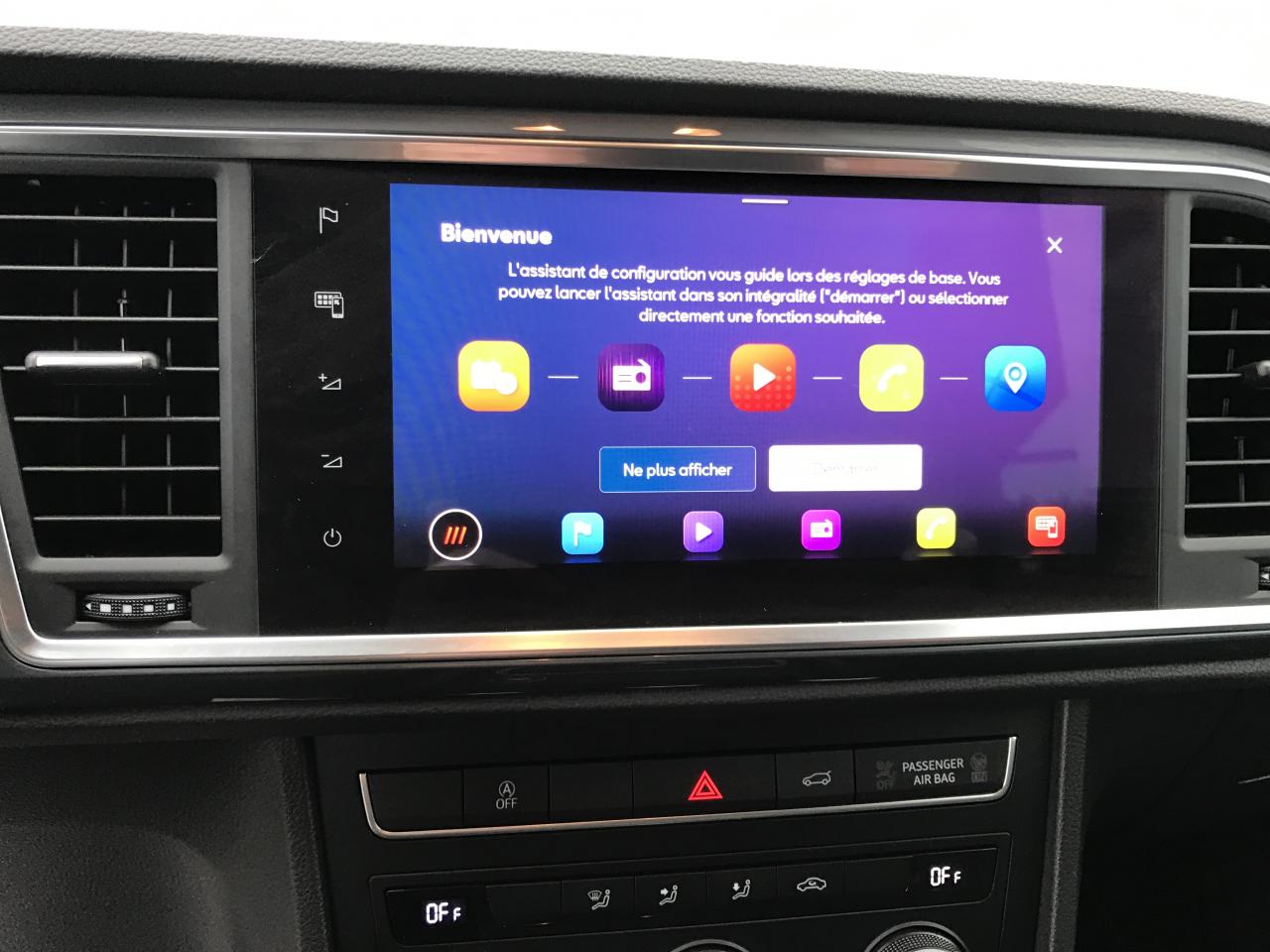 Connectivity Box avec chargeur à induction2 Fixations Isofix + Top tether intégrées aux sièges AR pour ancrage de sièges enfant2 prises USB-C éclairées2 prises USB-C éclairées AR avec filet de rangement pour téléphone mobileABS électronique (système antiblocage des roues) avec alerte de pression des pneumatiquesAccoudoir central à l'AV avec compartiment de rangementAccoudoir central AR avec porte-gobeletsAccoudoir central réglable en hauteur et profondeurActivation automatique des feux de détresse lors d'un freinage d'urgenceAffichage de la périodicité d'entretienAide au démarrage en côte (Hill Hold Control)Air conditionnéAirbag de genoux (côté conducteur)Airbags frontaux conducteur et passager (passager déconnectable)Airbags latéraux tête/thorax AVAntenne de toit type "requin"Anti-patinage électronique (ASR), assistance au freinage d'urgence (EBA)Aumônières de rangement au dos sièges AVBanquette AR rabattable en 2 parties asymétriquesBluetoothCaméra de recul avec aide au stationnement ARClimatisation automatique bi-zone Climatronic avec système Pure AirConnectivity Box avec chargeur à inductionConsole centrale, volant et aérations avec applications noires satinéesContour de calandre chroméContre-portes en textile OlotCouvre-coffre rabattableDétecteur de fatigueDétecteur de pluie et luminositéDifférentiel XDSFeux AR à LEDFiltre à particules essenceFrein à main électriqueFront Assist : système de surveillance périmétrique avec fonction de freinage de secours en villeHayon électriqueInserts de pare-chocs AV/AR chromésJantes alliage 17" Dynamic pneumatiques 215/55 R17 94VKeyless Access (accès et démarrage mains-libres) avec 2 clefs radiocommandéesKit anti-crevaisonLampes de lecture AV/ARLimiteur de vitesseOeilletons de fixation (4) dans le coffreOrdinateur de bord 3,5'' avec affichage de la température extérieureOrdinateur de bord 3,5" couleurPack Drive Assist M LightPack ReferencePalettes de changement de vitesse au volantPare-chocs couleur carrosseriePneumatiques à ultra-basse résistance au roulementPommeau de levier de vitesse cuirPrise 12V AVProjecteurs antibrouillard à LEDProjecteurs Full LEDProtection antidémarrage électroniqueRéglage en hauteur et réglage lombaire du siège conducteurRétroviseur intérieur électrochrome sans contourRétroviseur intérieur jour/nuit automatiqueRétroviseurs extérieurs dégivrants et rabattables électriquement avec abaissement automatique du rétroviseur passager en marche ARRétroviseurs extérieurs et poignées de portes couleur carrosserieRétroviseurs réglables électriquement avec rappels latéraux de clignotant intégrésRadio Numérique DABRails de toit et entourages des vitres latérales chromésRoue de secoursSEAT Connect Media & InternetSellerie en tissu noir Dallas / tissu Olot avec inserts Noir TitanSiège conducteur réglable en hauteurSiège conducteur réglable en hauteur manuellement avec réglage lombaireSiège passager réglable en hauteur manuellement avec réglage lombaireSièges ConfortSpots de lecture AVSystème "Start-Stop" automatique et dispositif de récupération de l'énergie de freinageSystème audio à 4 haut-parleurs avec prise USB-CSystème d'info-divertissement MediaSystem+ avec écran tactile 8,25''Système de navigation Navi System+ 9,2"Tableau de bord noir Titane avec insert gris ATOMTapis de sol textile AV/ARVide-poches sous siège AVVide-poches sous siège passager AVVitres AR surteintéesVitres AV/AR électriques à impulsion avec verrouillageVolant cuir multifonctionsVolant en cuir réglable en hauteur et en profondeurWelcome lights (Éclairage LED projetant "Hola!" au sol)